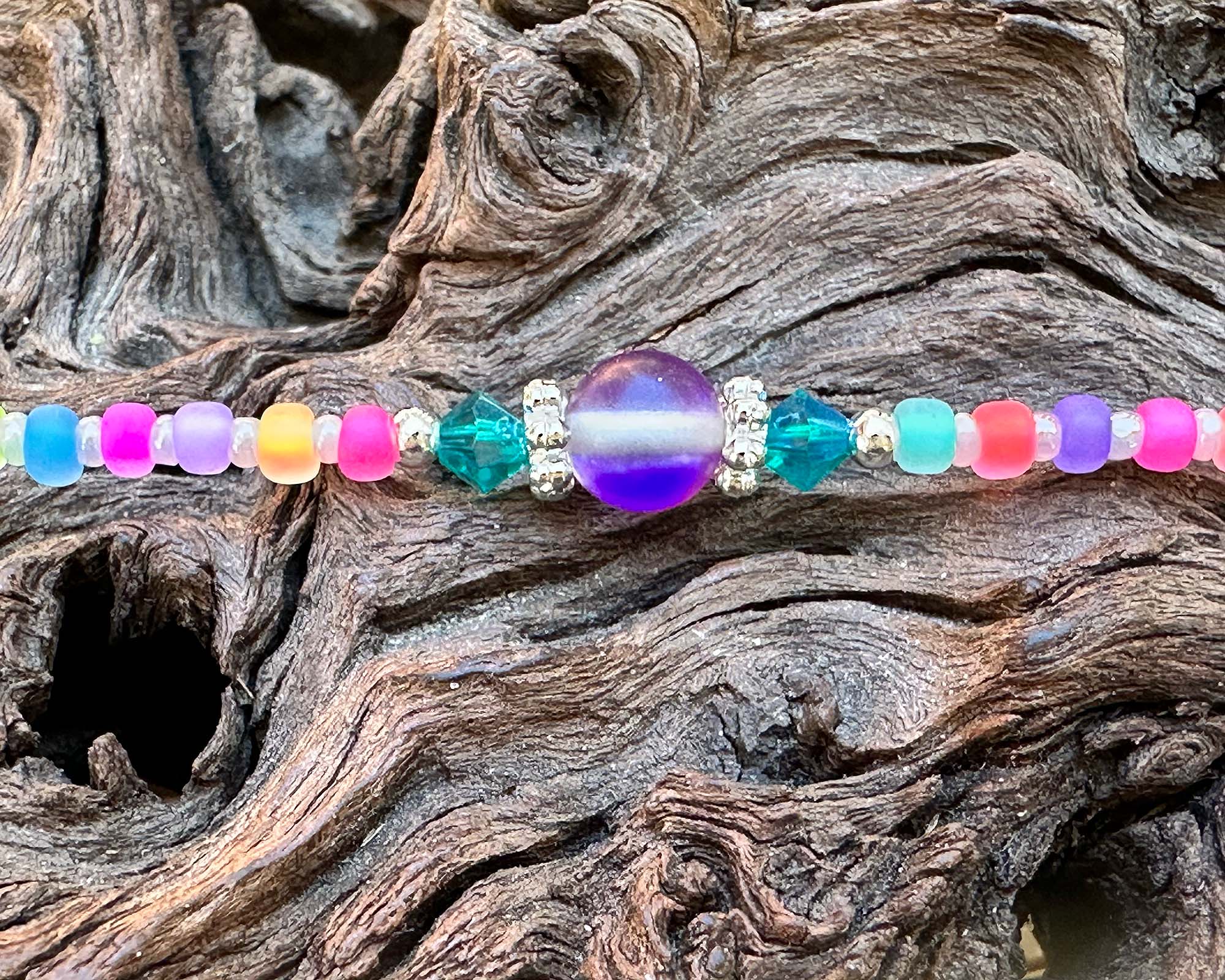 9 1/2" Electric Glow Purple Crystal Beaded Anklet