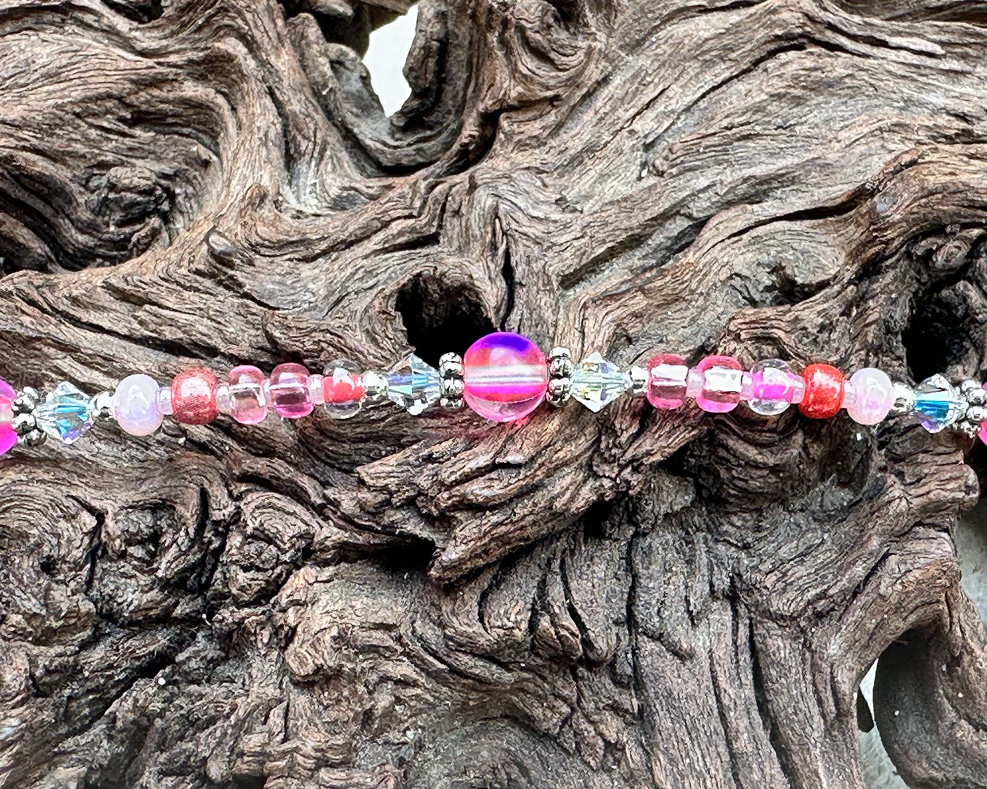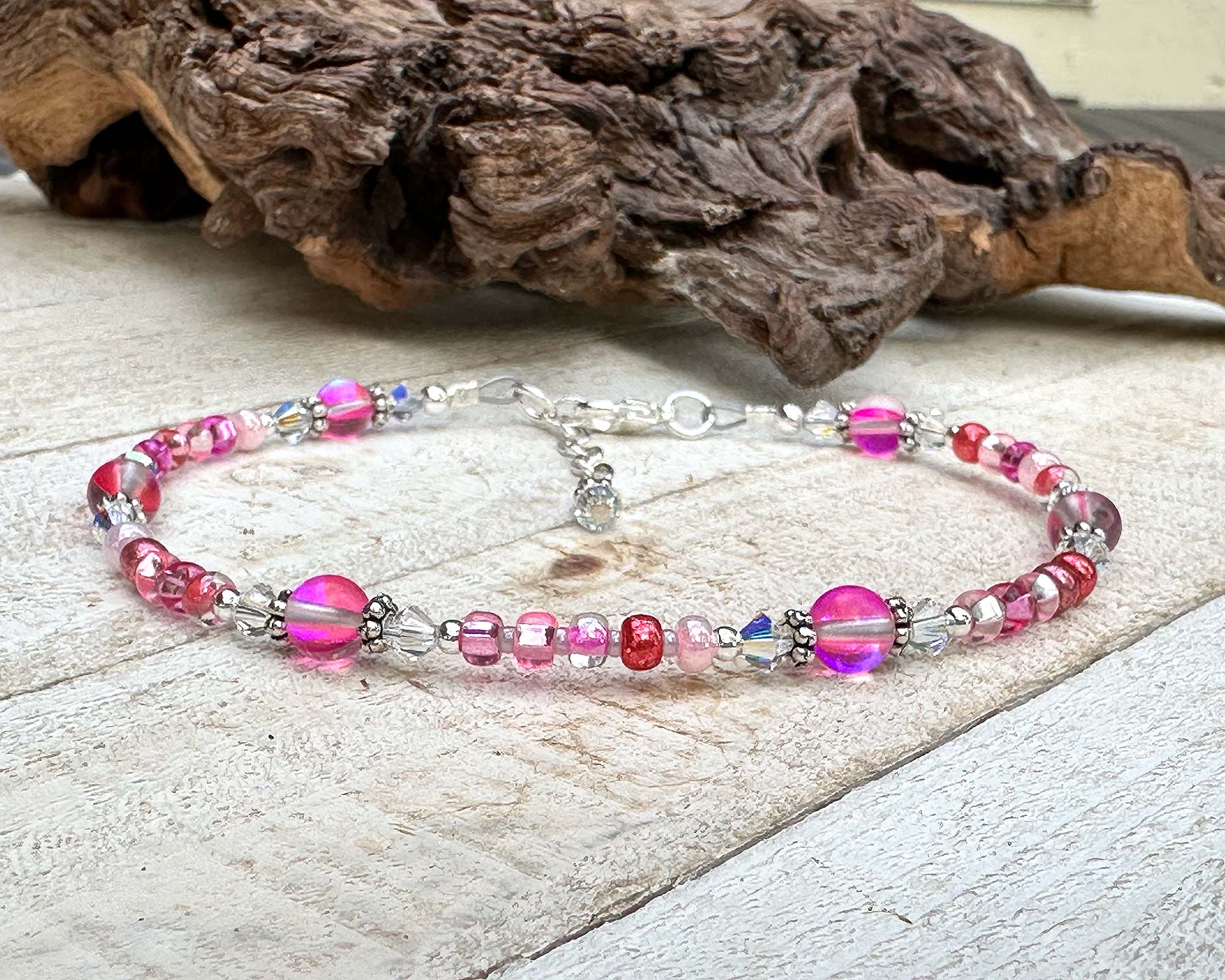 Get ready to turn ankles into a fashion statement with this vibrant candy pink crystal anklet! Layered with gorgeous glass beads, prismatic AB crystals, and rich pink tones paired with silver-plated accents, this handmade beauty brings instant personality to your look. Whether you're dressing up or keeping it casual, this sparkling accessory is guaranteed to make a playful impression!