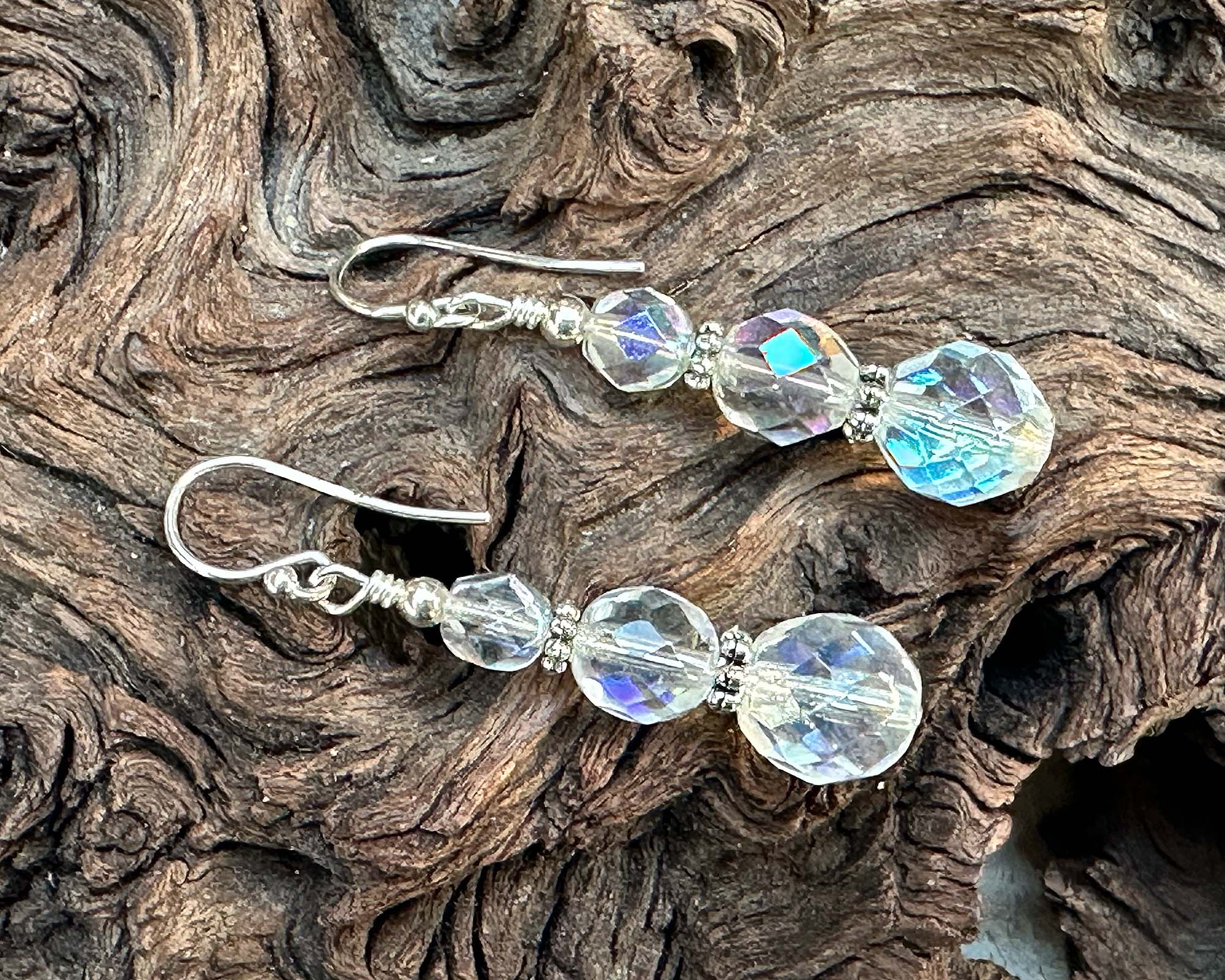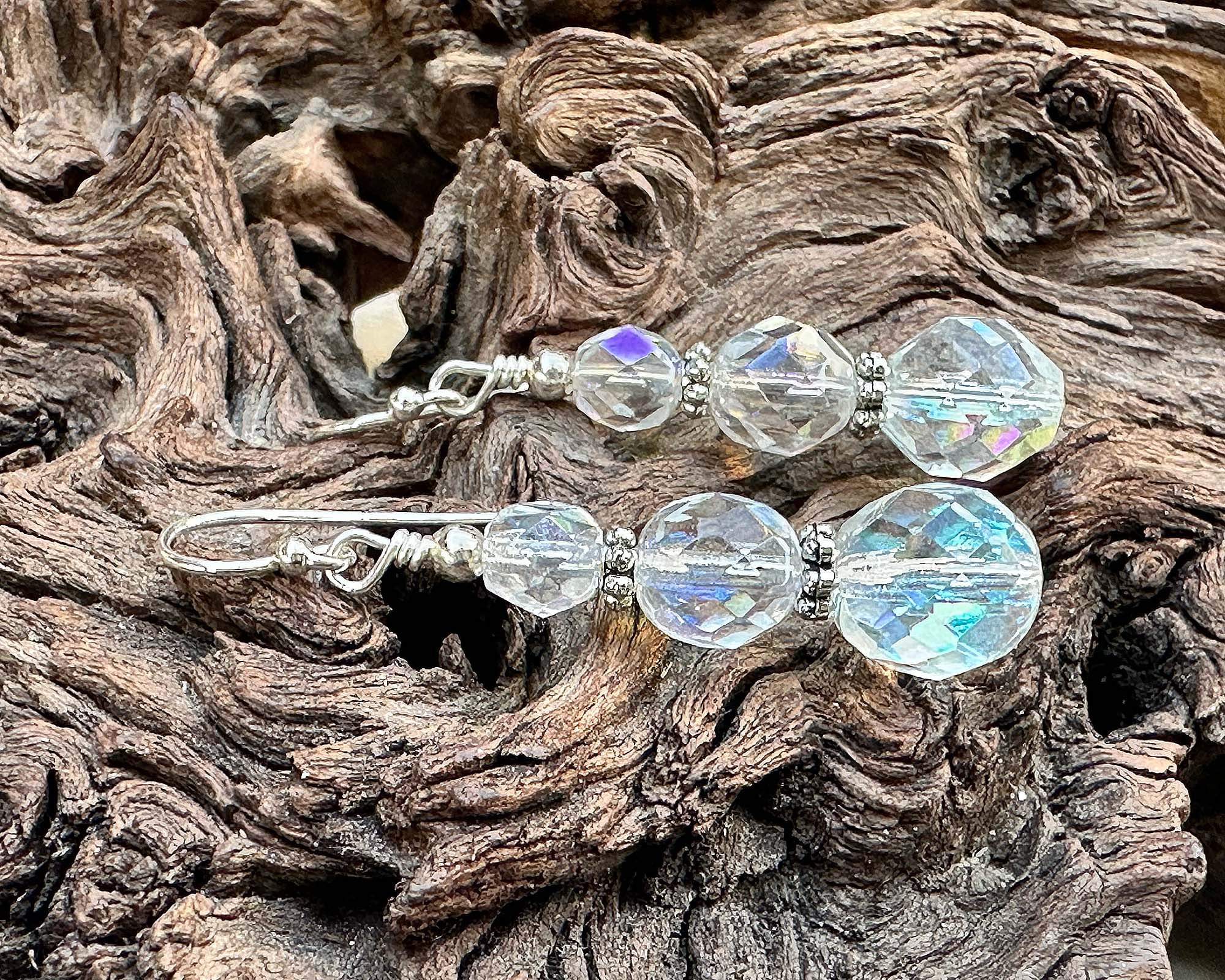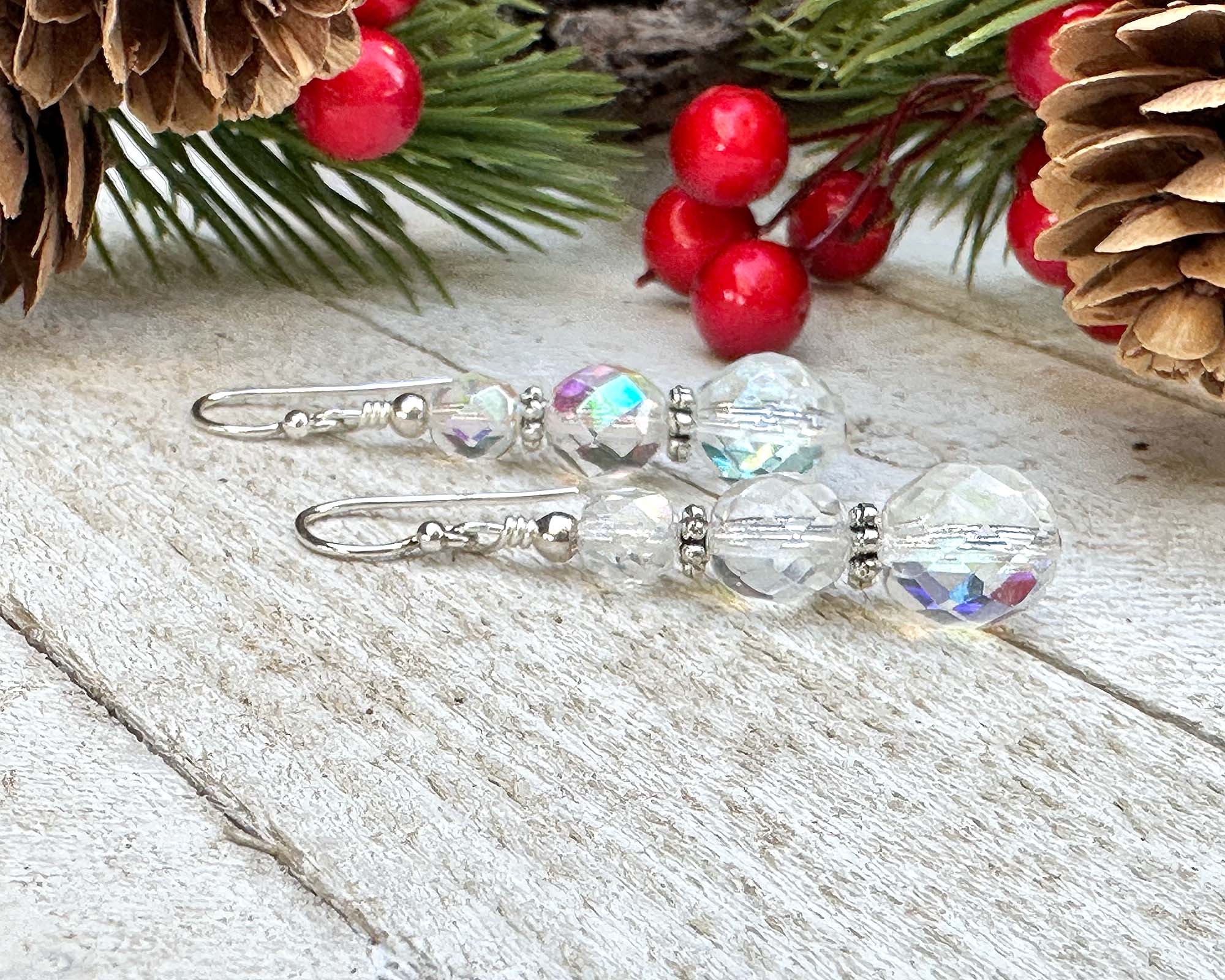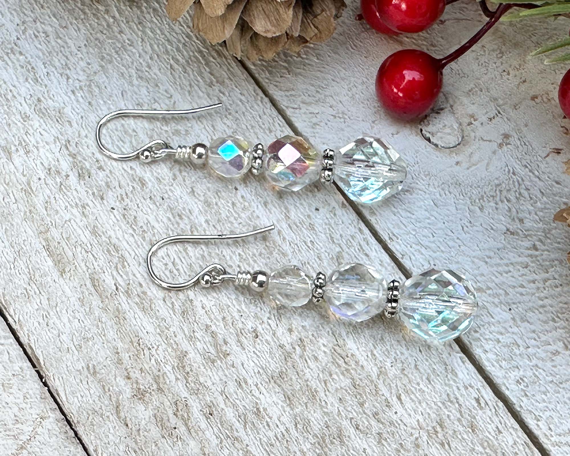 Discover the beauty of our stunning handmade 2-inch Swarovski crystal drop earrings, elegantly crafted in .925 sterling silver. Each earring features exquisite Czech faceted AB iridescent crystals, silver-plated beads, and high-quality sterling silver earwires and components, creating a radiant accessory perfect for any occasion.