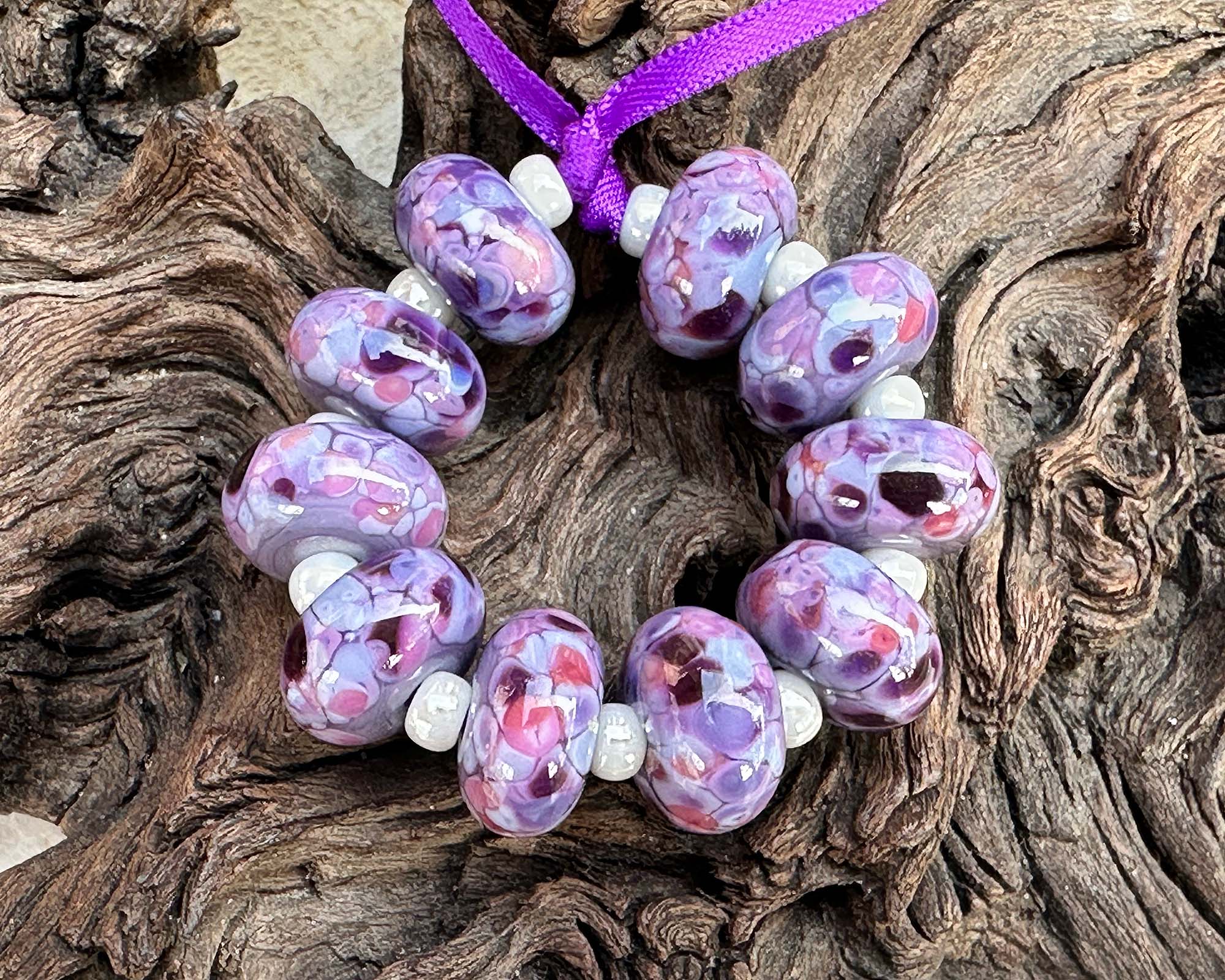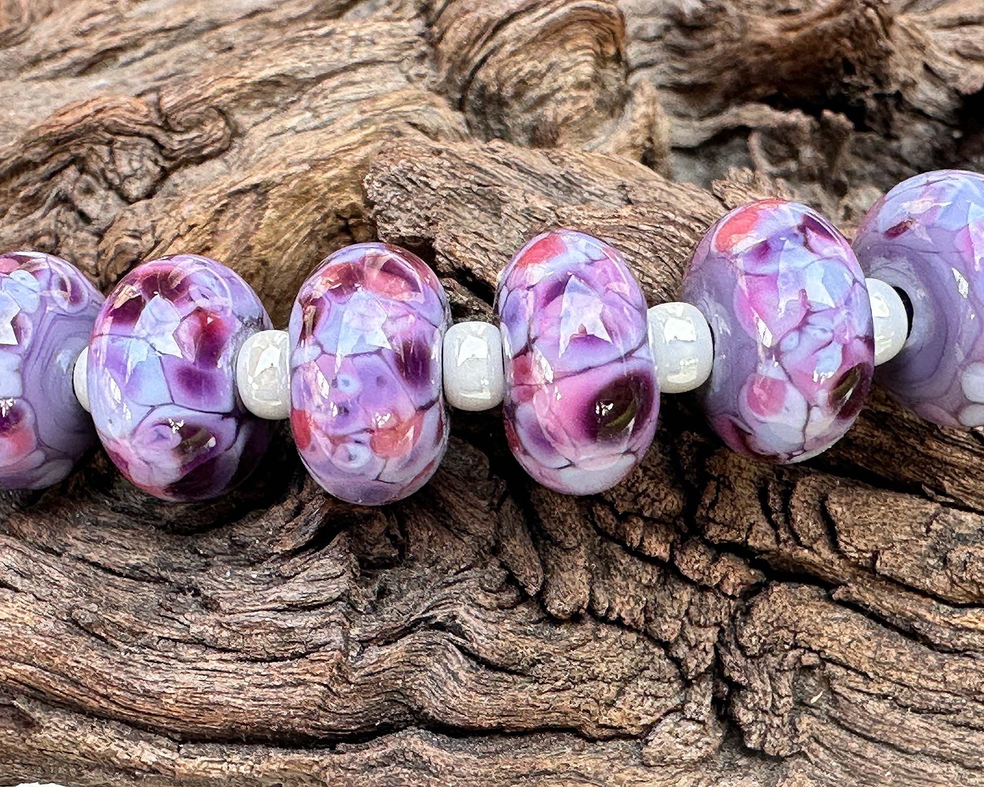 Transform your jewelry designs with these captivating Amethyst Aura Lilac Mosaic lampwork beads! Crafted from a distinctive custom glass blend, each bead bursts with playful color—think dreamy purples, soft pinks, lavender, and violet—all enhanced by gorgeous mosaic detailing. Whether you're stringing together a coordinated pair of earrings or layering them into statement necklaces and bracelets, these gems deliver instant charm and sparkle. Built tough with digital kiln annealing, they're ready to make your creative vision shine!