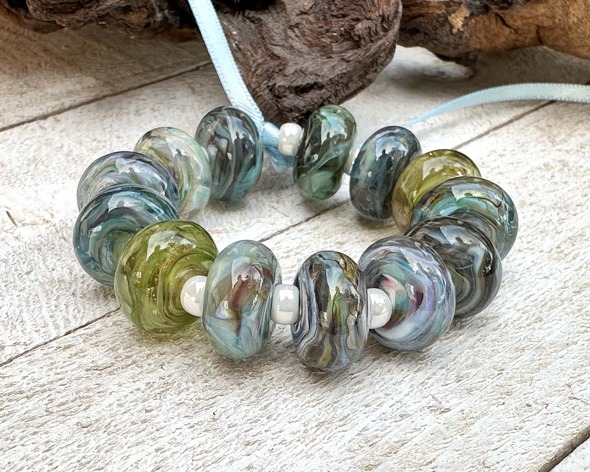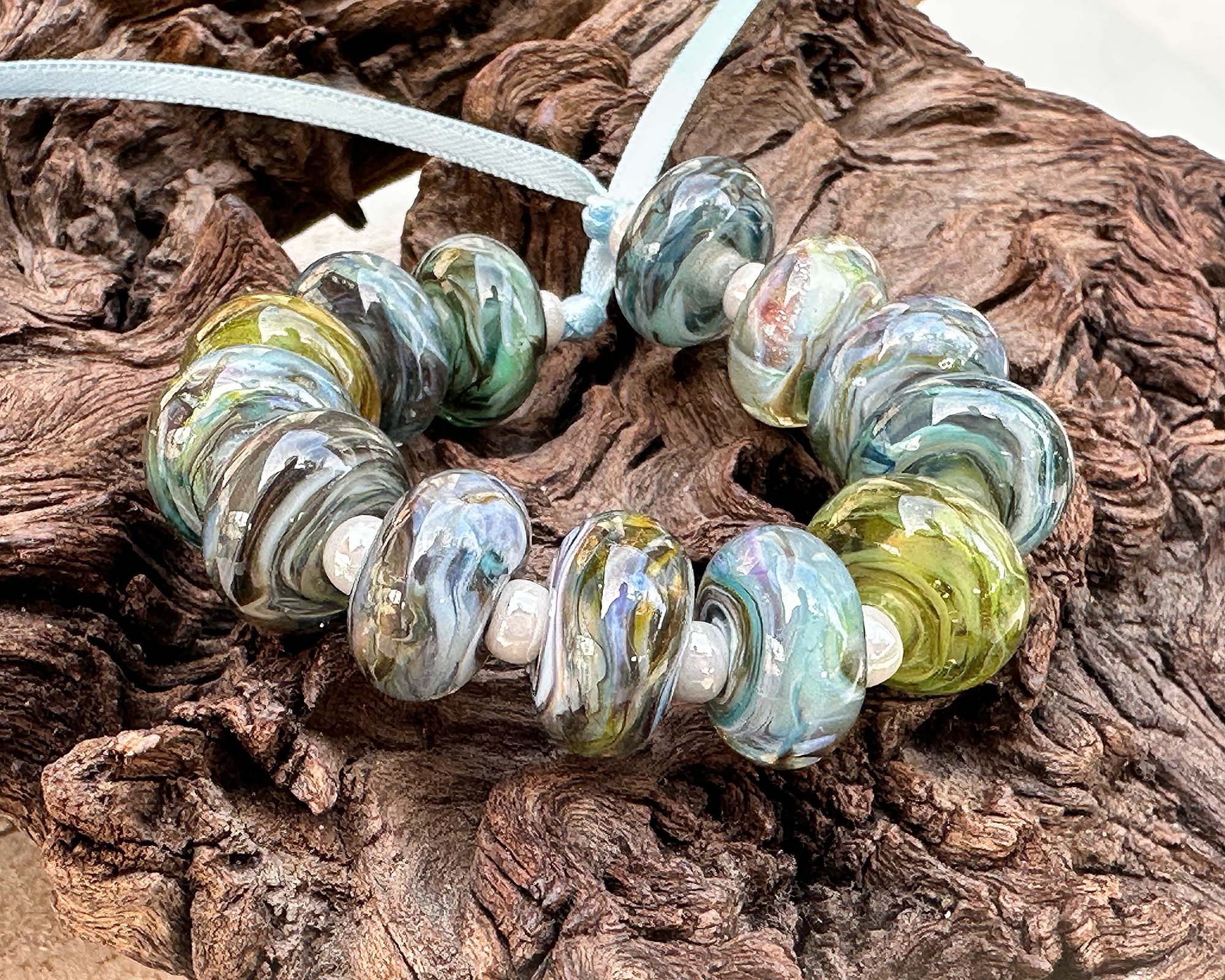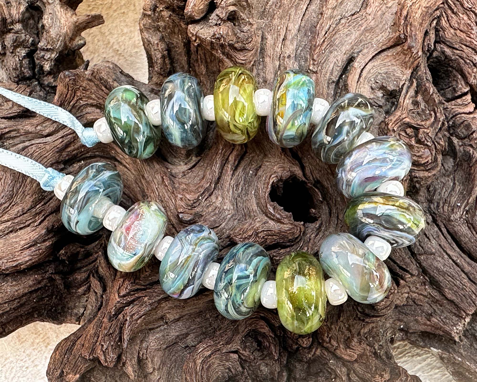 13 Seafoam Green Swirls Lampwork Beads Set SRA