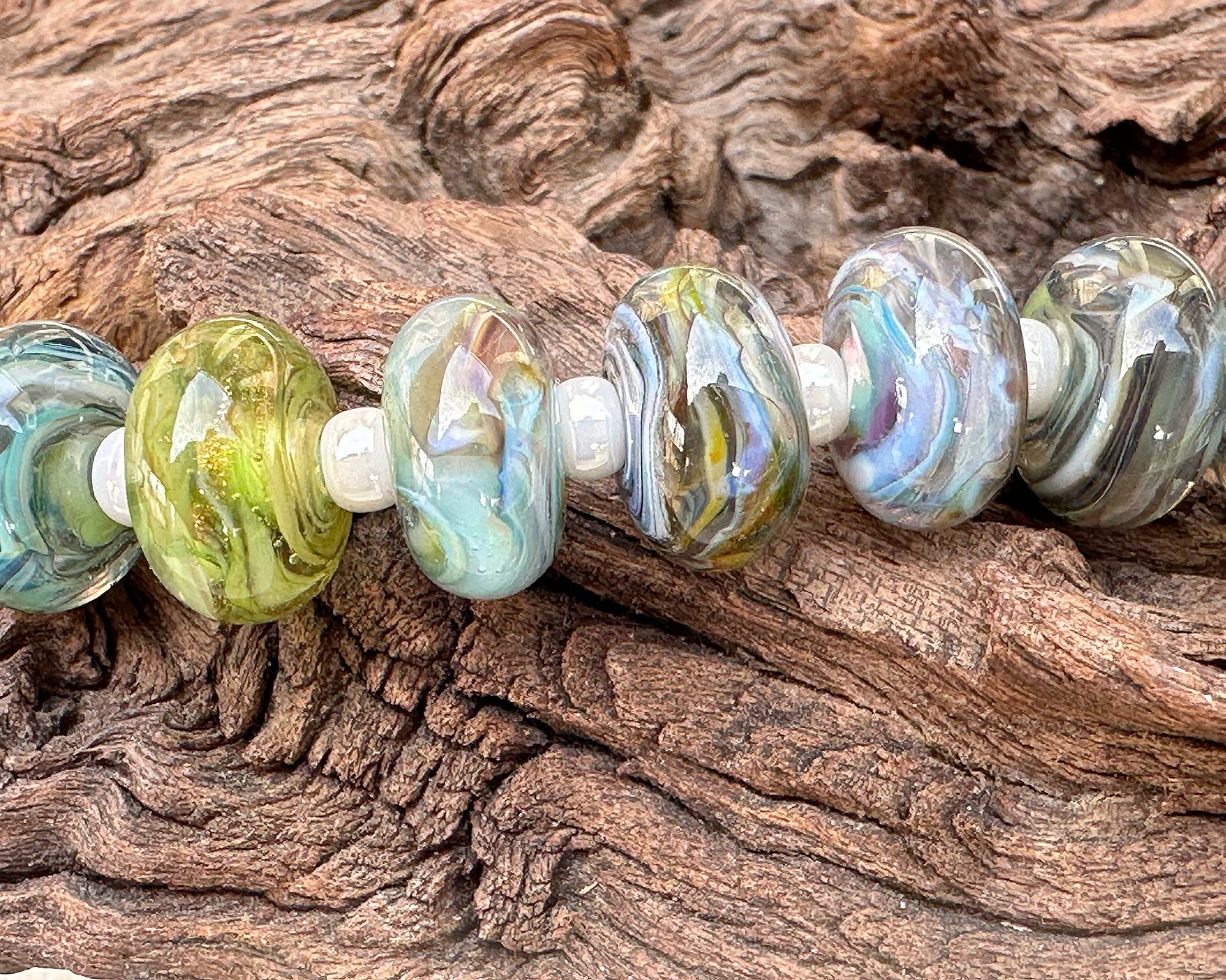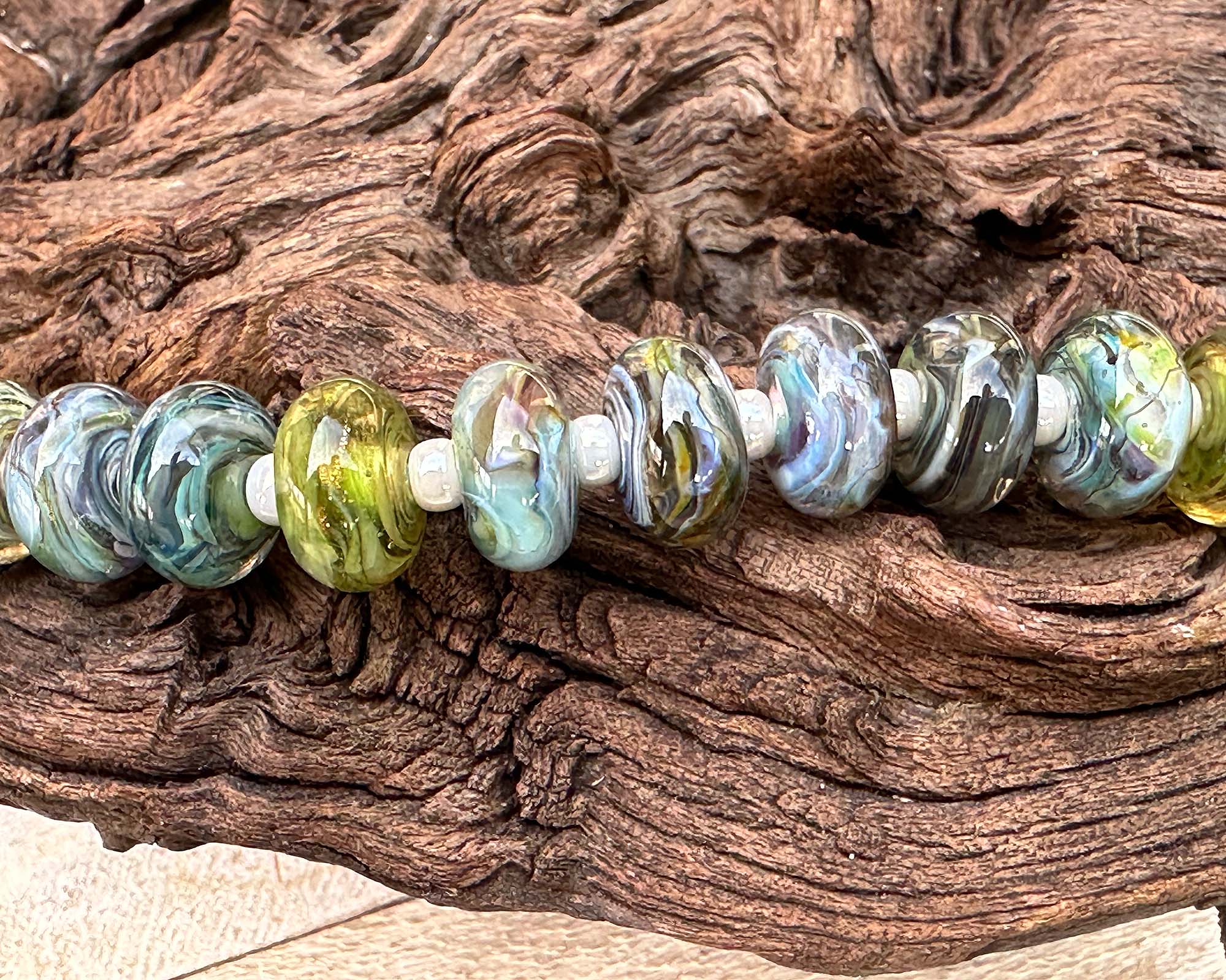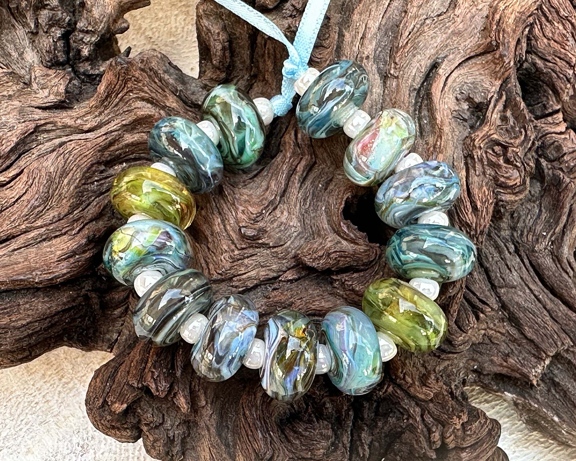 13 Seafoam Green Swirls Lampwork Beads Set SRA
