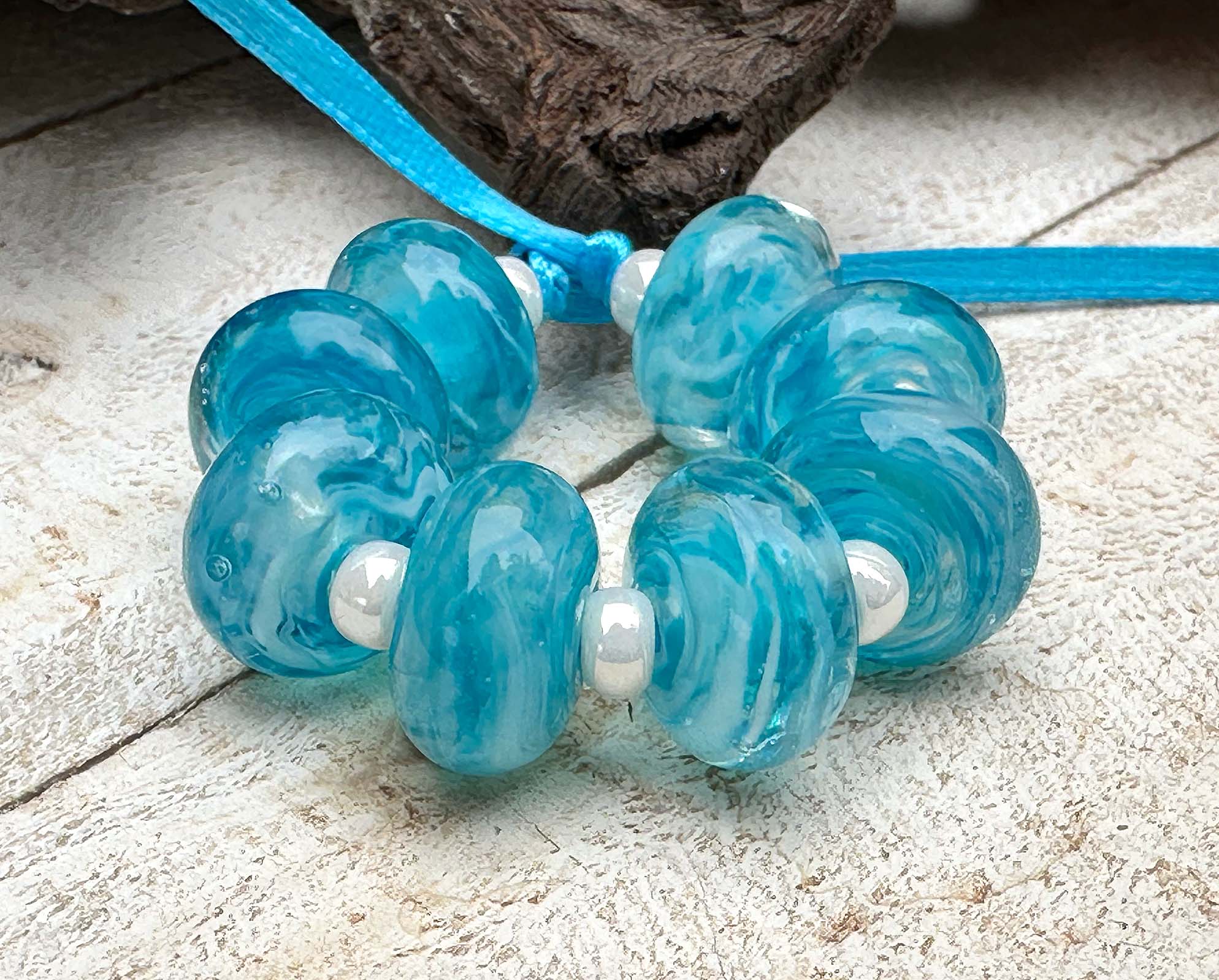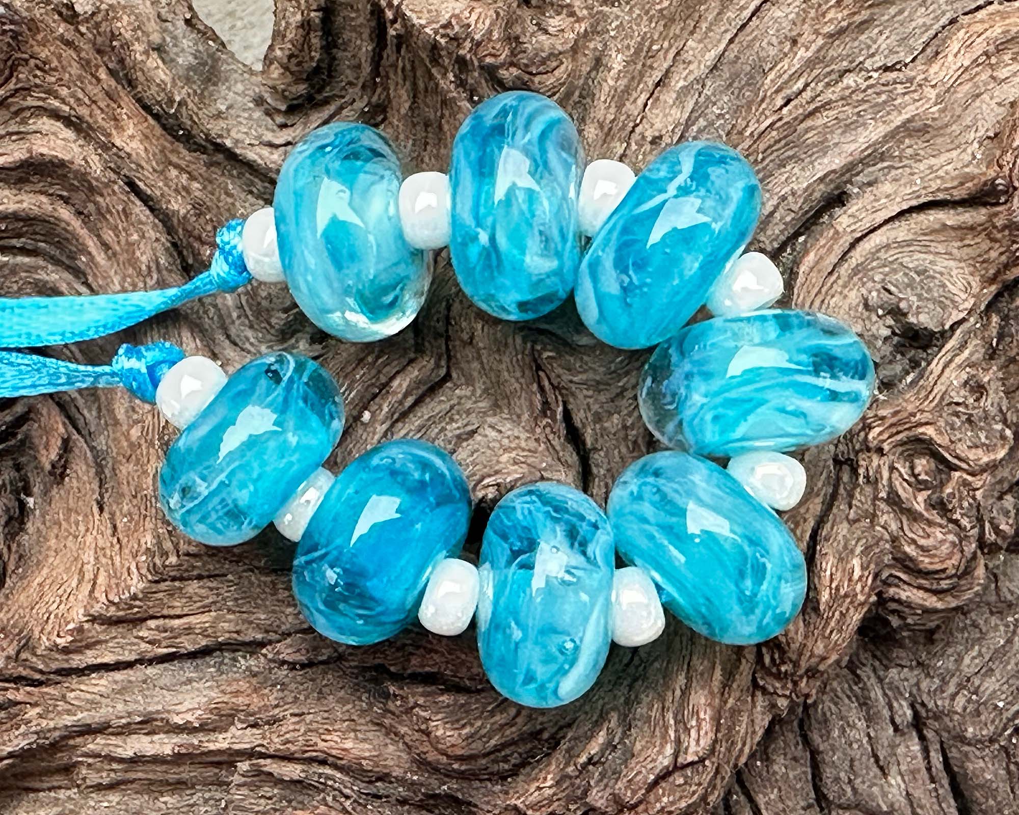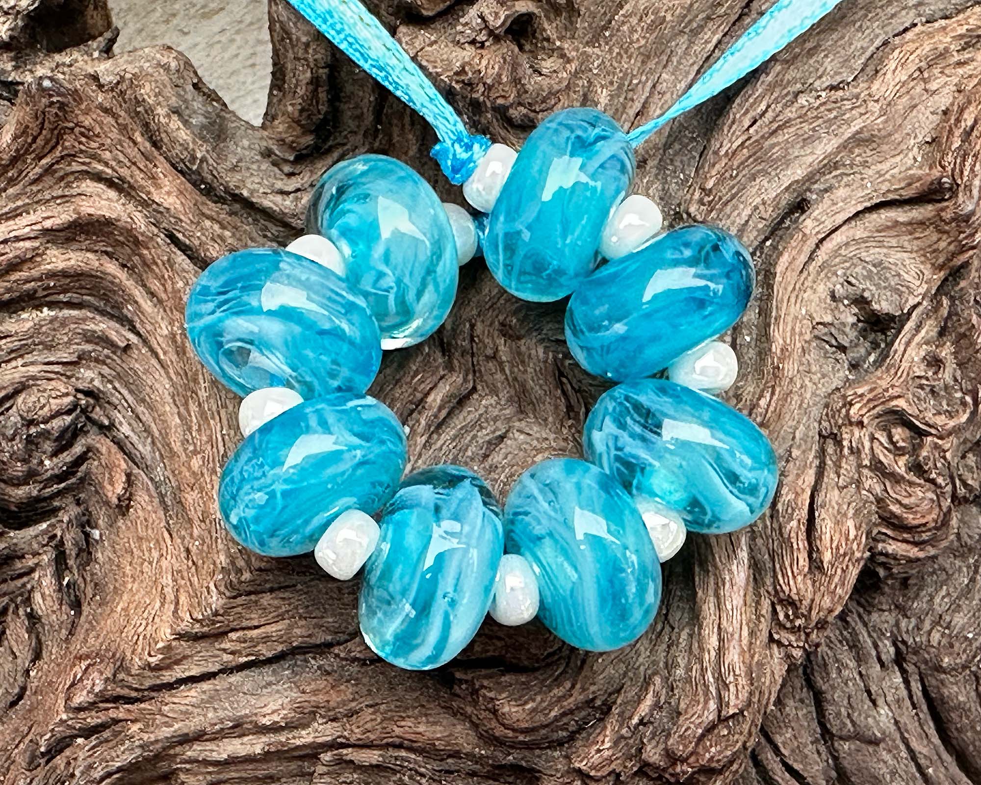 8 Ocean Blue Swirl Lampwork Beads Set SRA