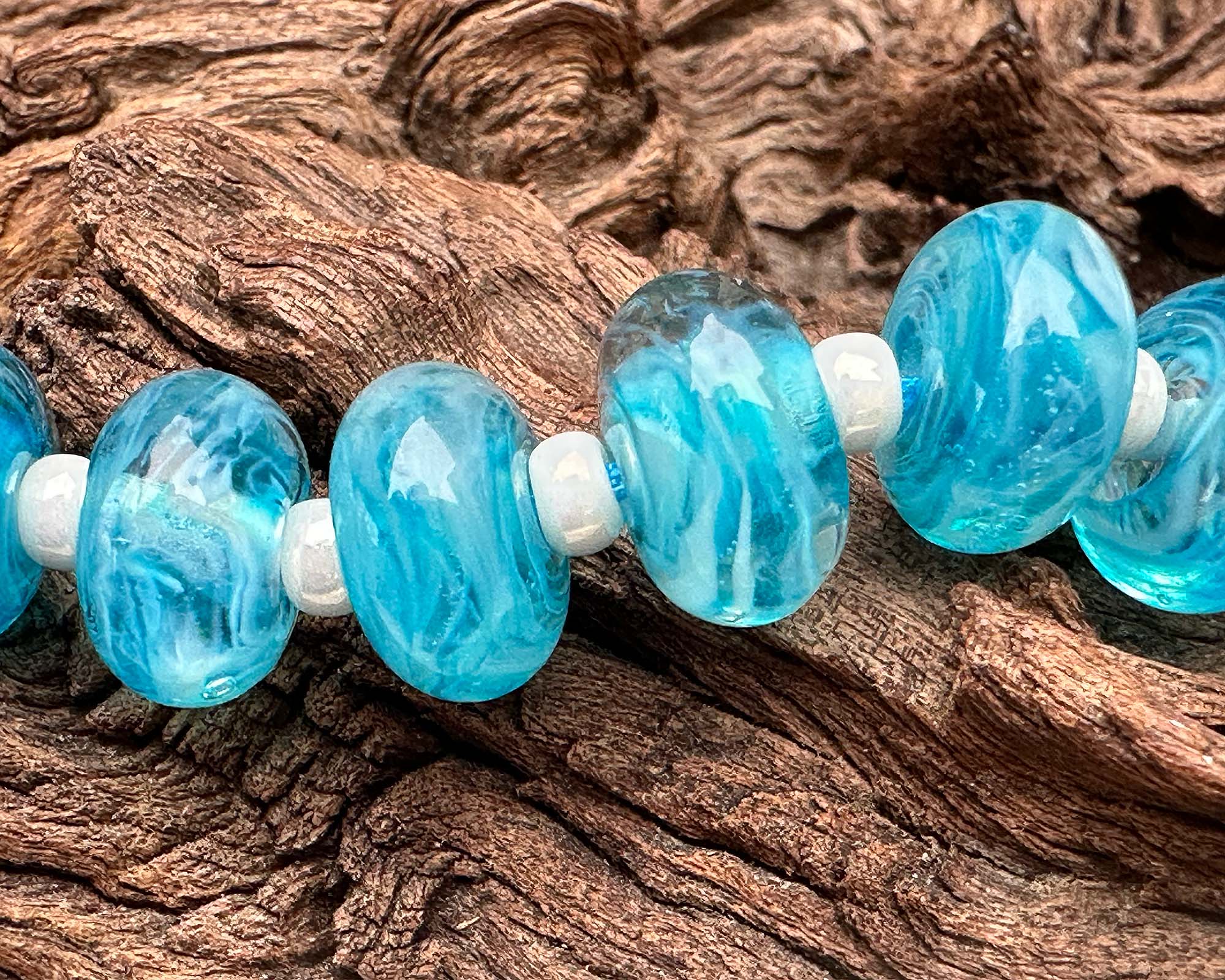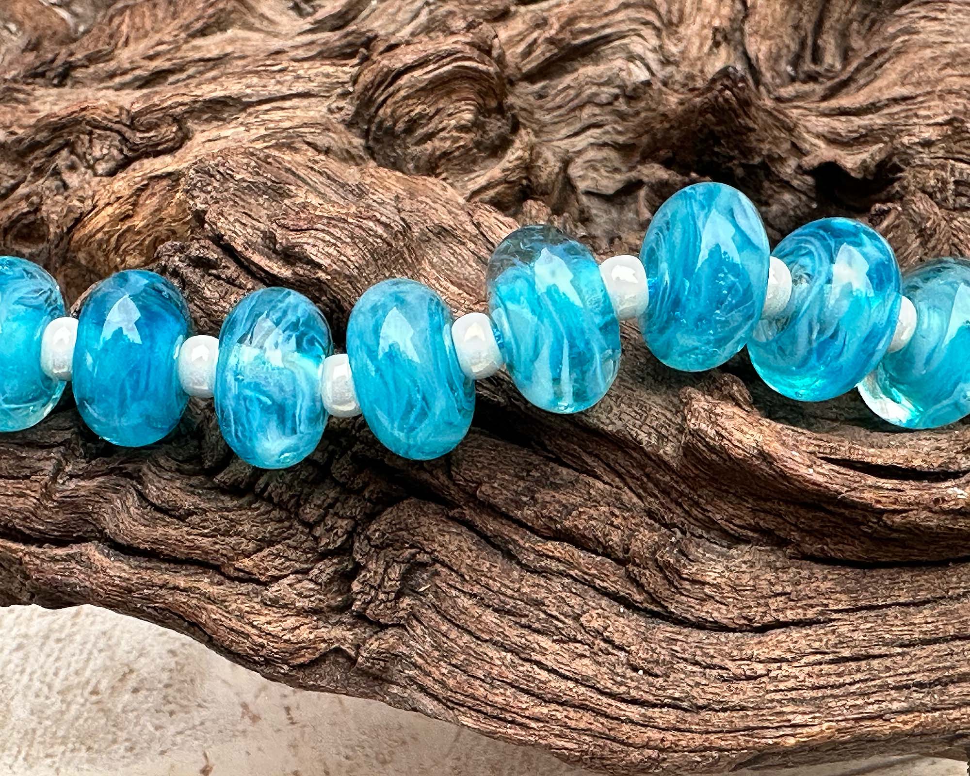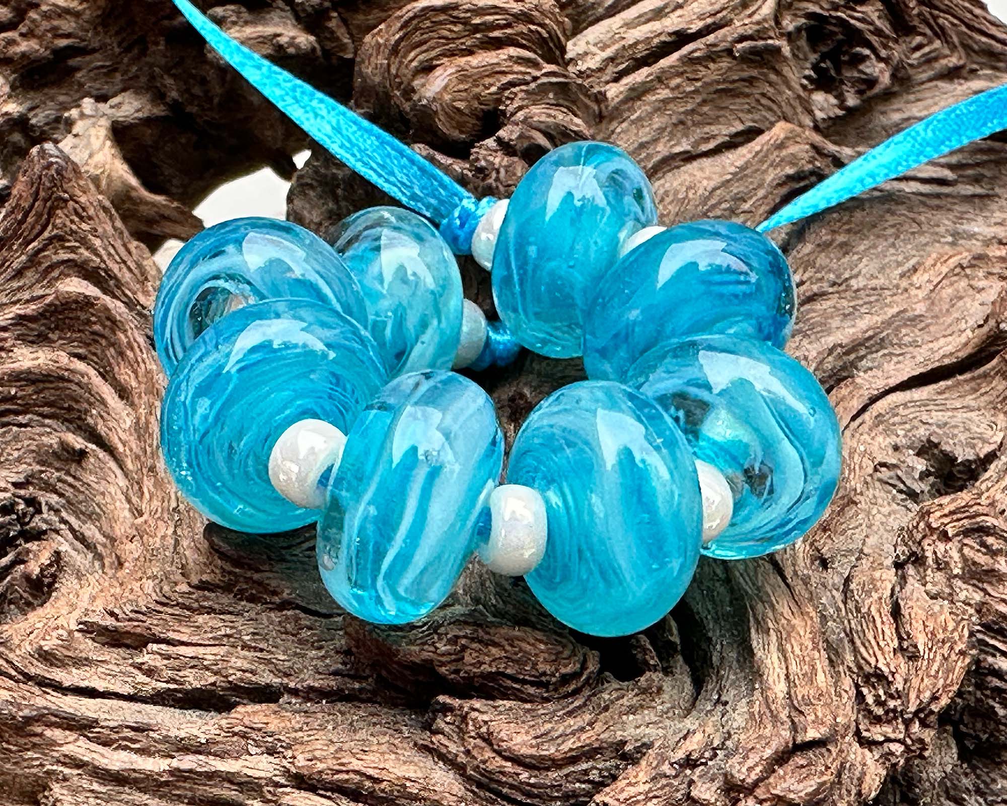 8 Ocean Blue Swirl Lampwork Beads Set SRA