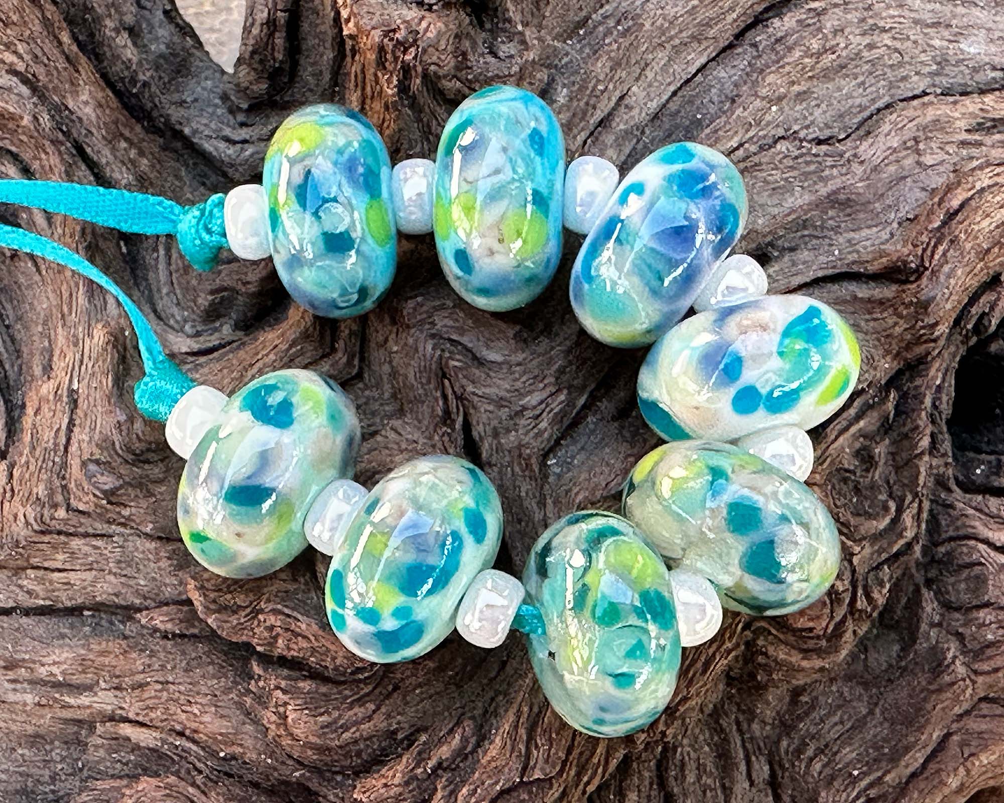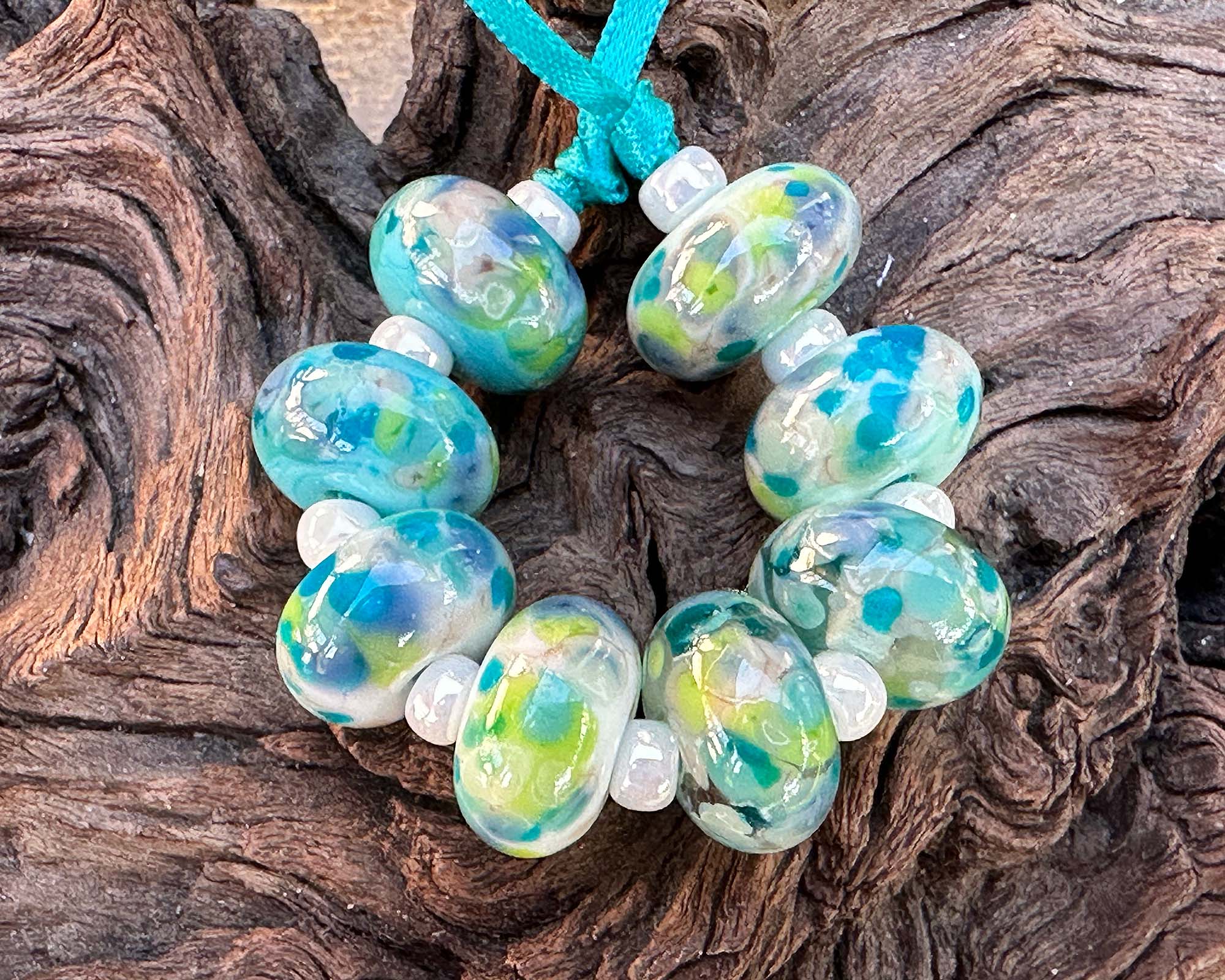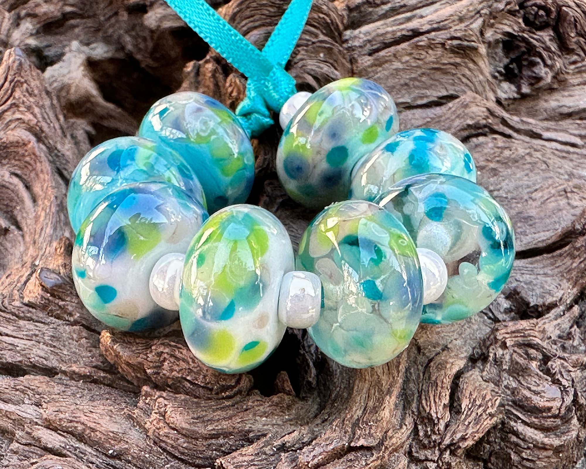 8 Sea Glass Alchemy Mosaic Lampwork Beads Set SRA