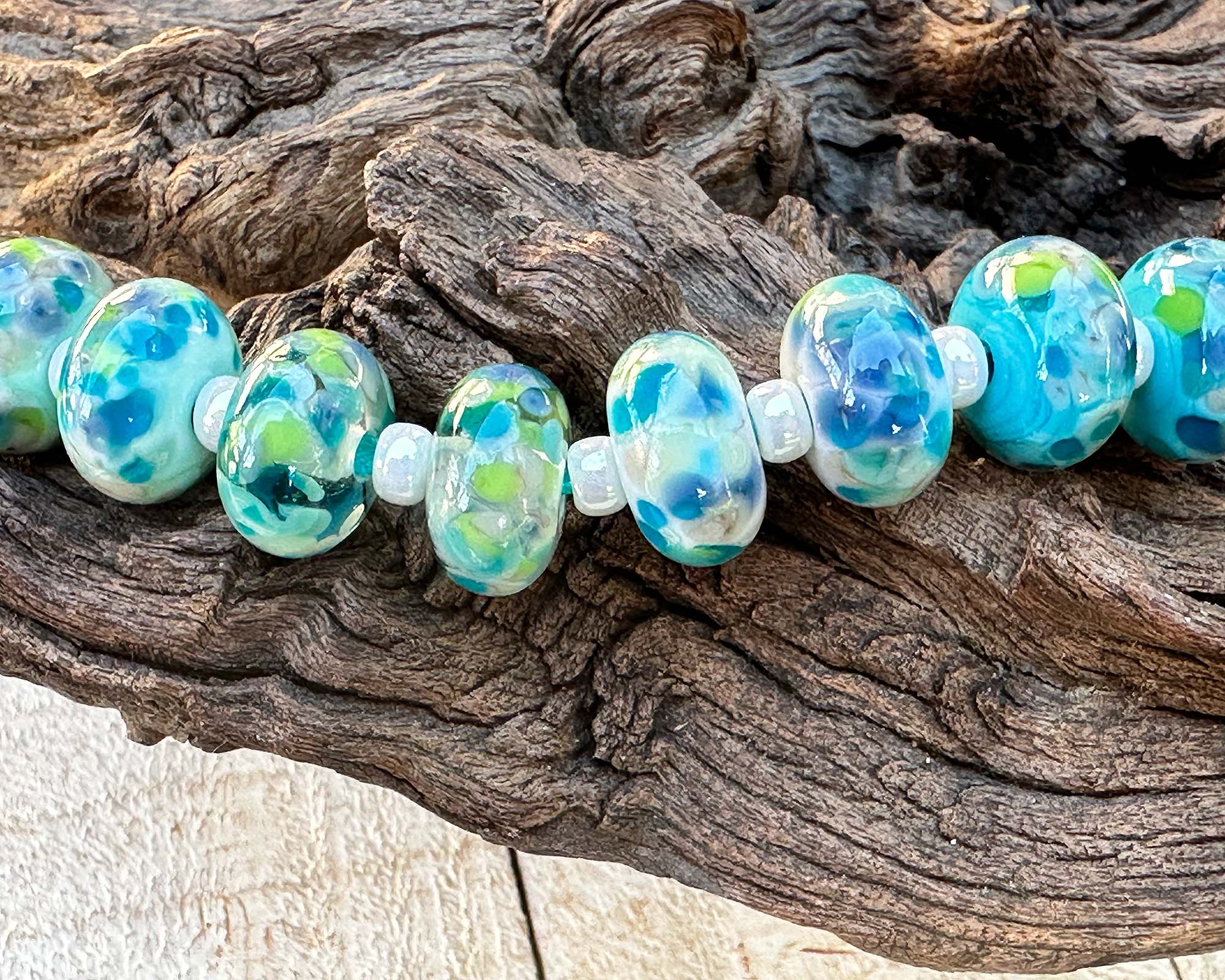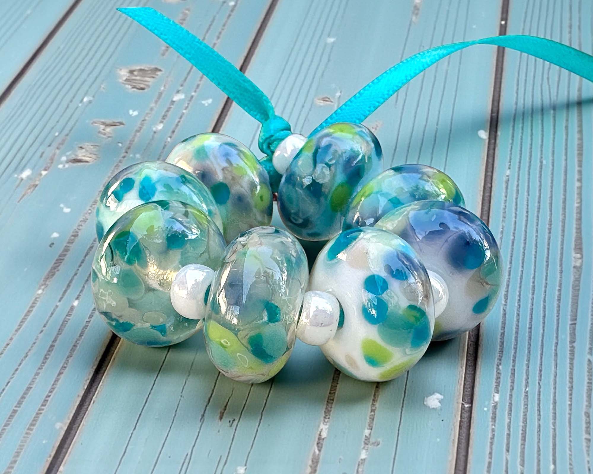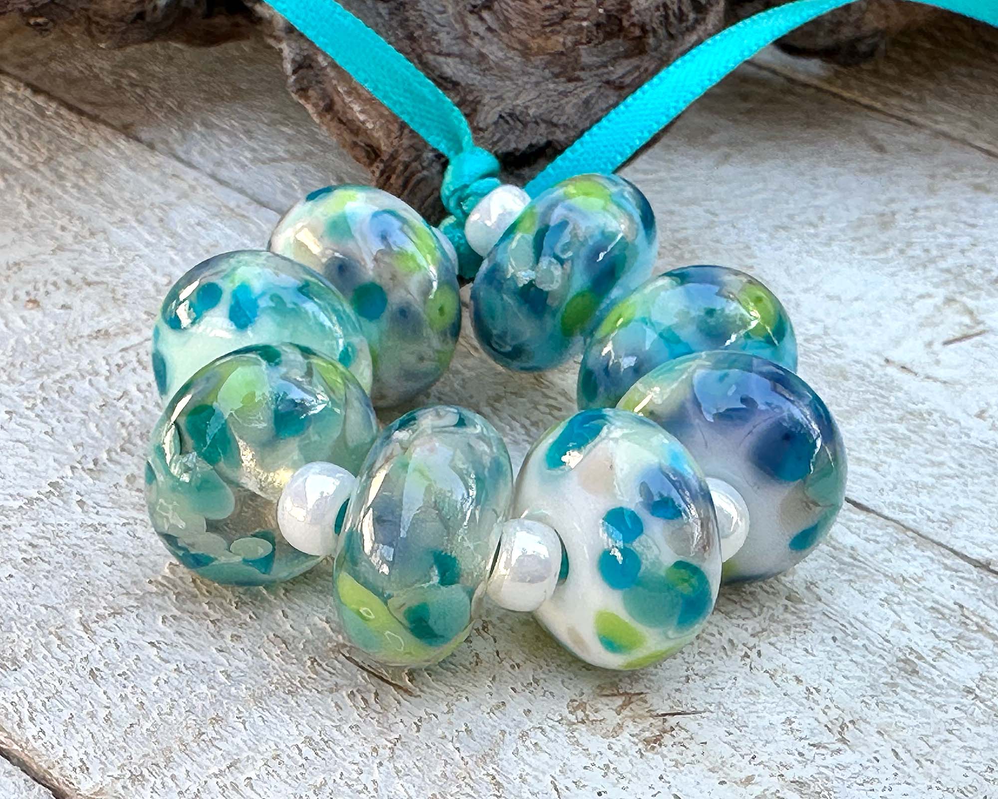 Please note that colors may vary slightly depending on monitor settings. The accompanying photos were taken outdoors in indirect light. This unique set of beautiful lampwork beads is handmade in the USA by designer Stephanie A. White, making them ideal for creating one-of-a-kind jewelry pieces. Don’t miss out, only one set is available!