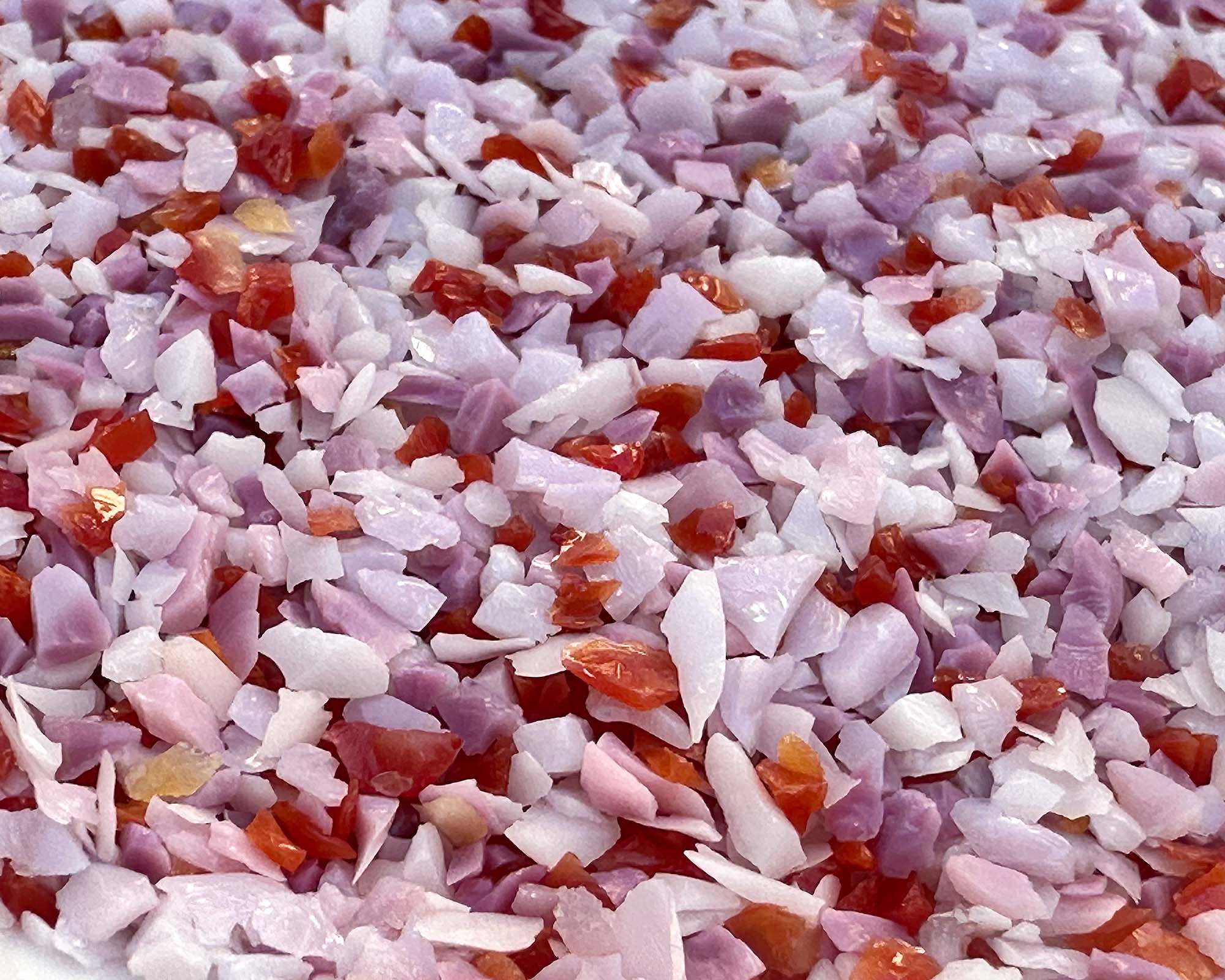 Craft stunning lampwork beads with the True Valentine Pink Frit Blend, a playful medley of pink, purple, and lavender that brings instant personality to your glass projects. This 2 oz blend works beautifully with 96 COE glass and plays nicely in 104 COE applications (up to 5–10%). Layer it over white, clear, pink, peach, lavender, or beige bases to unlock gemstone-inspired sparkle and whimsical character. Whether you're a lampworker, fuser, or glassblower, this versatile frit mix is your secret weapon for adding depth and visual magic to every creation. (Bead samples shown for inspiration—not included.)