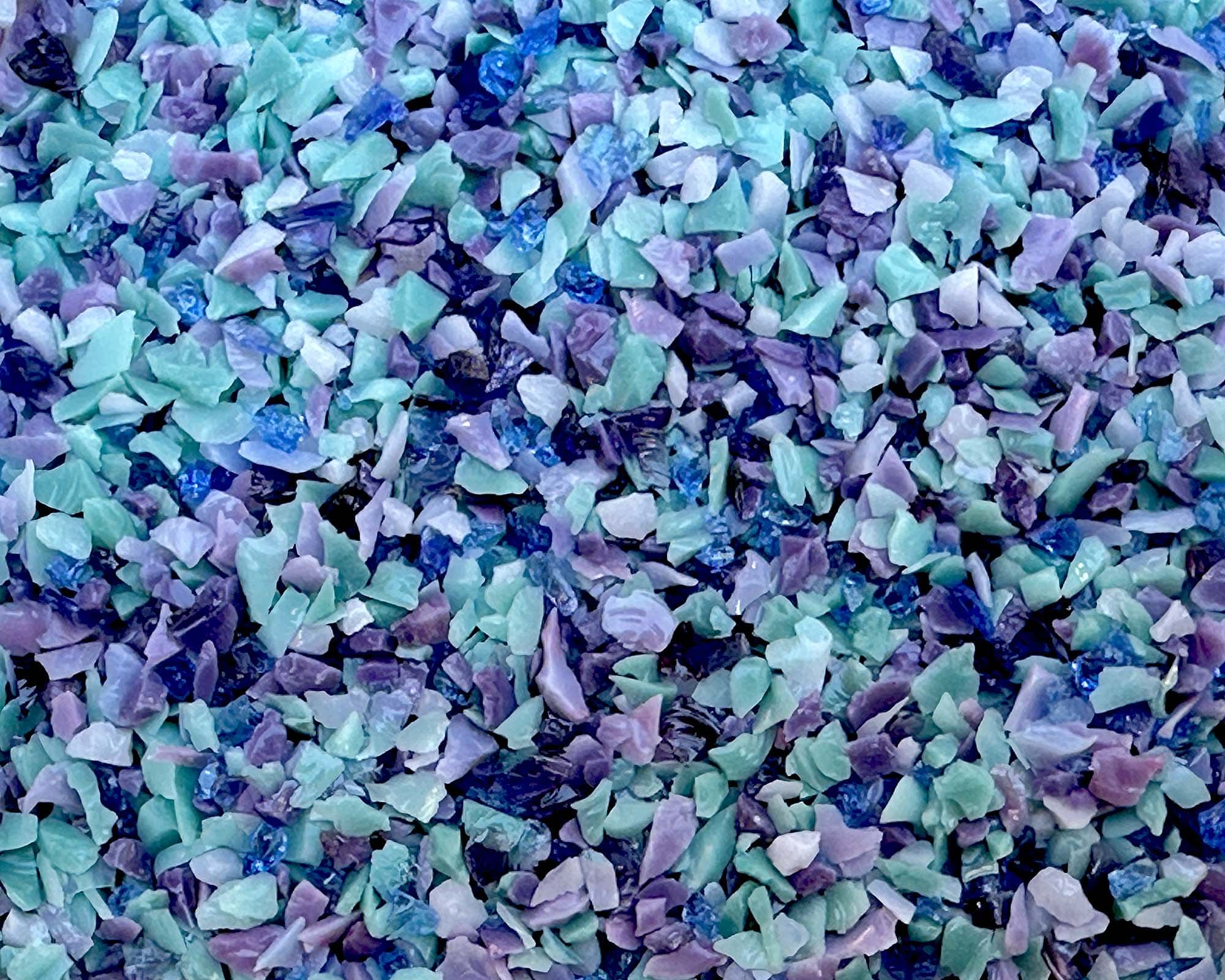 Inject vibrant energy with our Wisteria frit blend, featuring a vibrant mix of turquoise, blues, and purple hues!