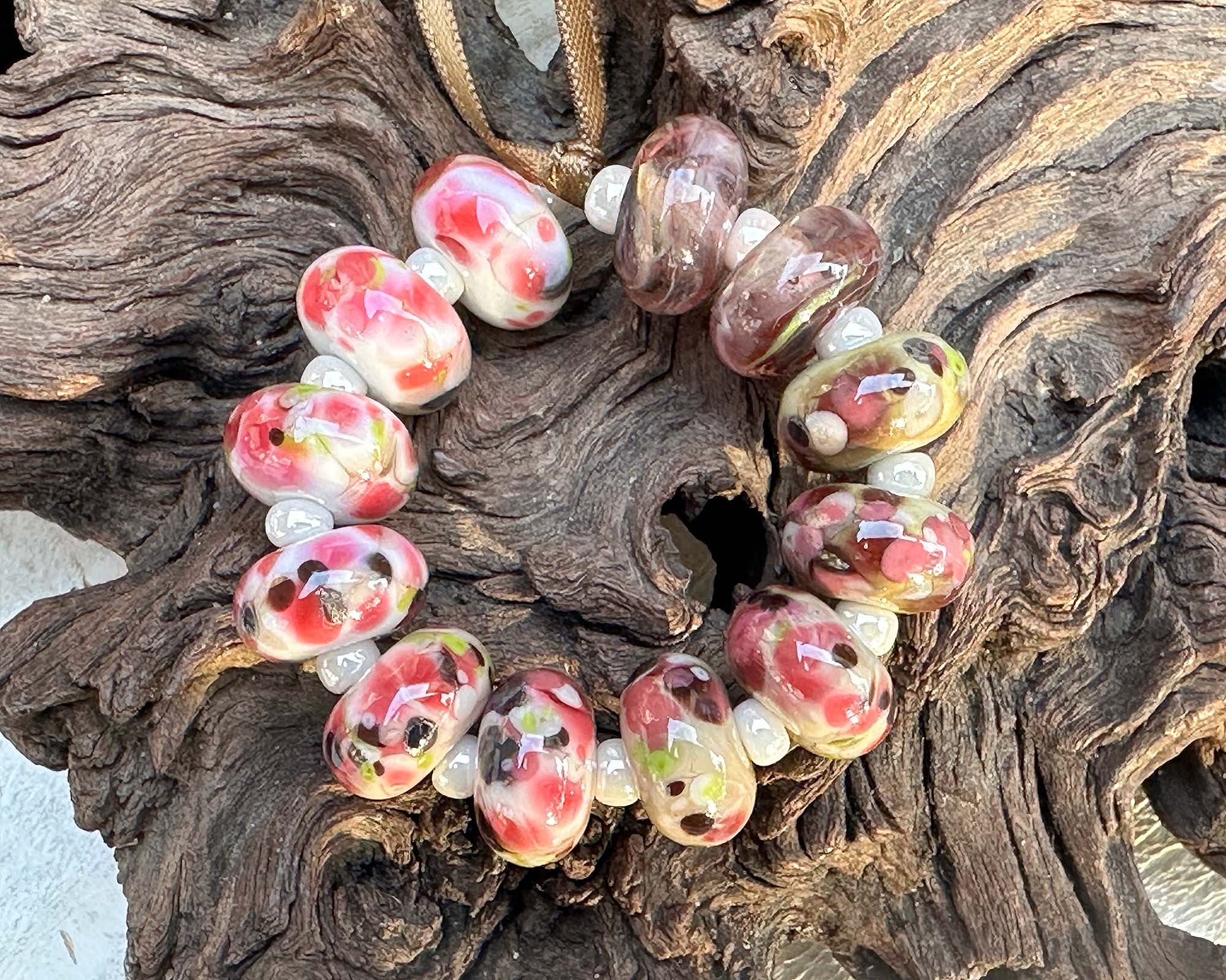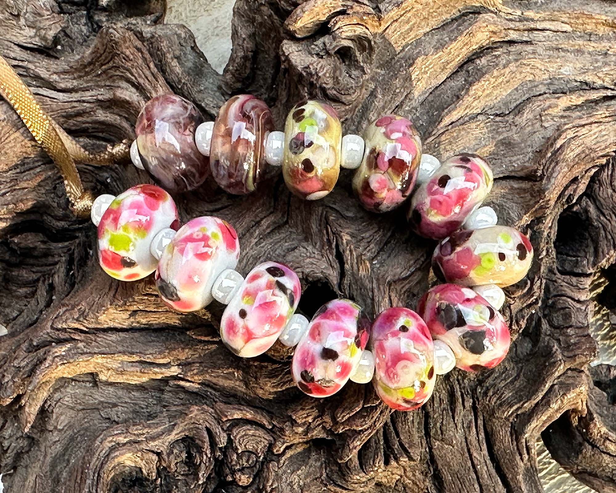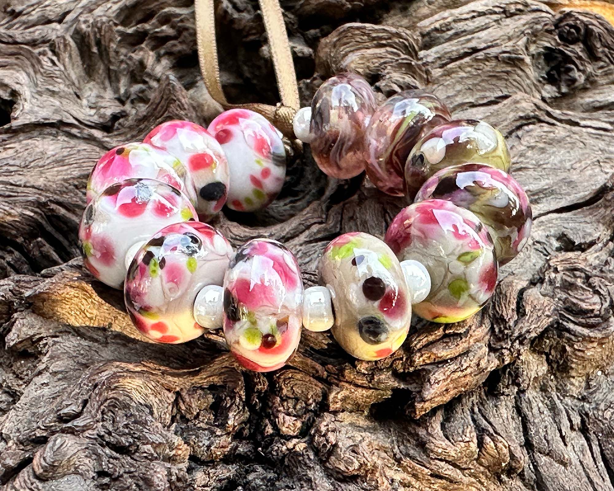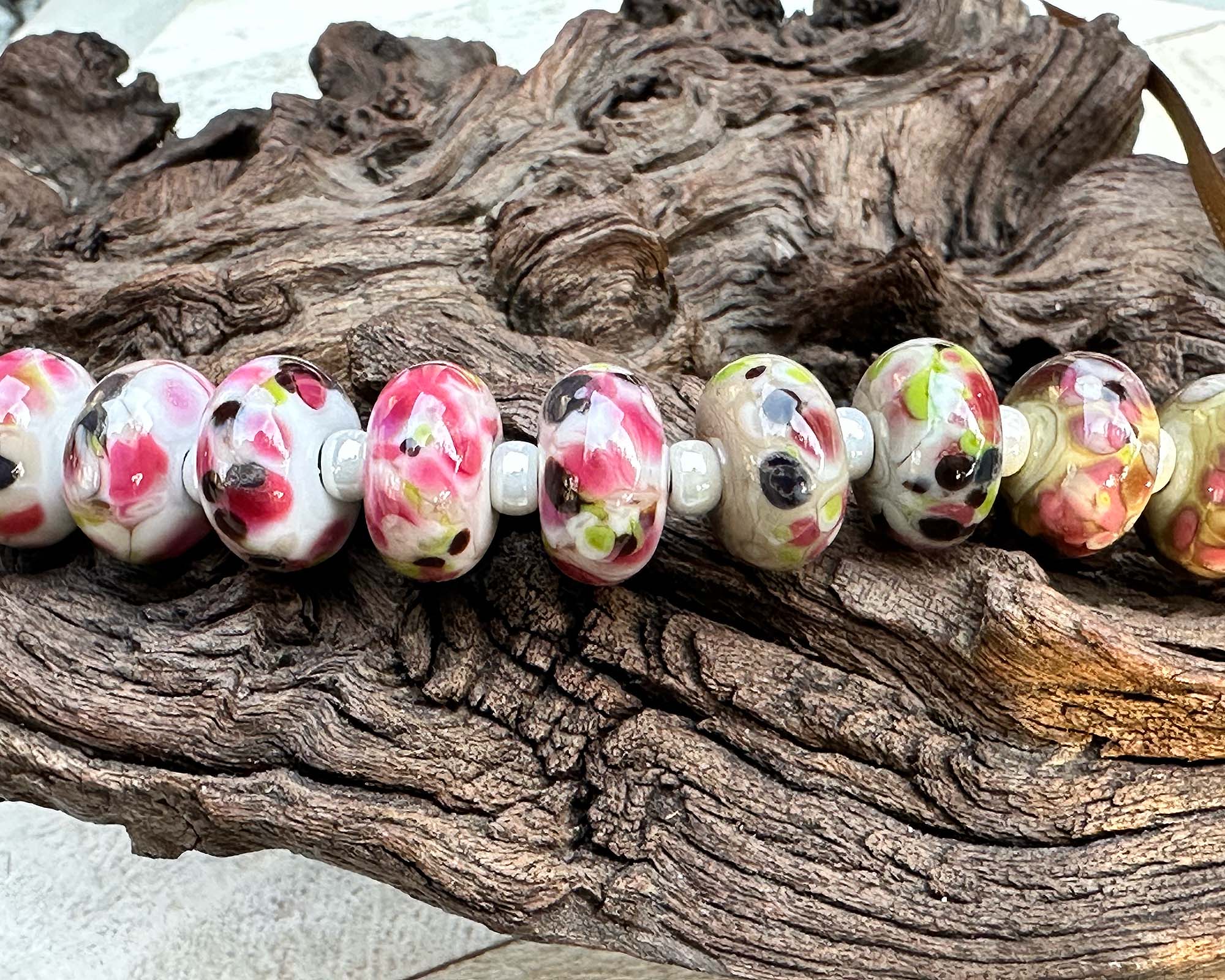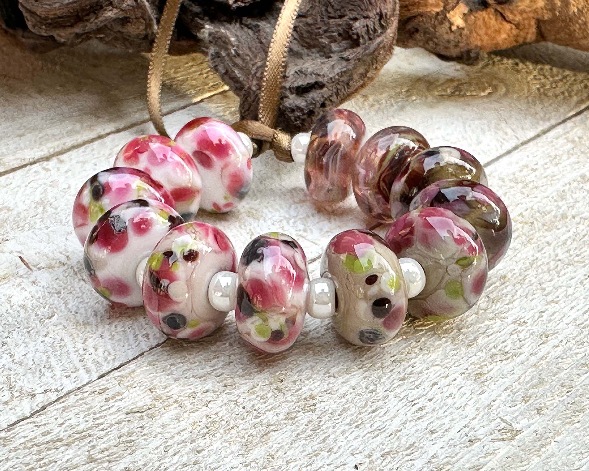 12 Rustic Pink Bouquet Lampwork Beads Set SRA