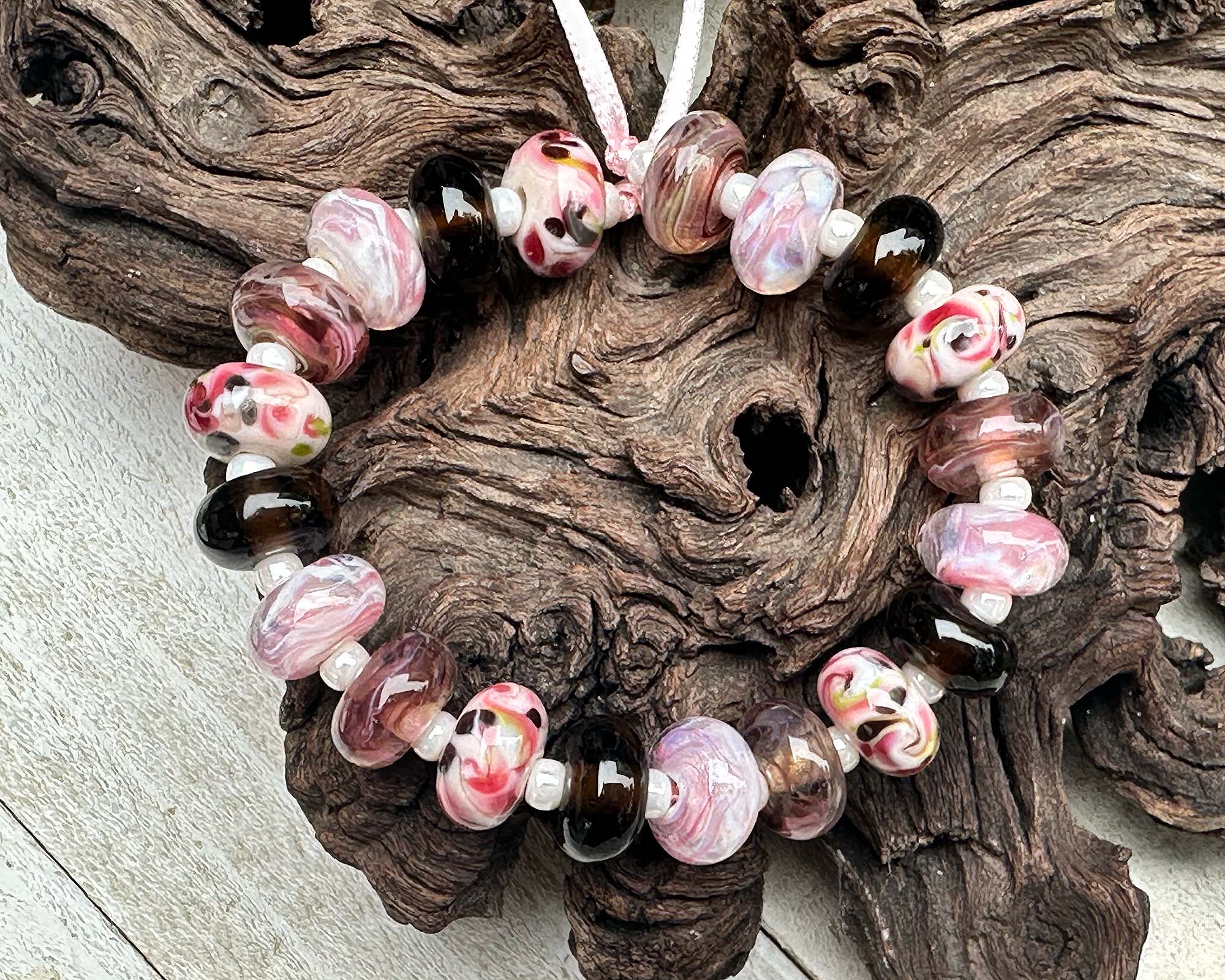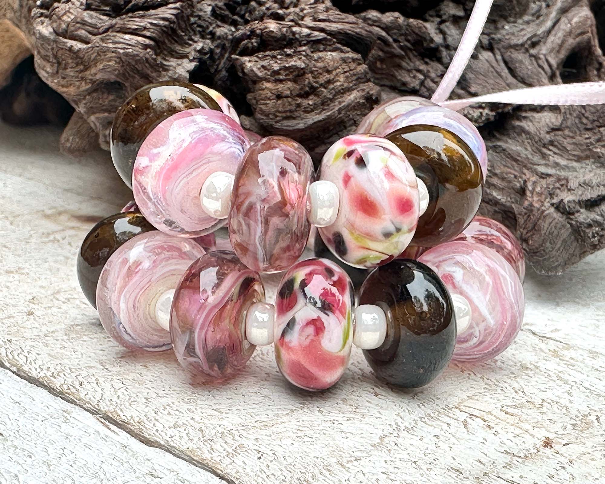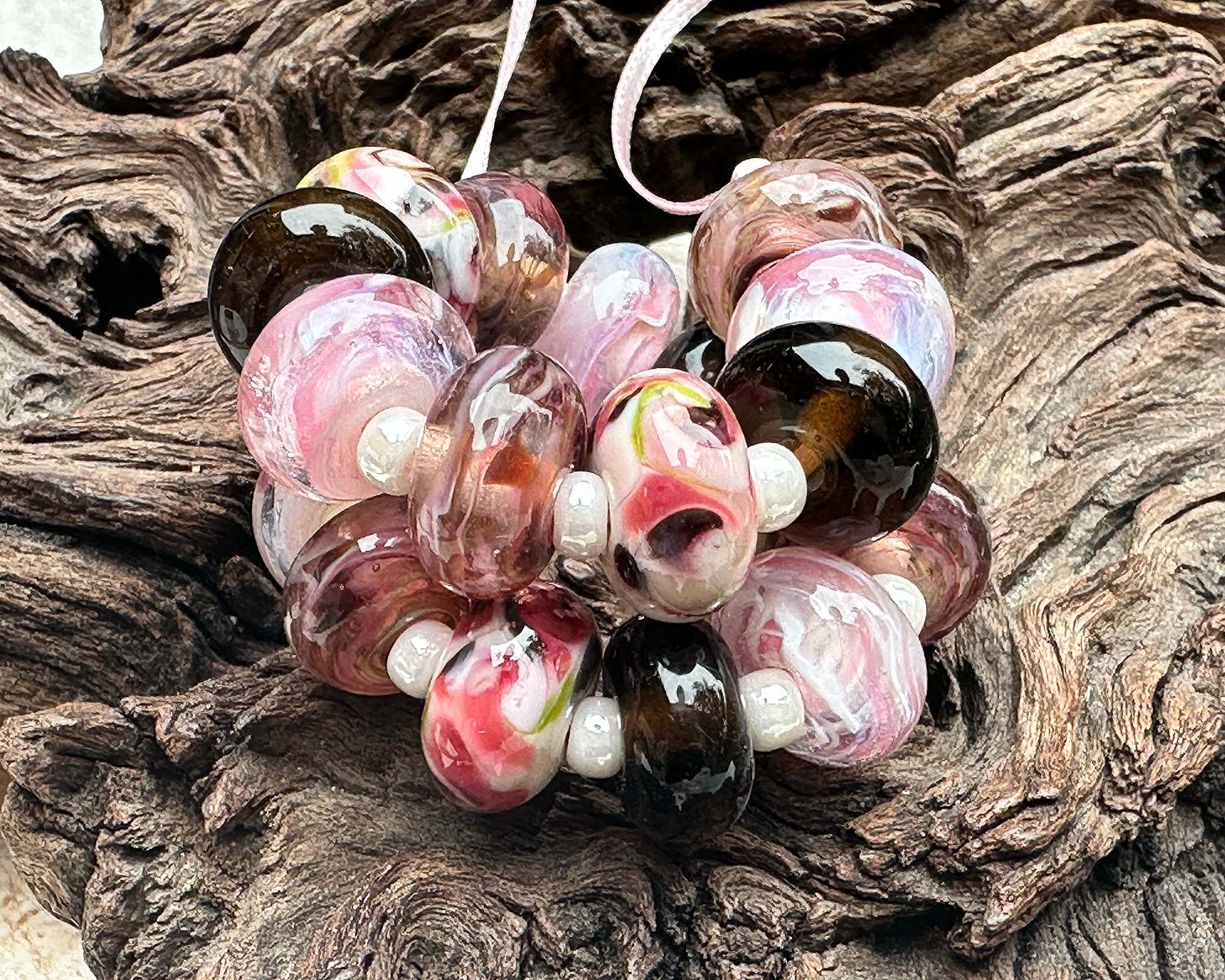 20 Secret Garden Pink Lampwork Beads Set SRA
