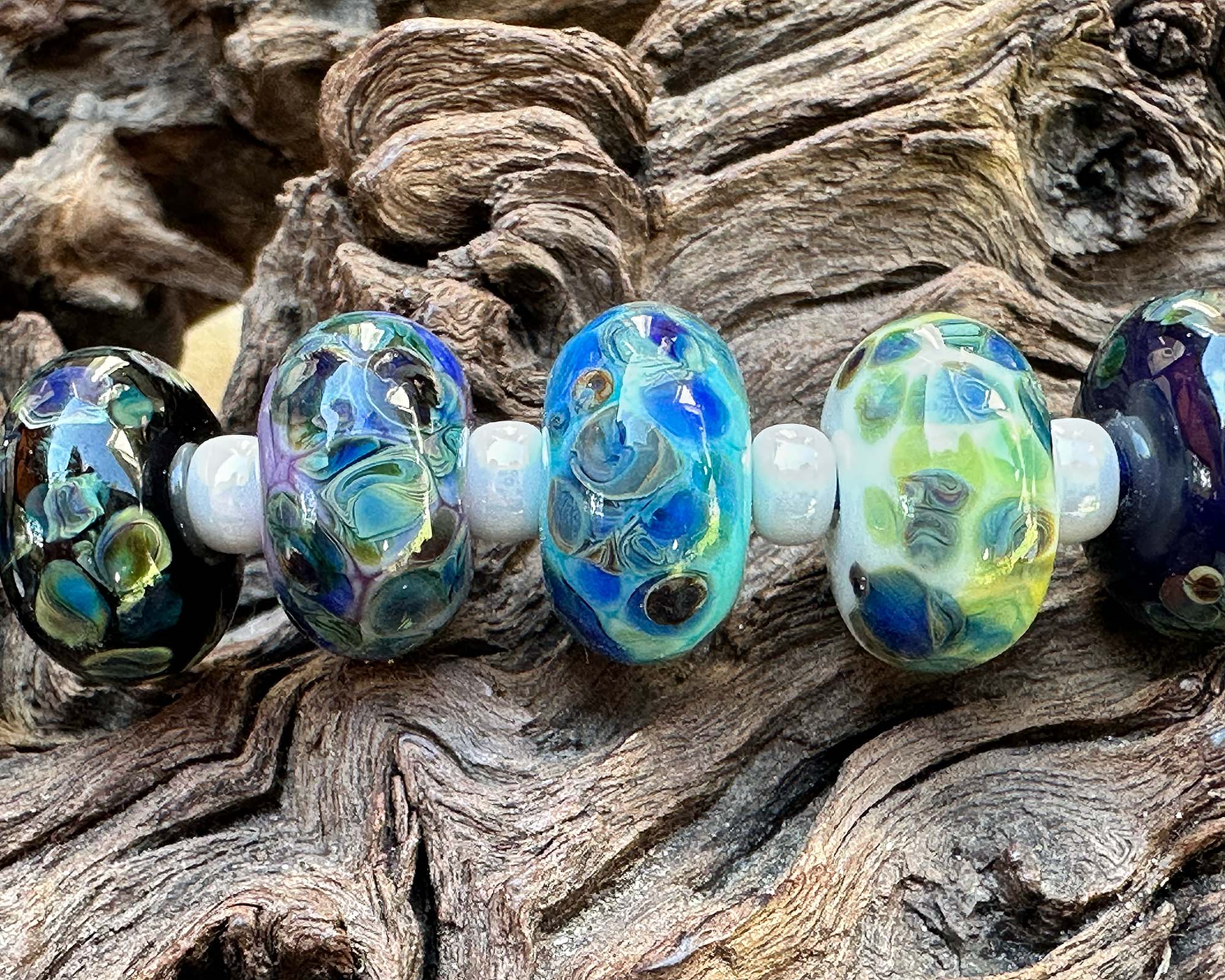 Please note: Colors may vary slightly due to different monitor settings. These photos were taken outdoors in indirect light. Only one set of these beautiful lampwork beads is available. Handmade in the USA by designer Stephanie A White, perfect for creating one-of-a-kind jewelry pieces.