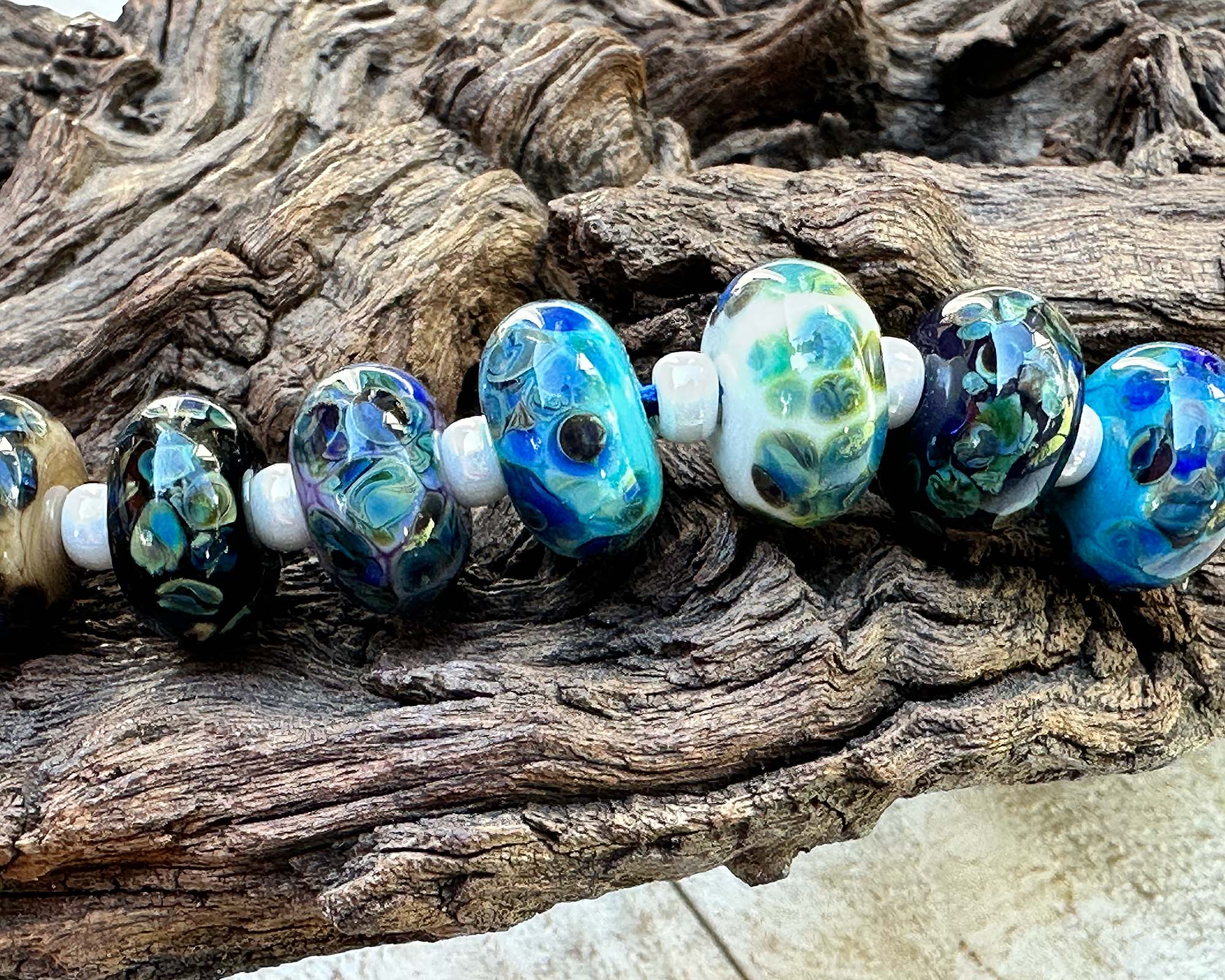 7 Cool Blue Mosaic Lampwork Beads Set SRA