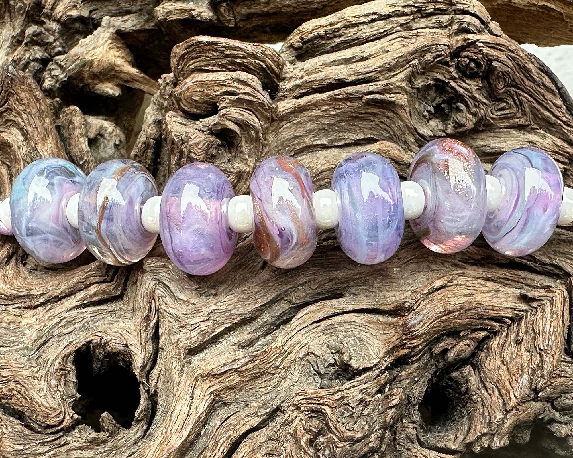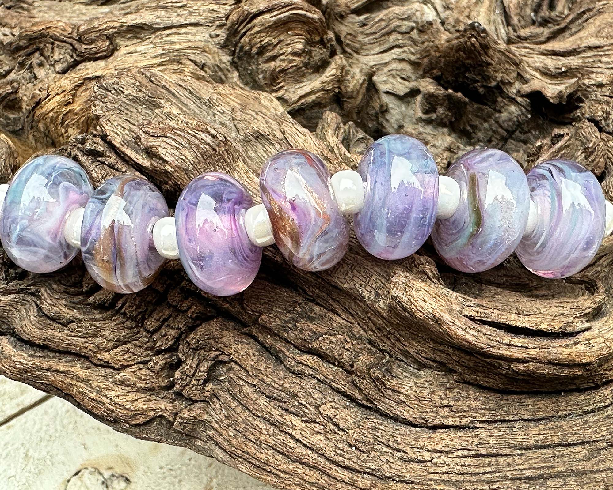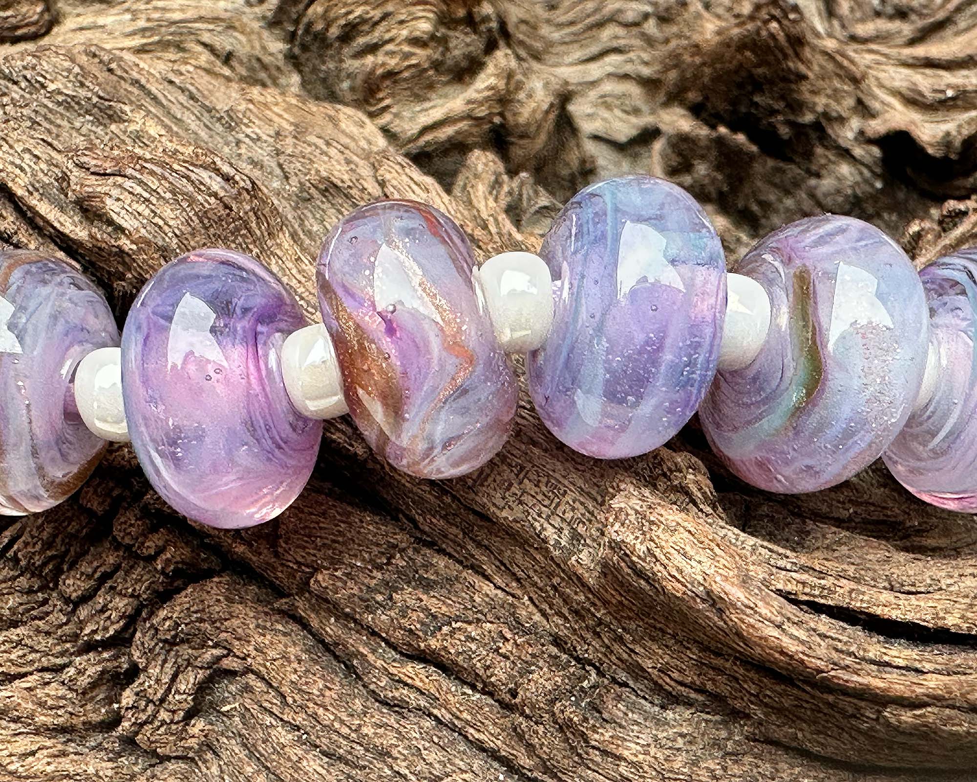 7 Dreamy Lavender Shimmer Lampwork Beads Set SRA