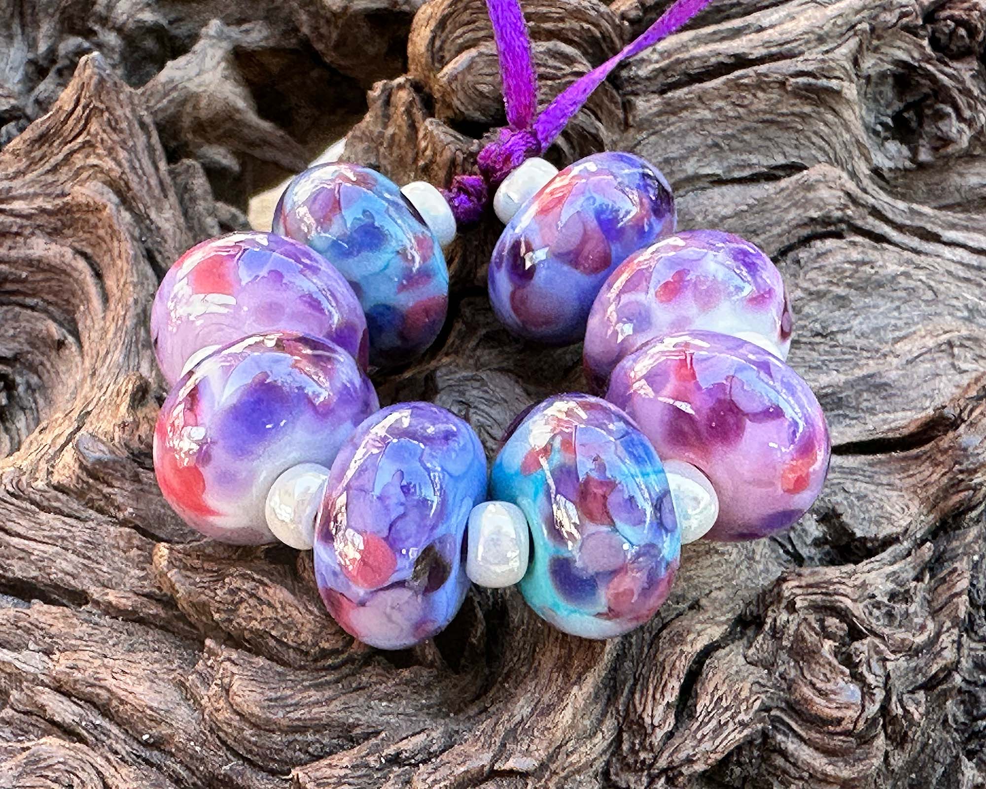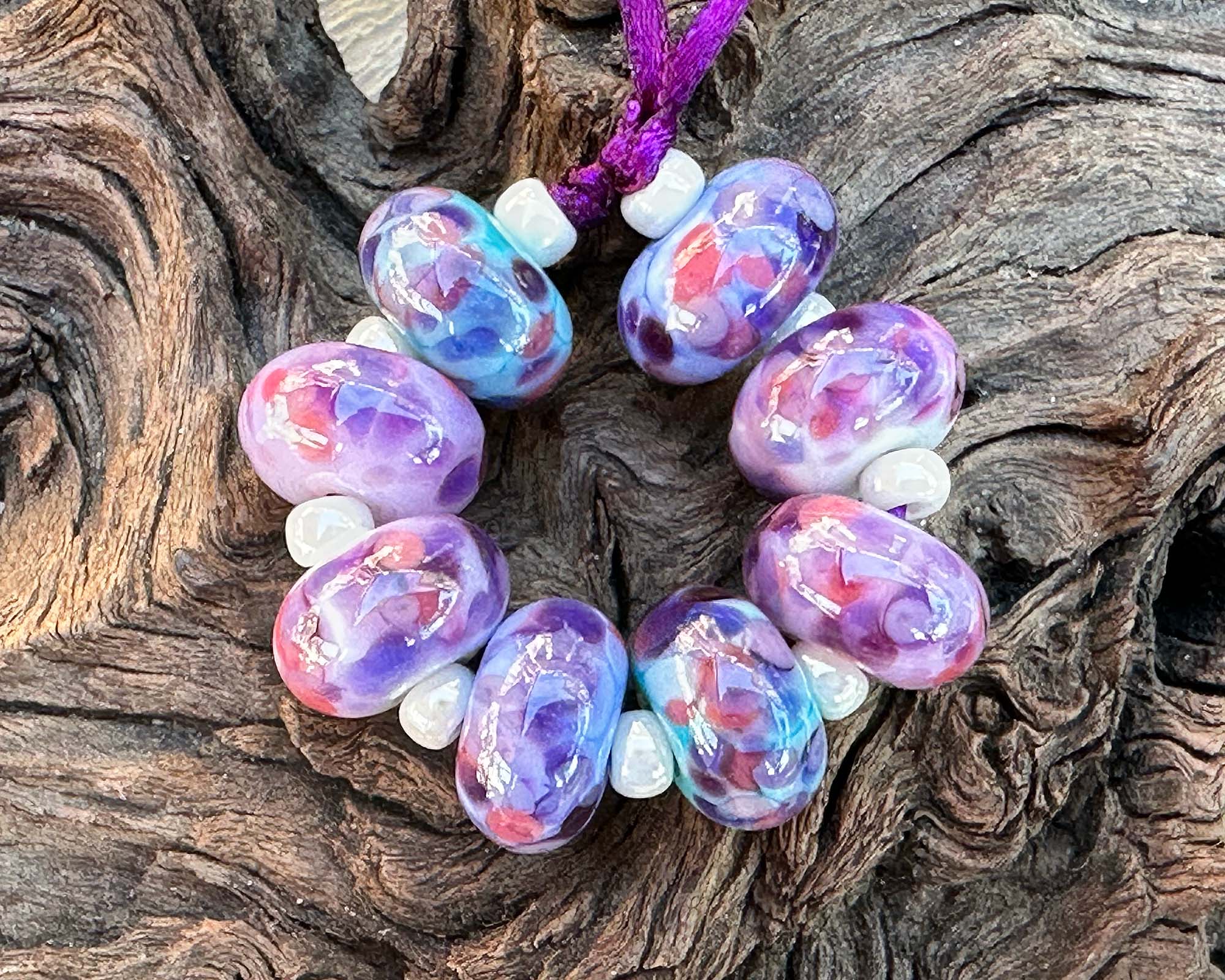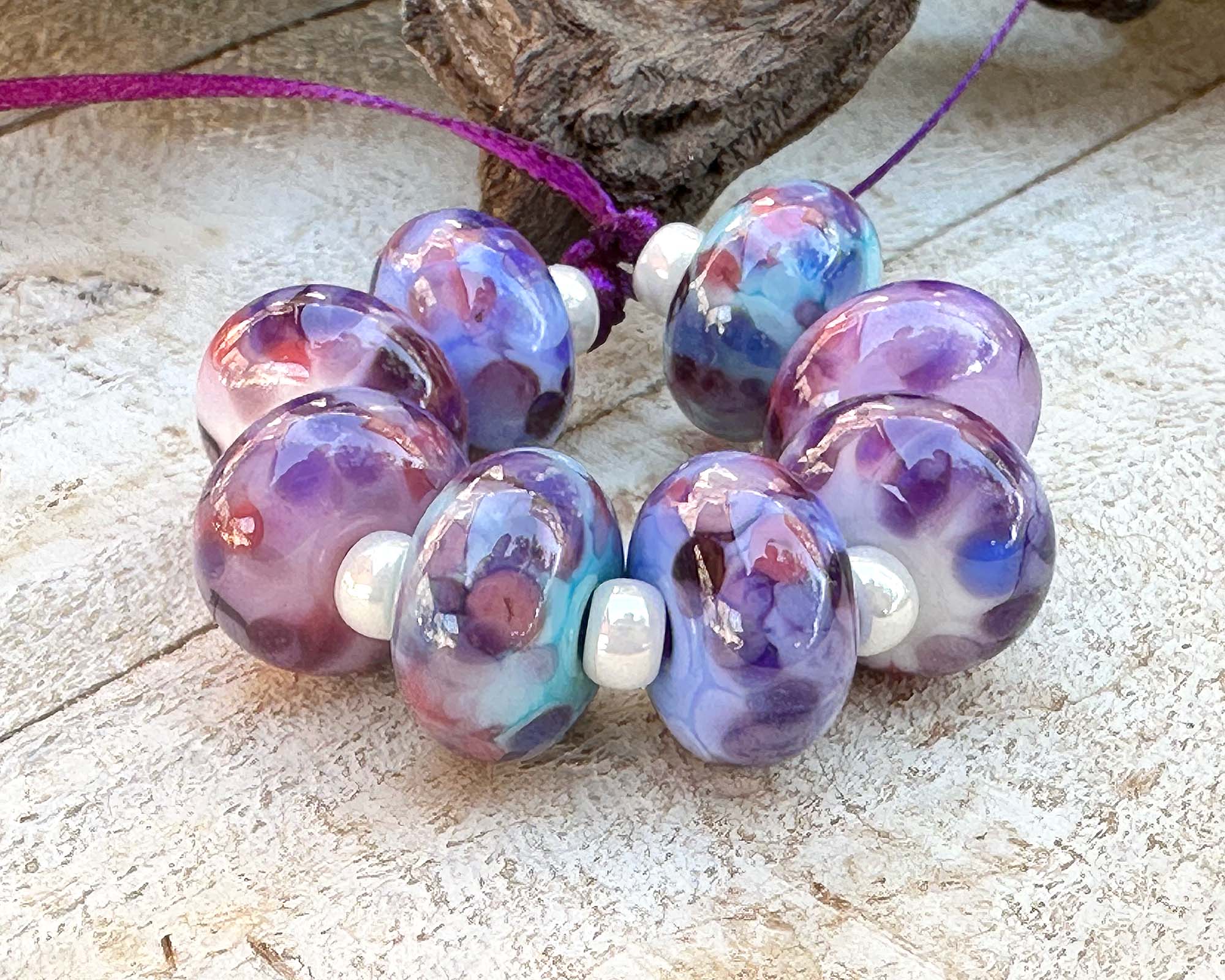 8 Aura Violet Mosaic Lampwork Beads Mix SRA