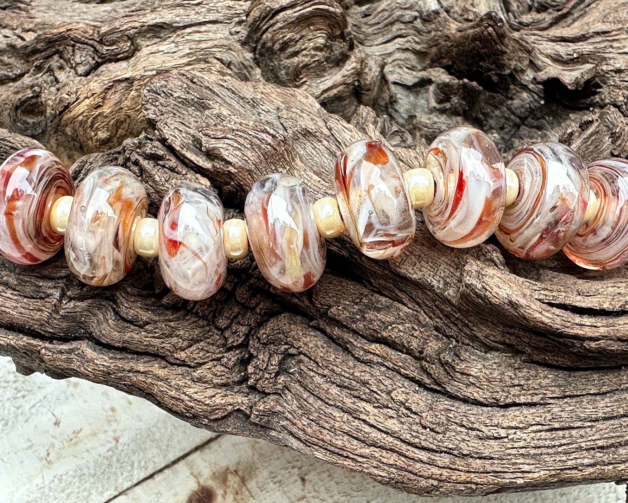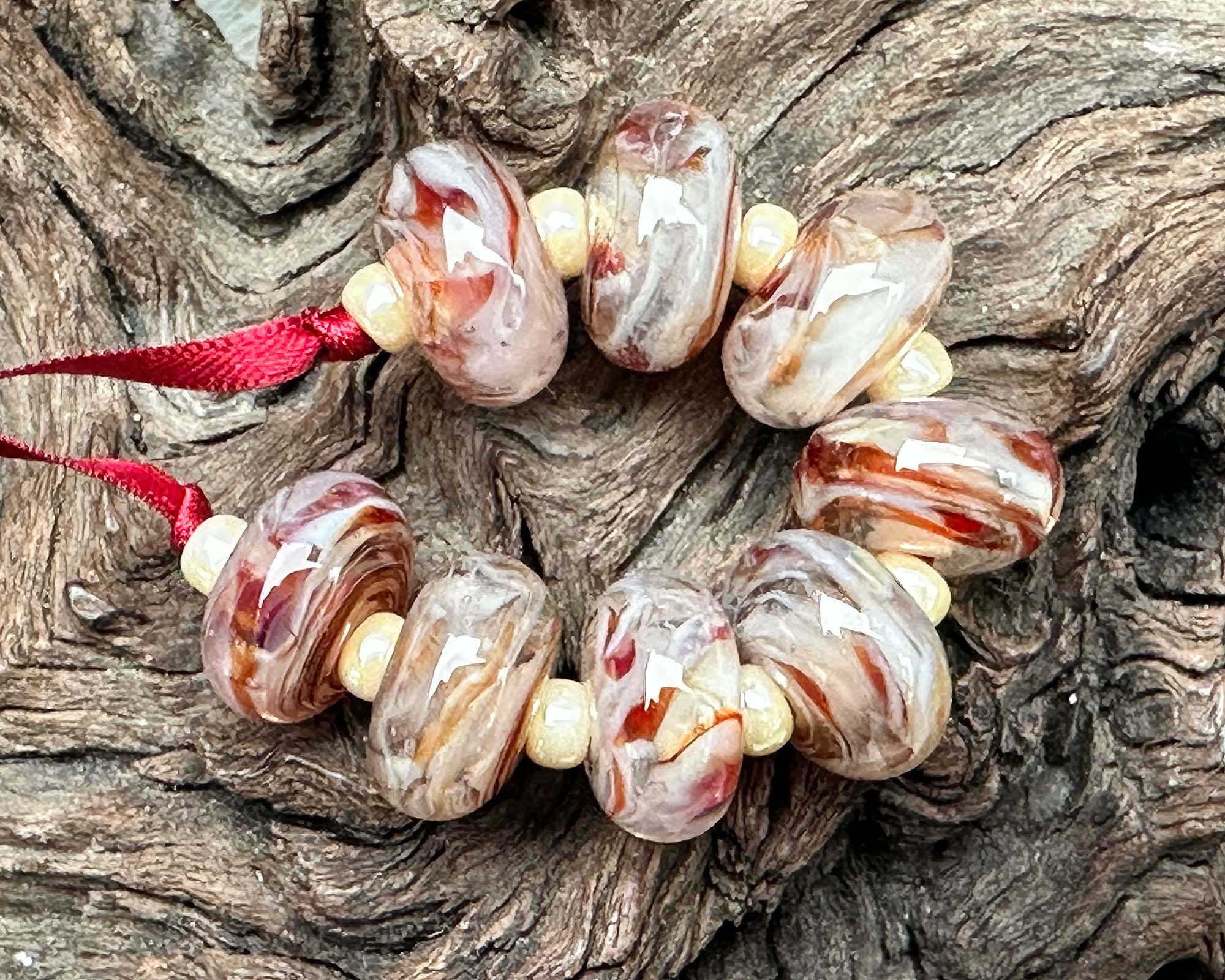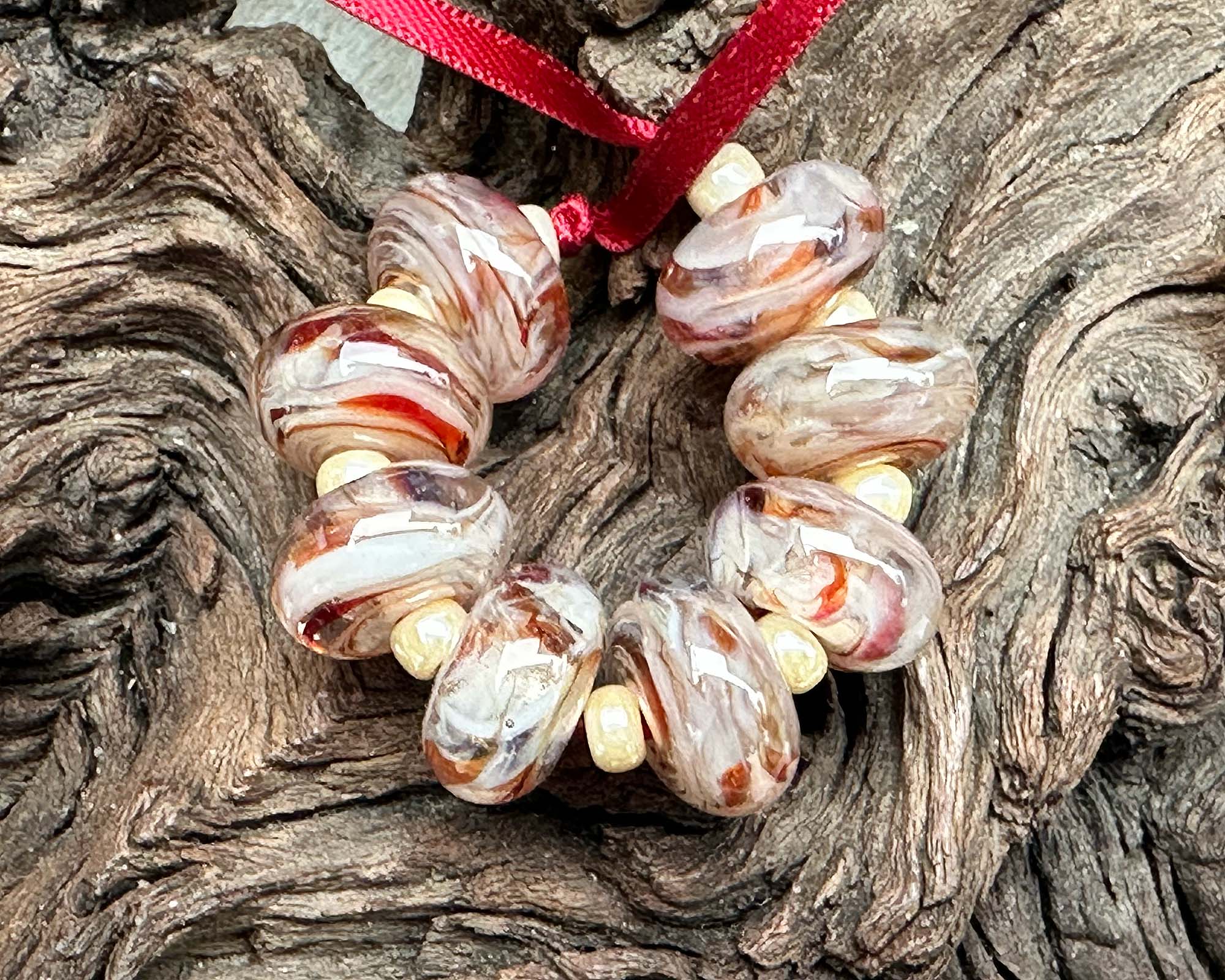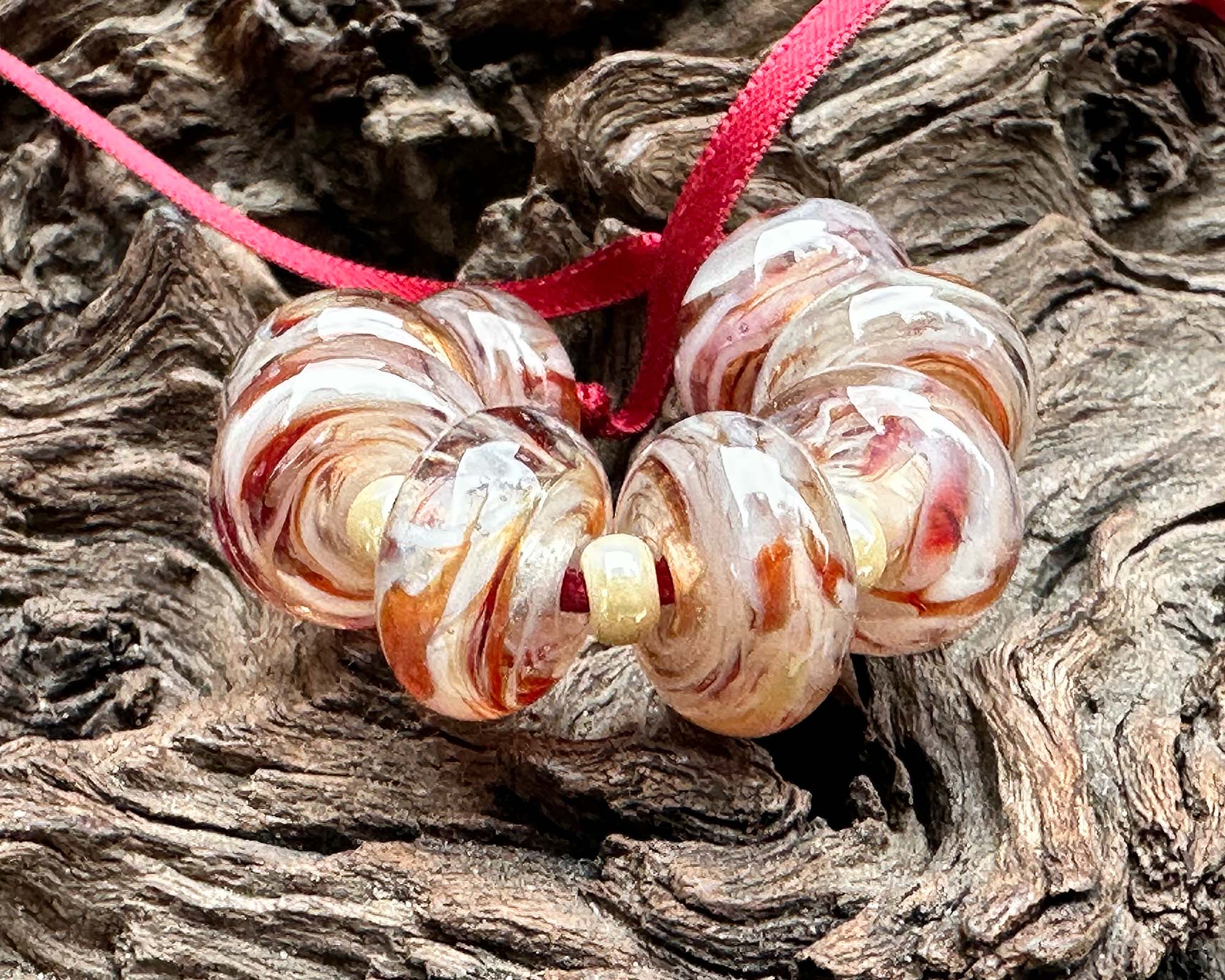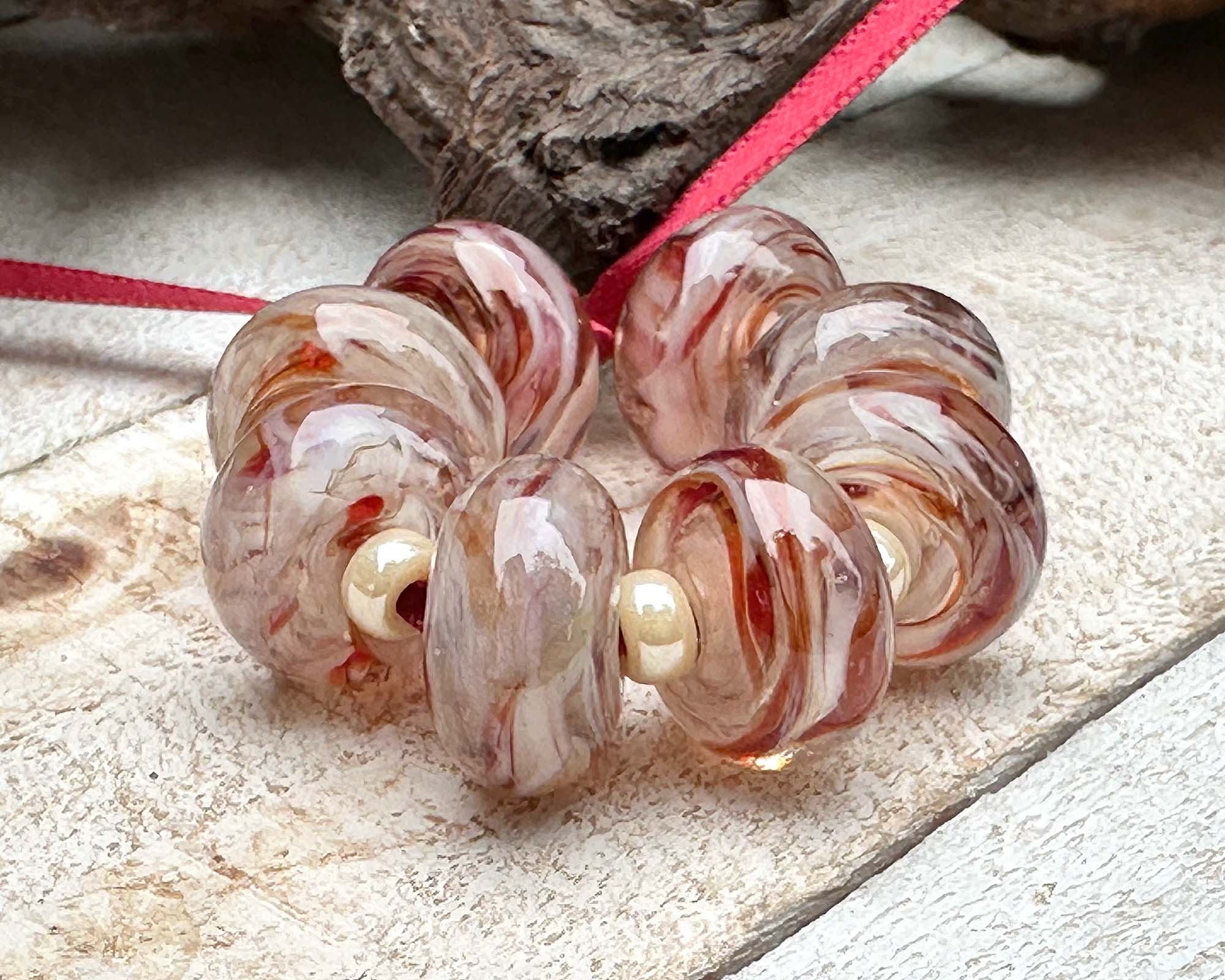 Discover the magic of handcrafted artistry with this stunning Berry Delight Swirl Lampwork Bead Set! Each of these lampwork beads have swirls of beige with strawberry red accents. Perfect for creating four pairs of show-stopping earrings or weaving into your next bracelet or necklace masterpiece. Crafted from our exclusive in-house glass blend and kiln-annealed for lasting brilliance, every bead is a one-of-a-kind treasure that brings authentic character and undeniable charm to your designs.