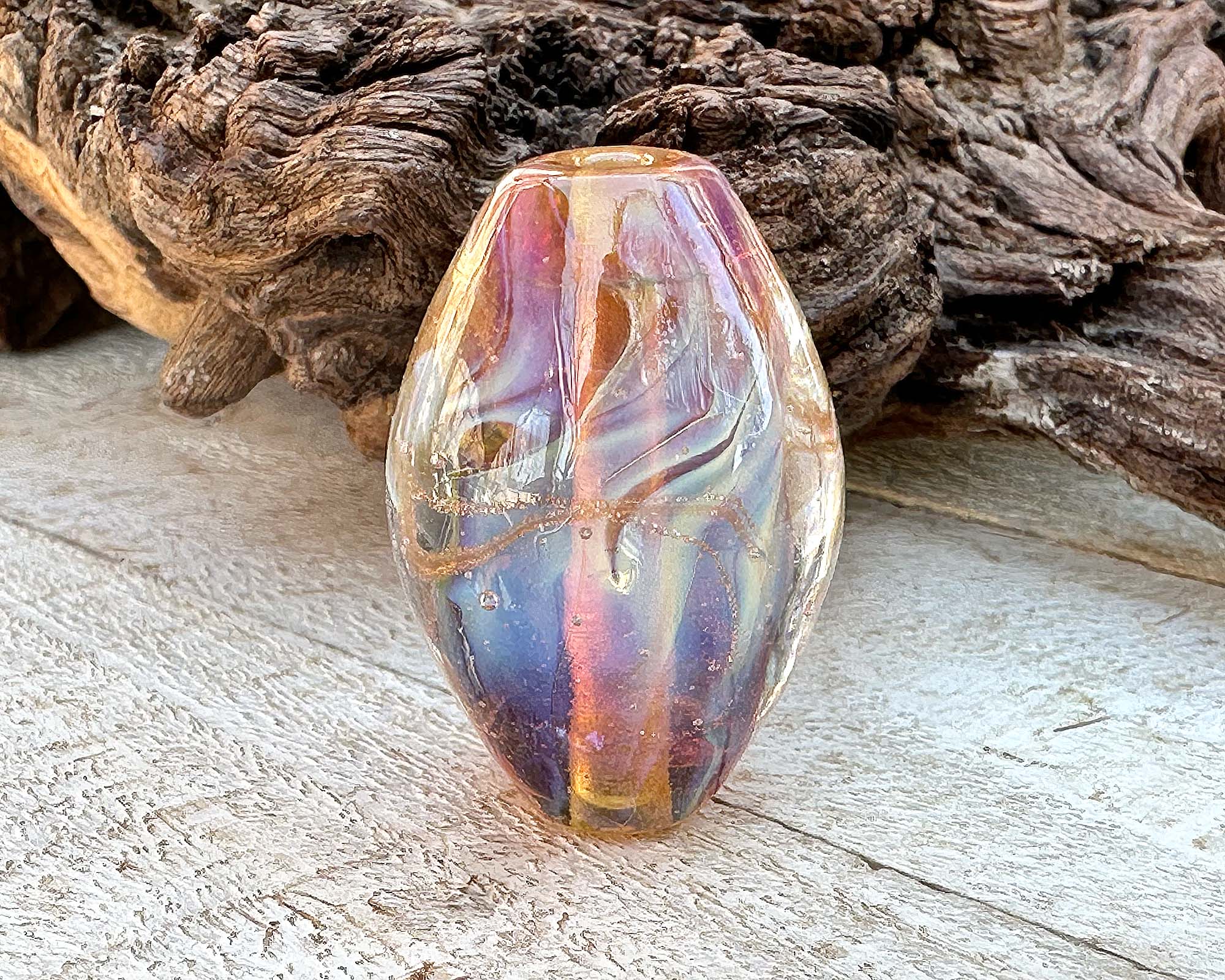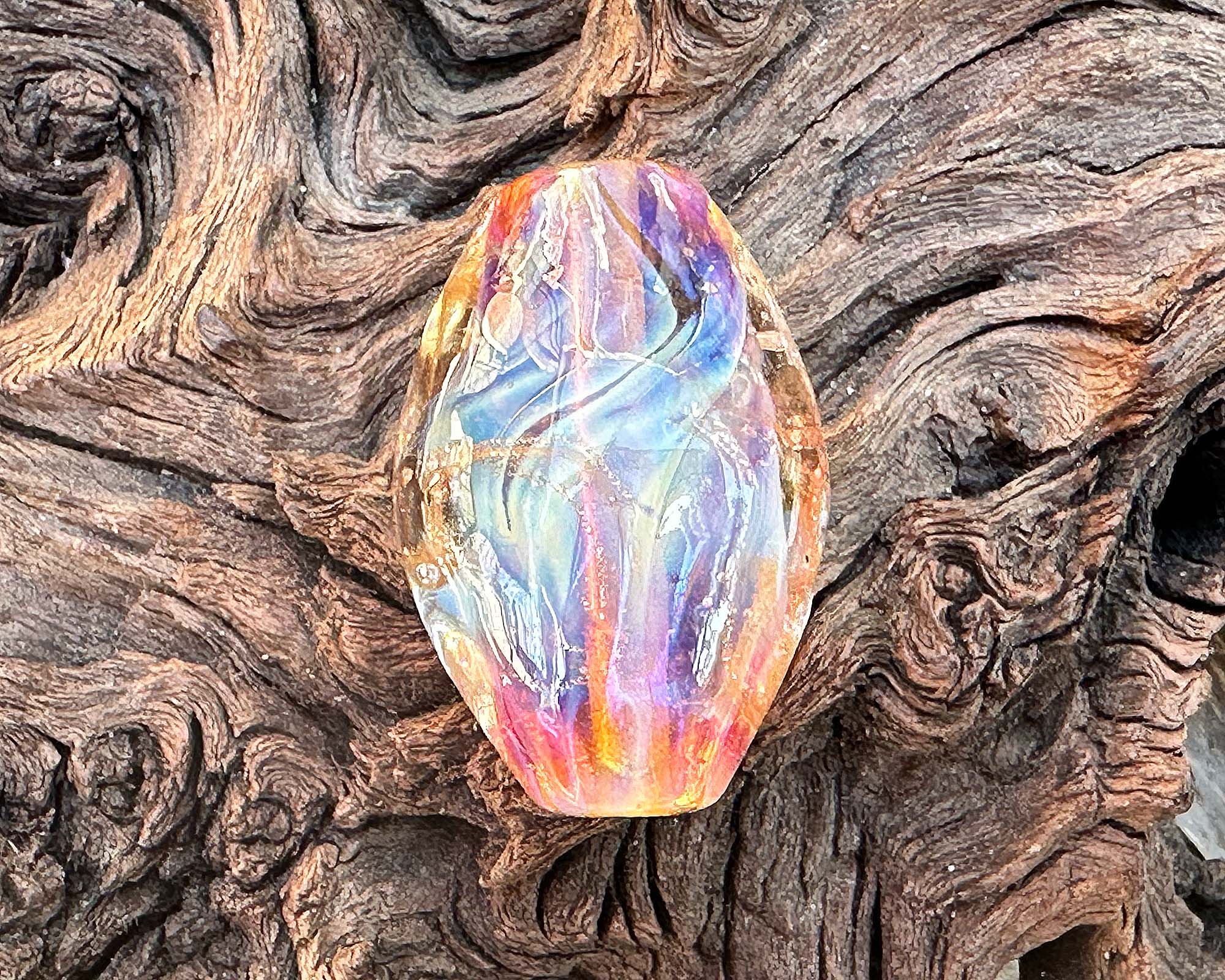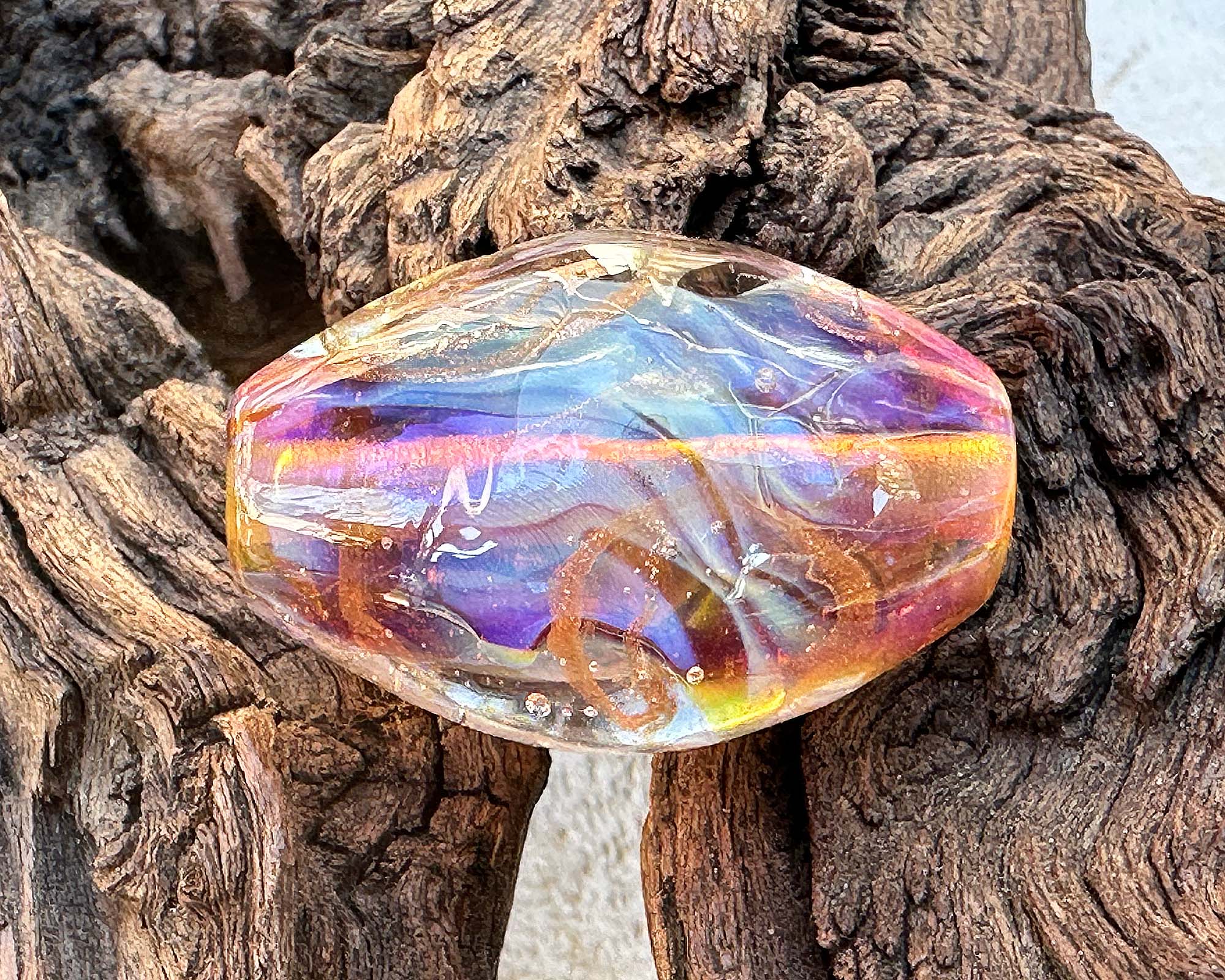 This gorgeous Ethereal Sunrise Shimmer Lampwork Focal Bead was made in my studio with soft glass and properly annealed in a digital kiln for strength and durability. These pictures were taken outside in indirect light. This bead may appear different on some monitors or devices.