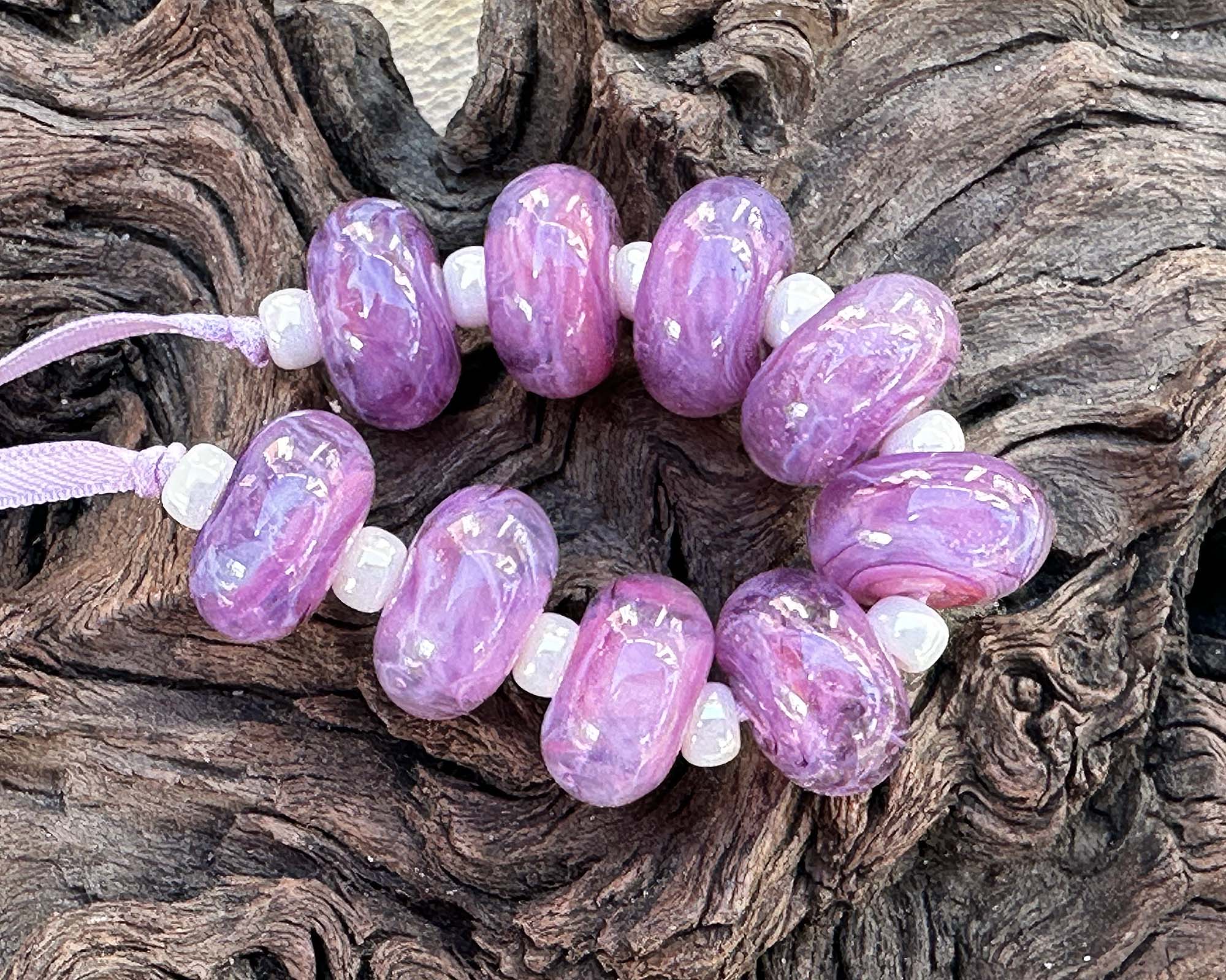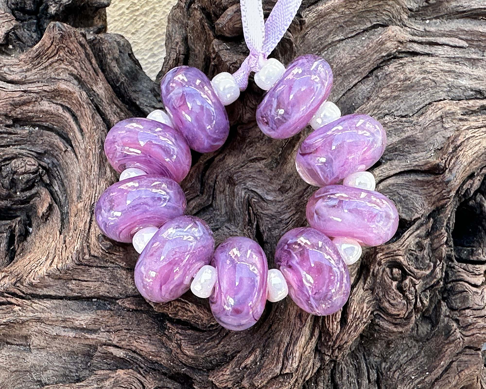 9 Aura Purple Swirl Lampwork Beads Mix SRA