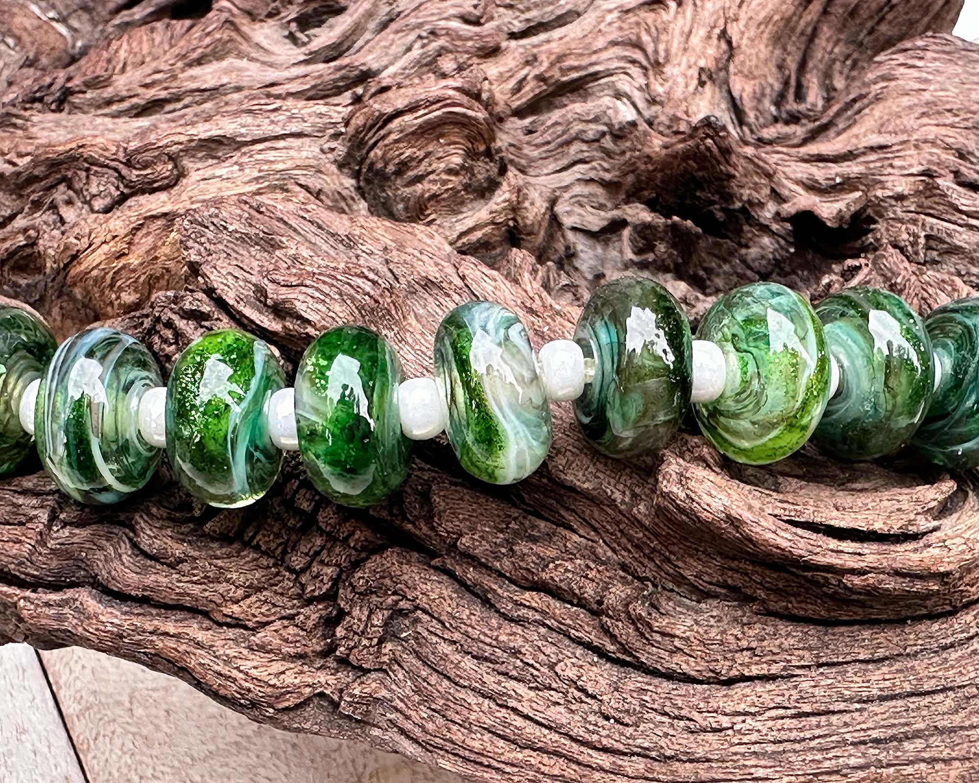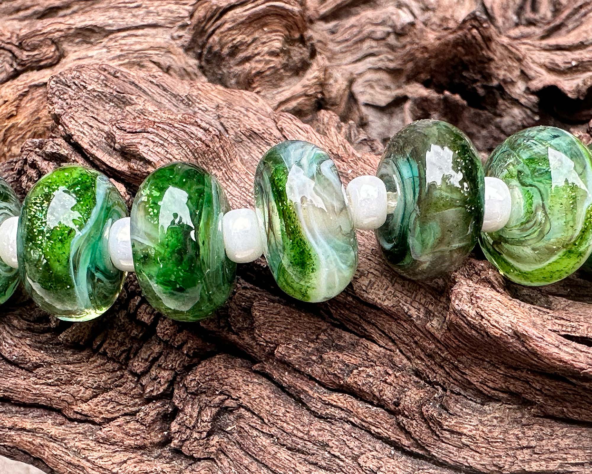 Stunning Emerald Shimmer Swirl Lampwork Beads Collection