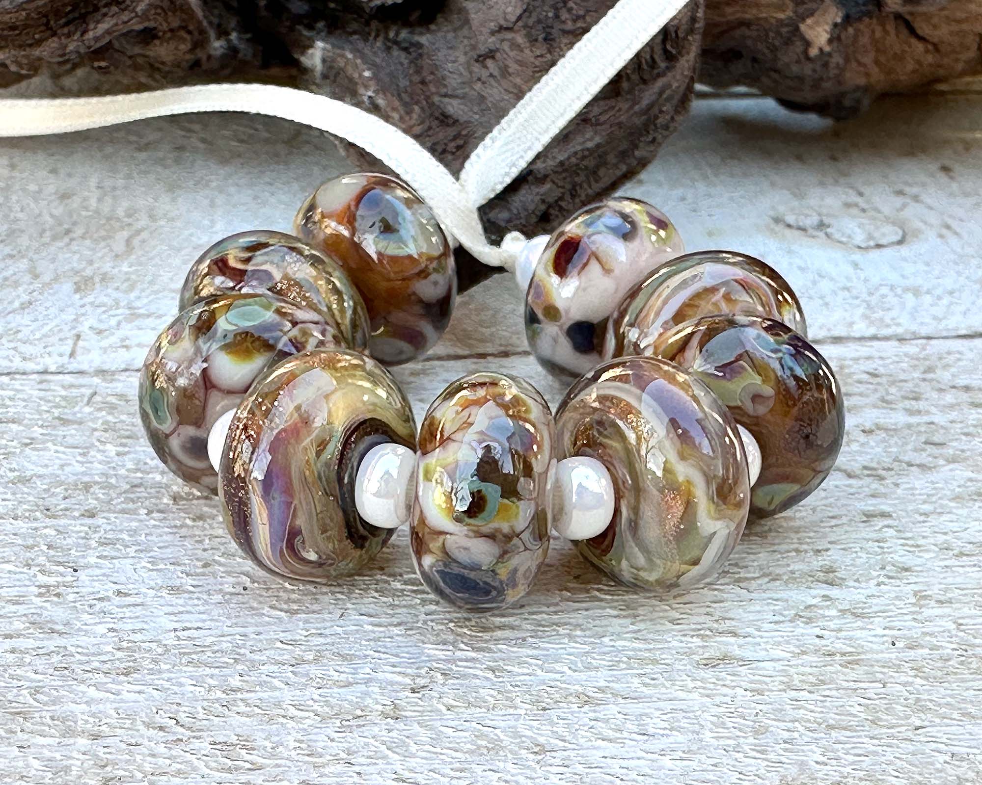 9 Granite Glow Shimmer Lampwork Beads Set SRA
