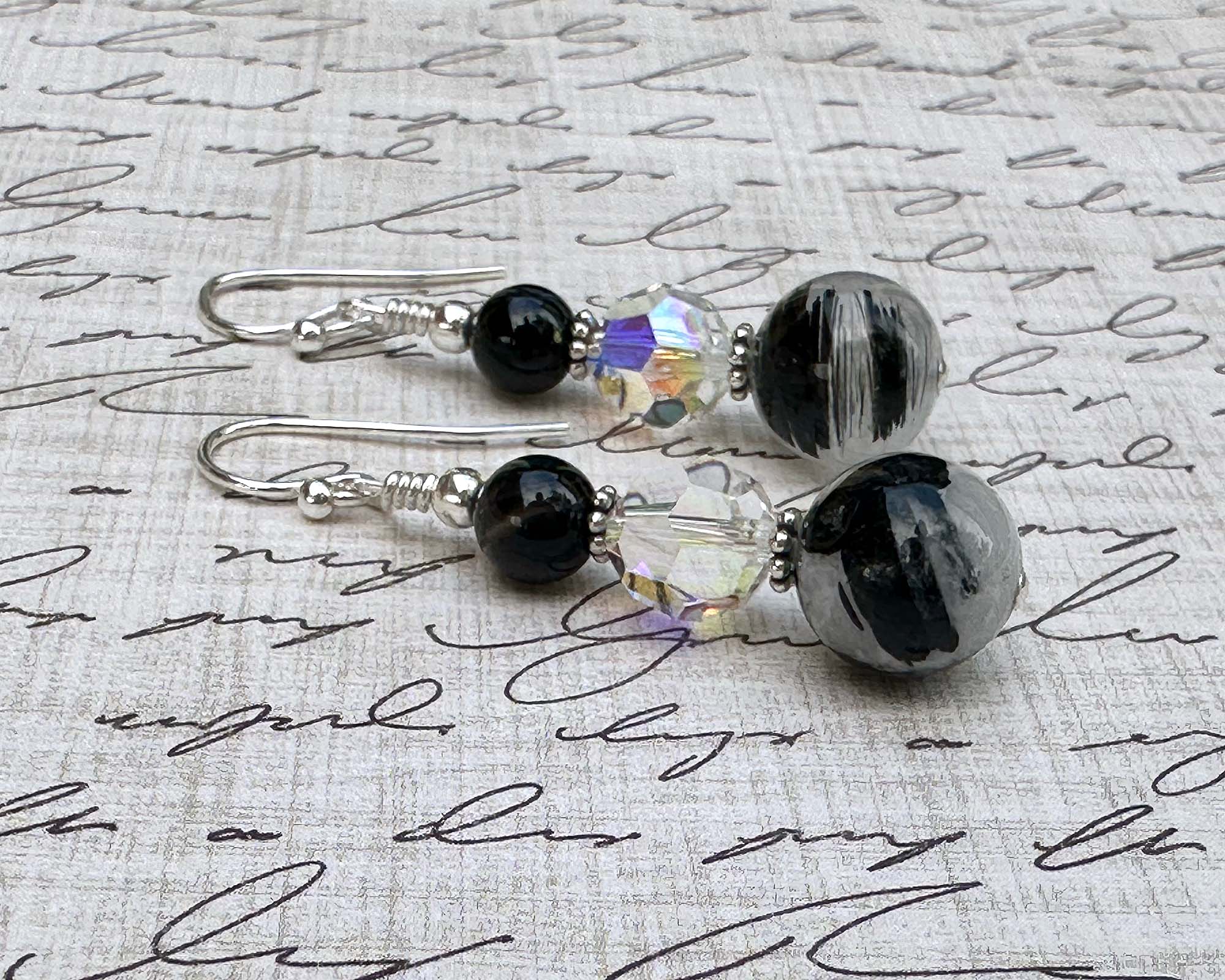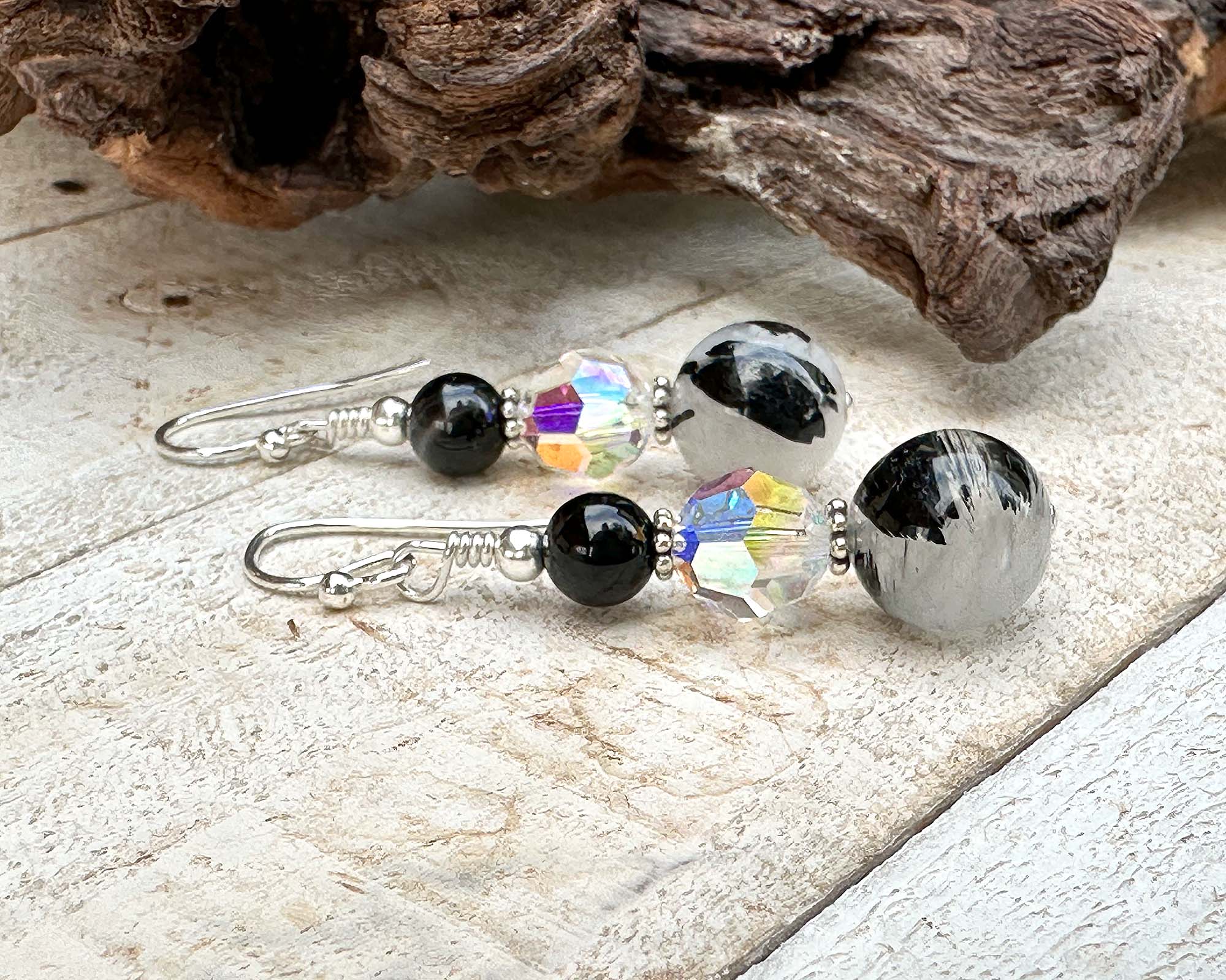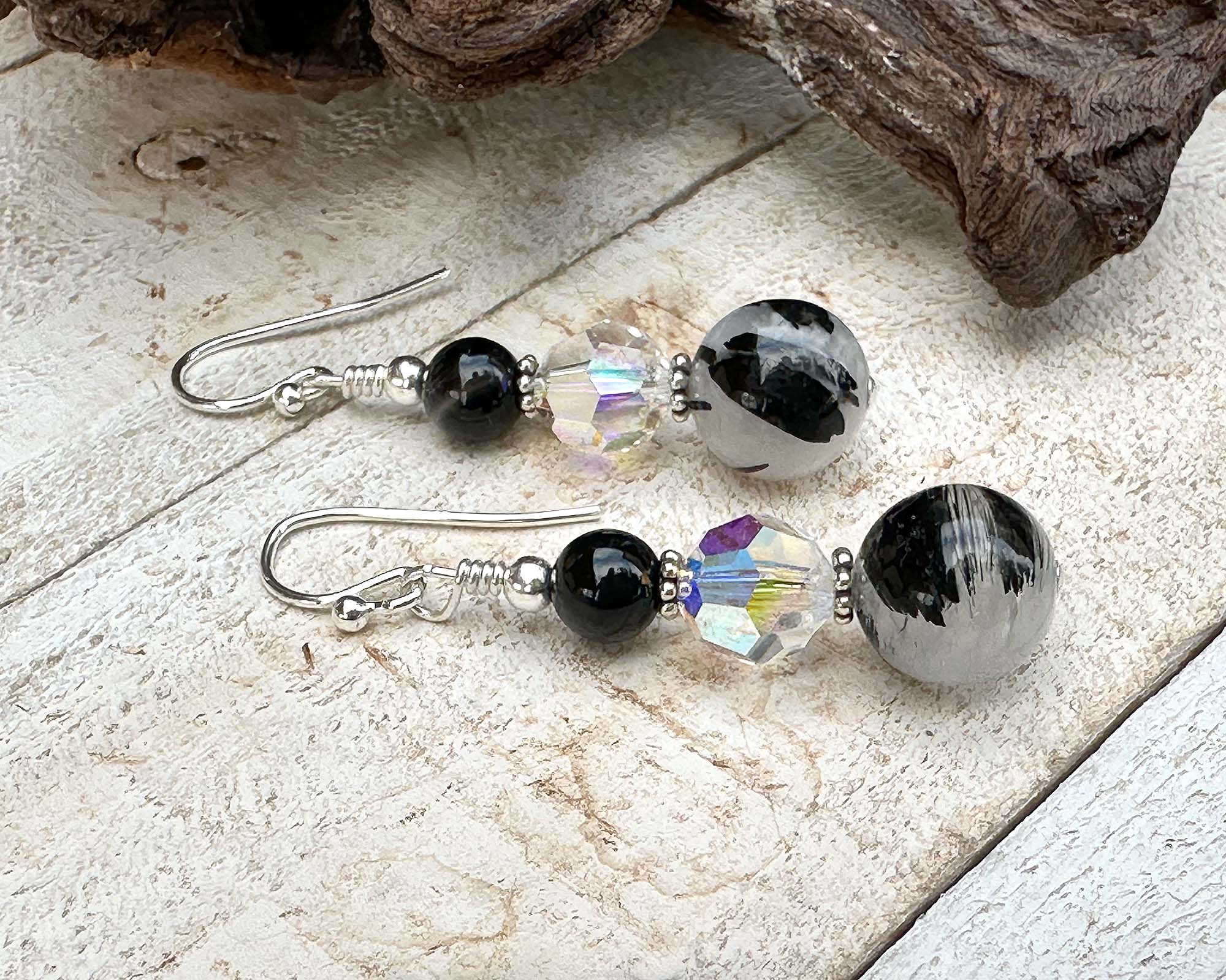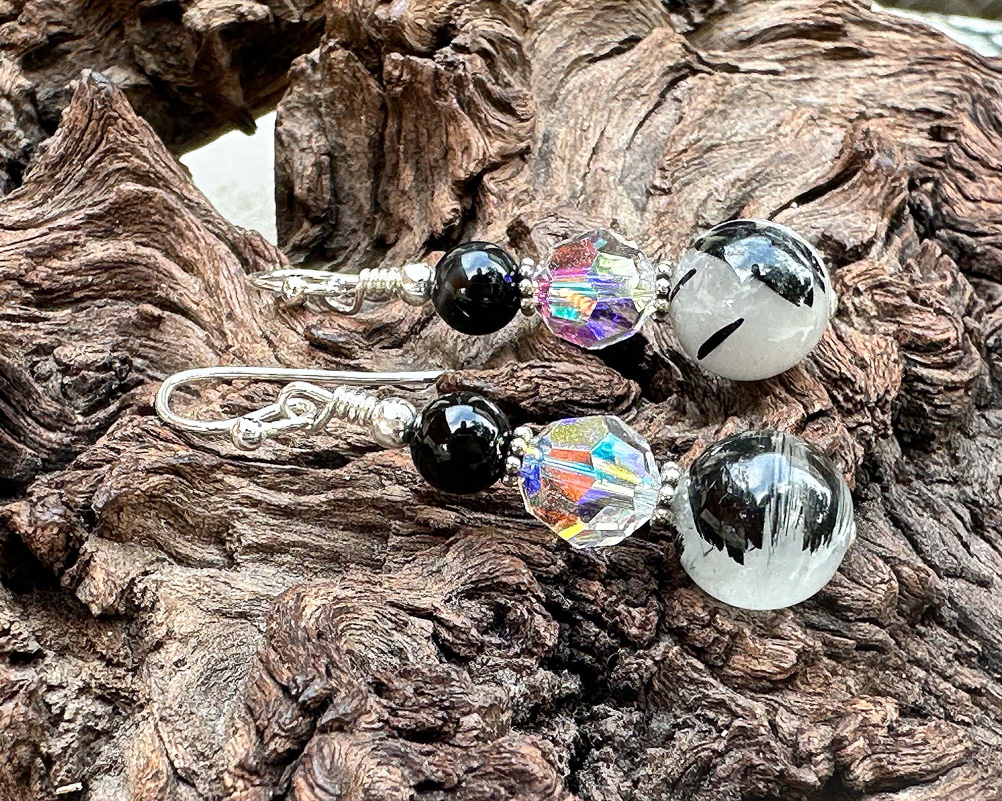 Get ready to shine with these absolutely delightful handcrafted beaded earrings! These earrings showcase a playful mix of lustrous black quartz, sophisticated onyx, and dazzling faceted crystals that sparkle with every move. The premium combination of Bali .925 silver and sterling silver findings ensures these beauties are built to last while looking effortlessly elegant. At a perfect 2-inch length, they're the ideal accessory for adding personality and pizzazz to any outfit. When you wear these gemstone stunners, you're not just accessorizing—you're celebrating artisan craftsmanship and one-of-a-kind style!