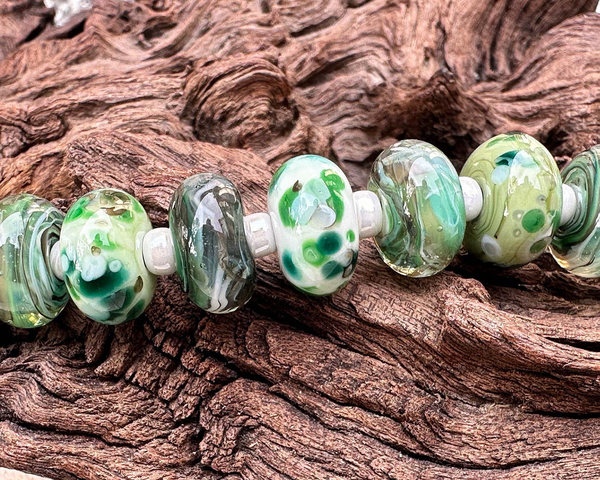 Create a sense of elegance with our Mystic Grove Green frit blend, featuring a beautiful mix of green, dark green, pale green, and cream colors!