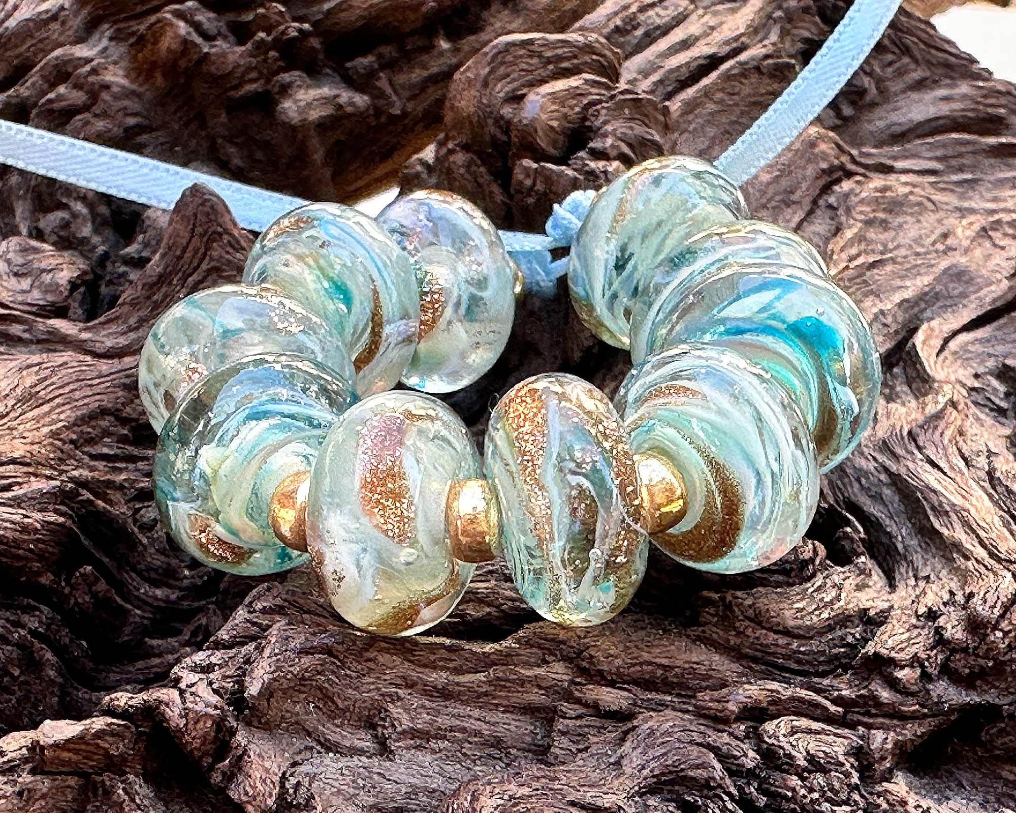 10 Aqua Sparkle Swirl Lampwork Beads Set SRA
