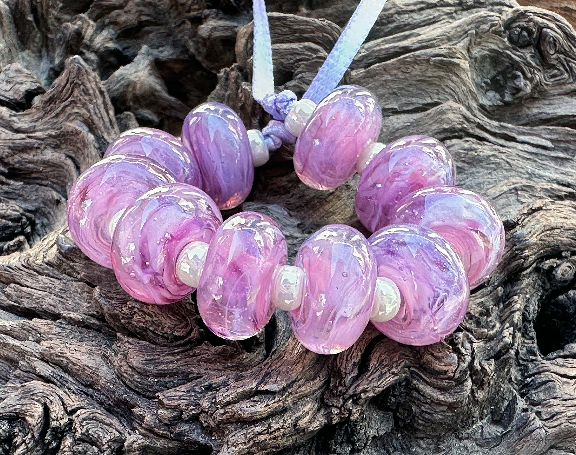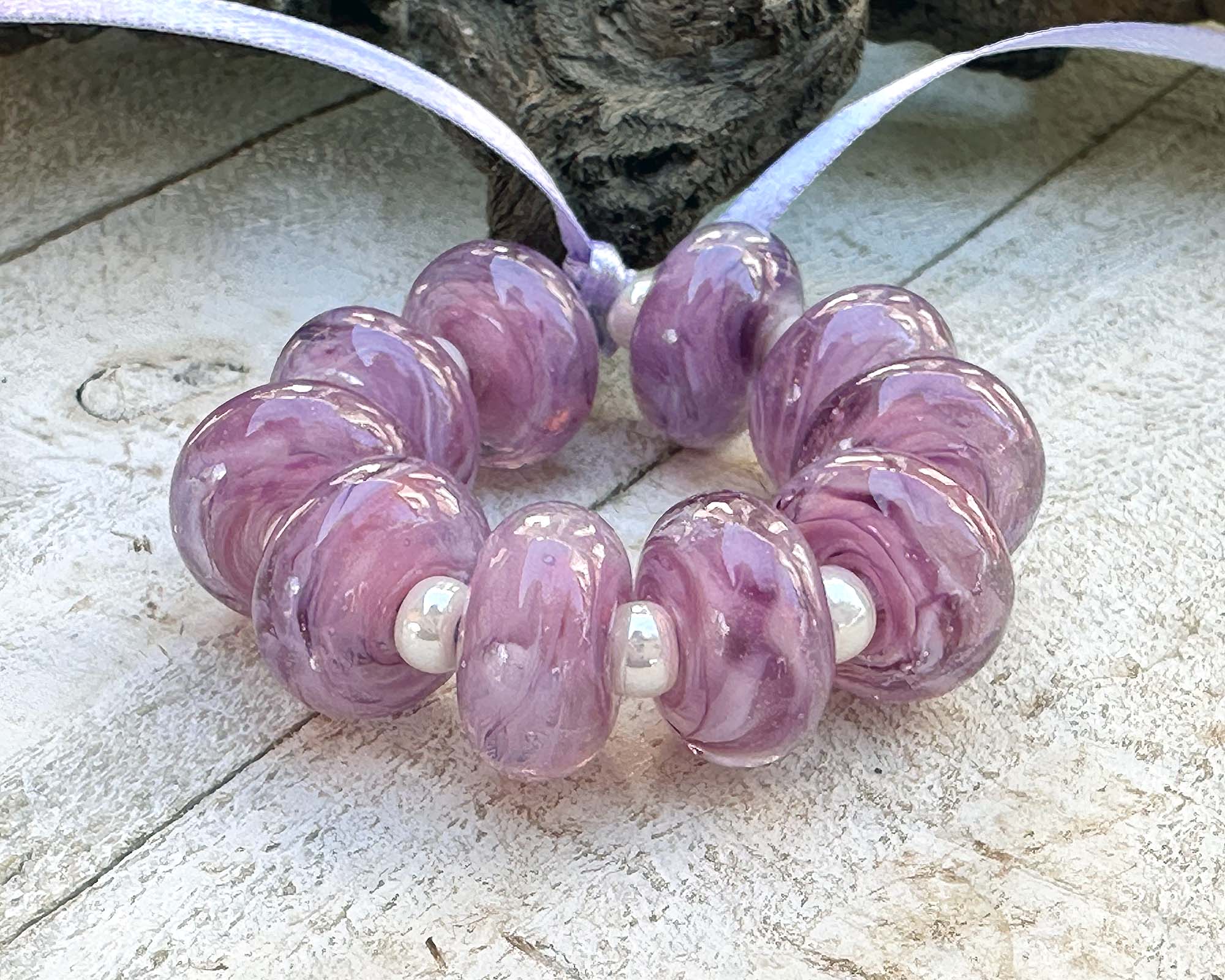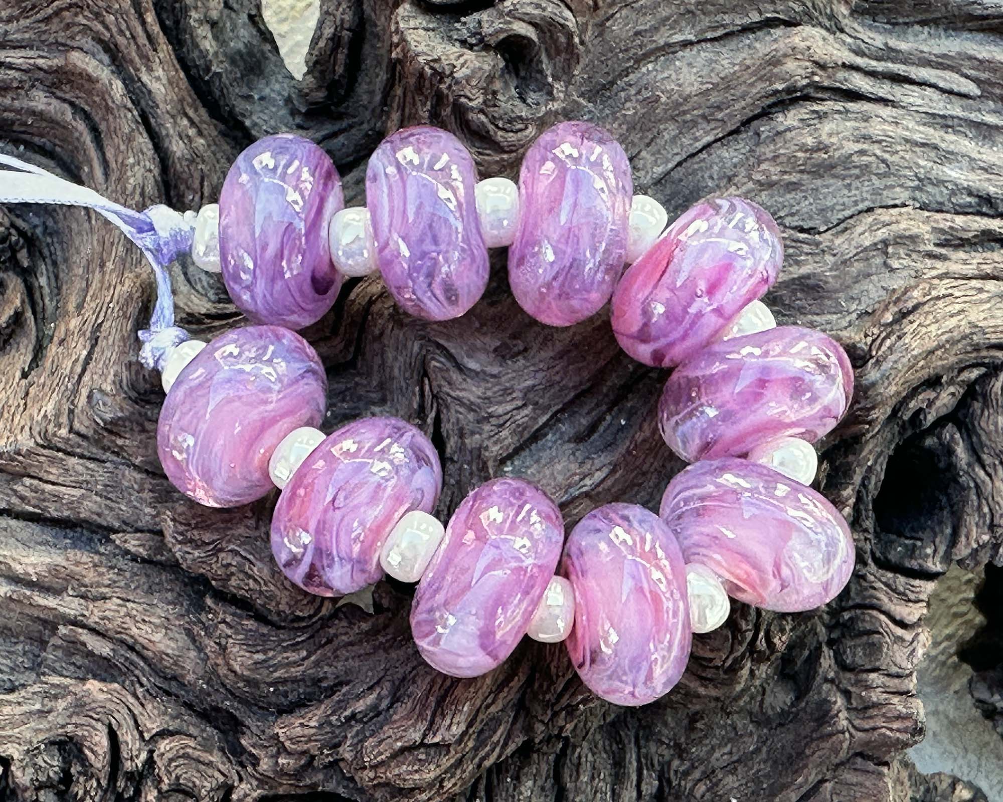 10 Aura Soft Violet Swirl Lampwork Beads Mix SRA