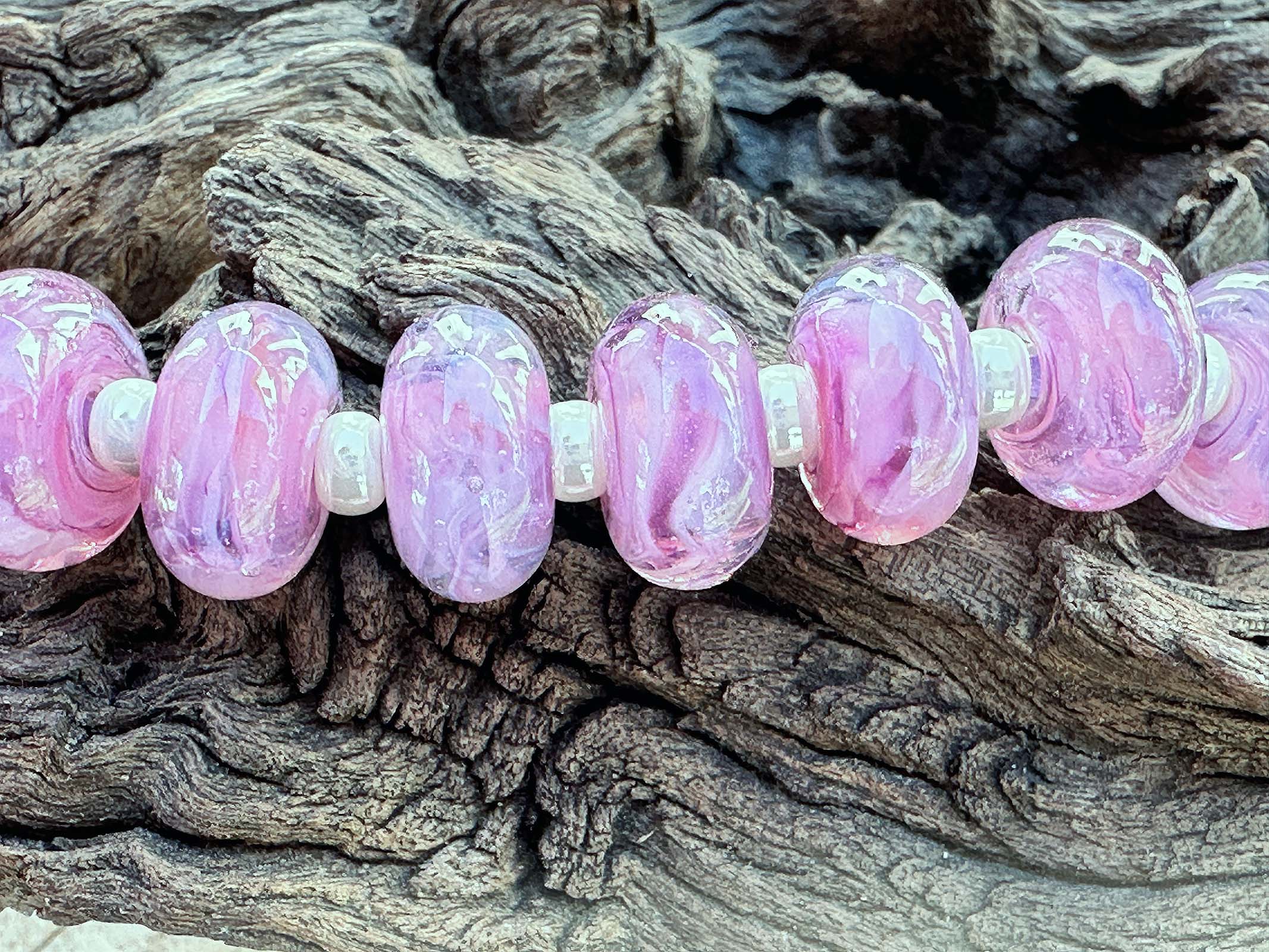 Elevate your beading collection with these 10 Aura Soft Violet Swirl lampwork beads—artisan treasures that radiate creative energy! Swirling with mesmerizing blends of bold pink and milky lavender throughout semi-transparent glass, each bead is a miniature work of art. Ideal for designing stunning earrings, dynamic necklaces, or striking bracelets, these handcrafted gems infuse your projects with instant visual impact and charm. Built to last with professional kiln annealing, they're primed to bring your most imaginative jewelry ideas to life!