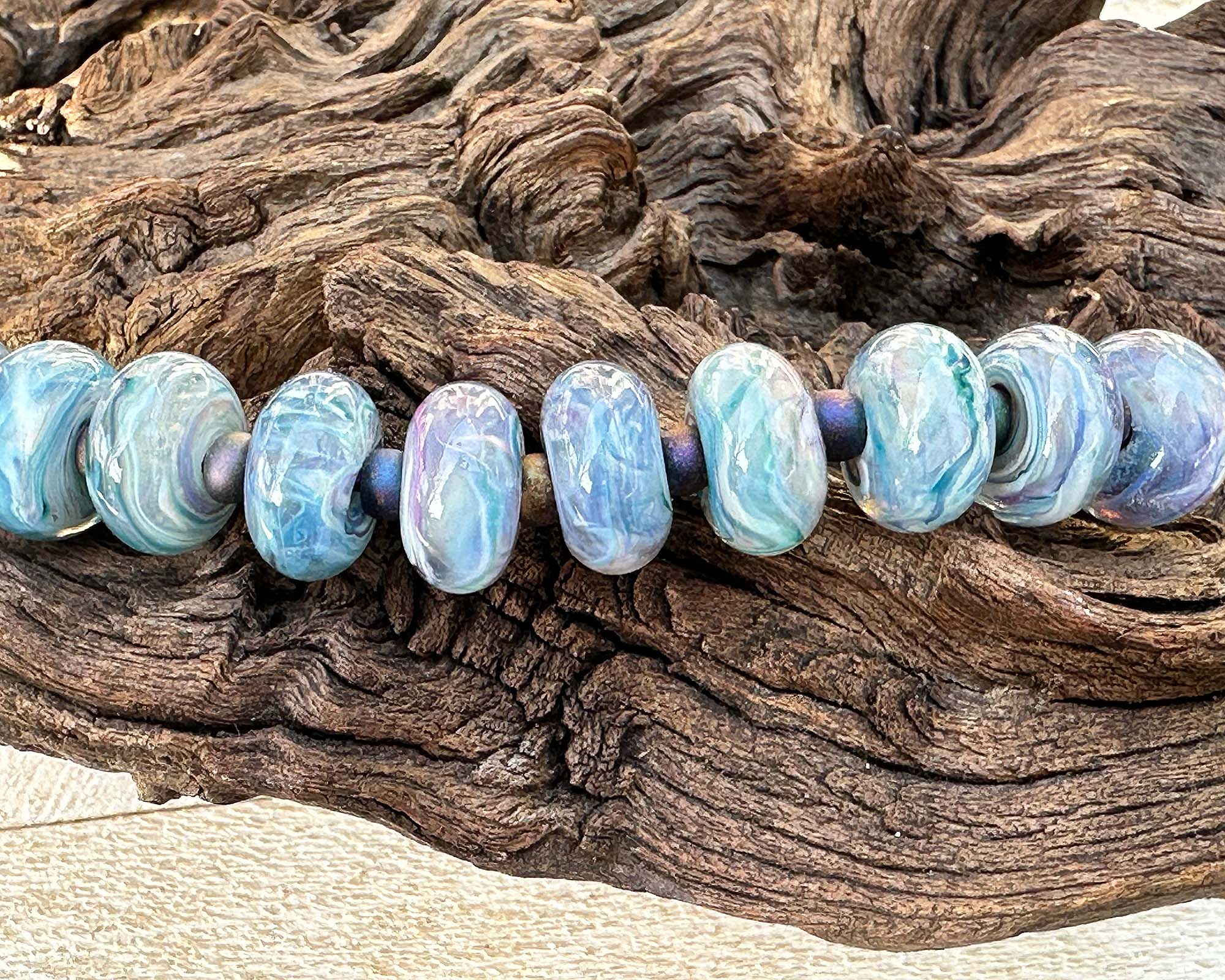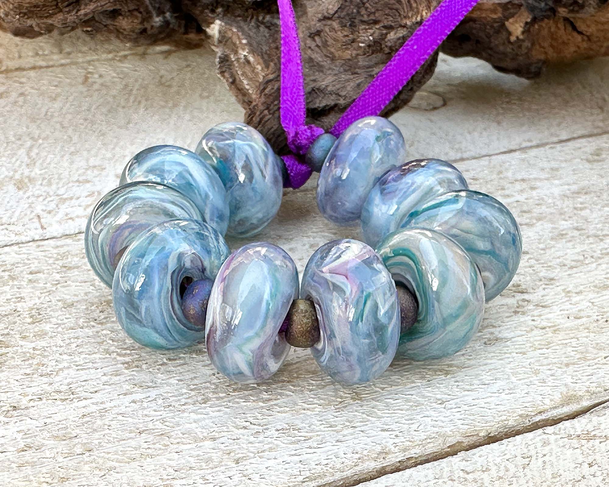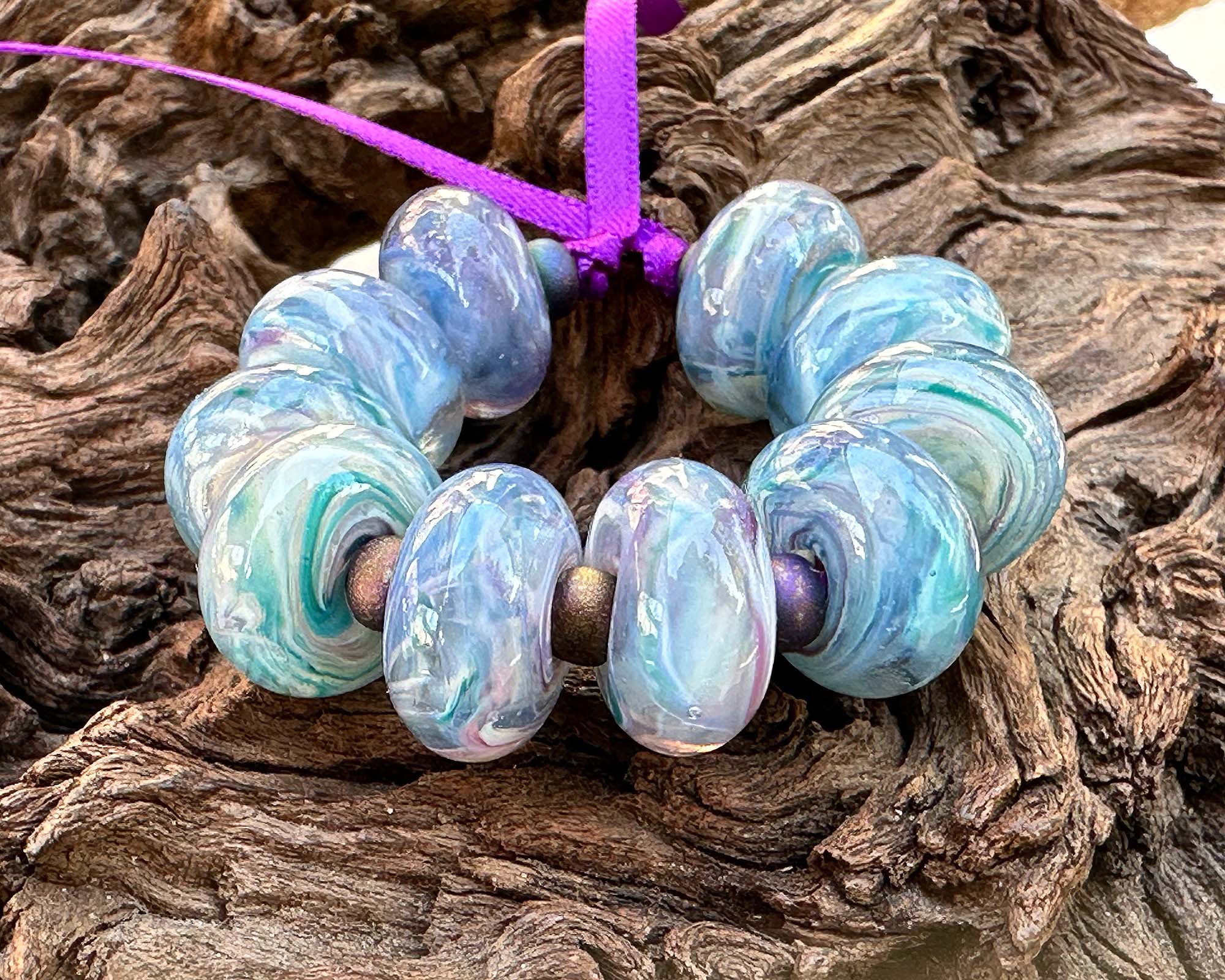 10 Dreamers Blue Swirls Lampwork Beads Set SRA