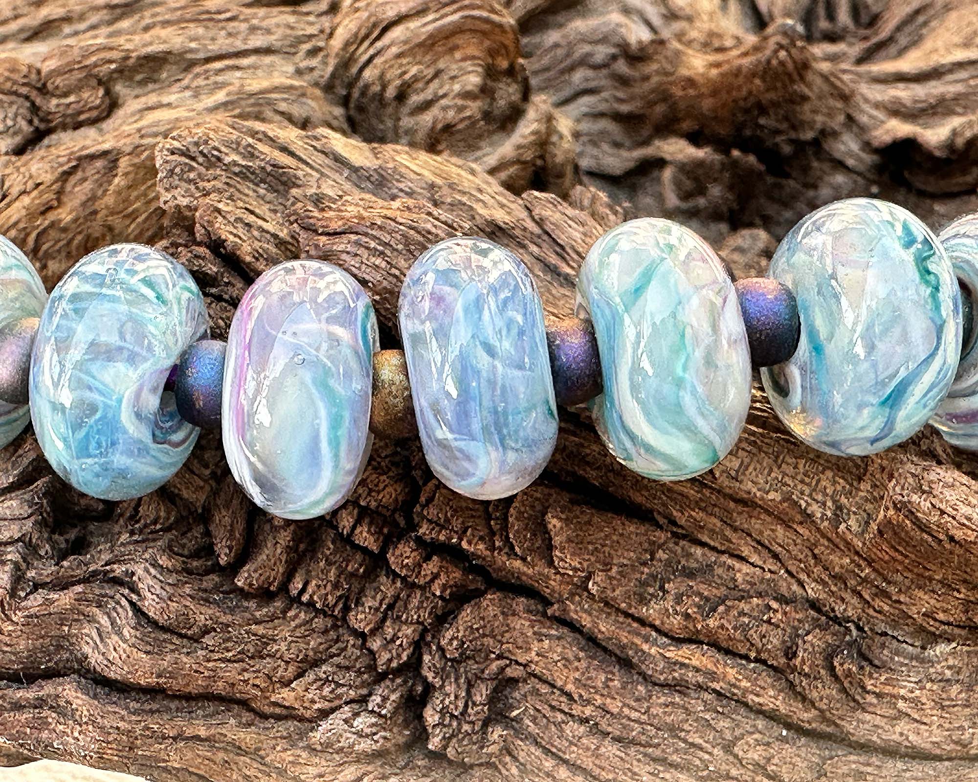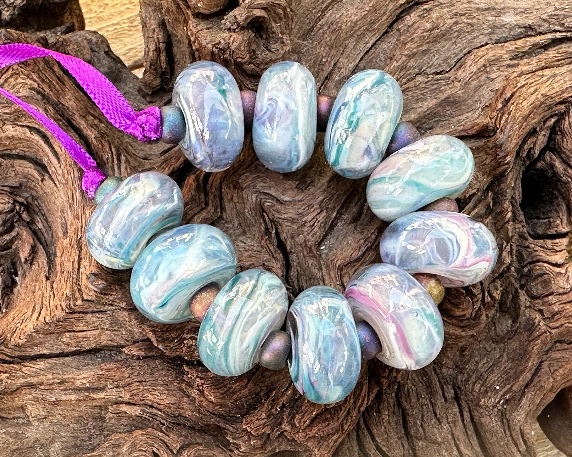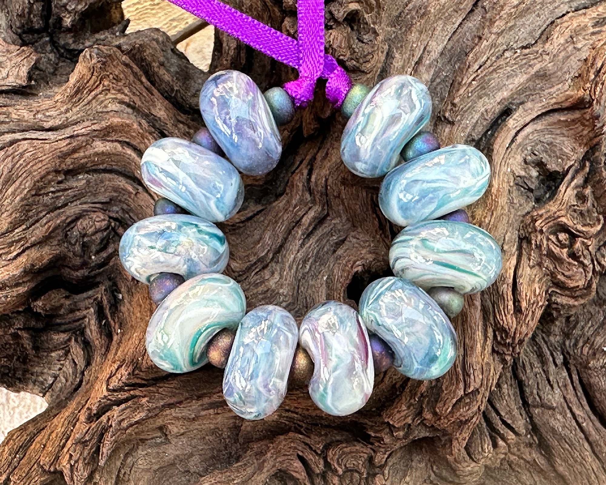10 Dreamers Blue Swirls Lampwork Beads Set SRA