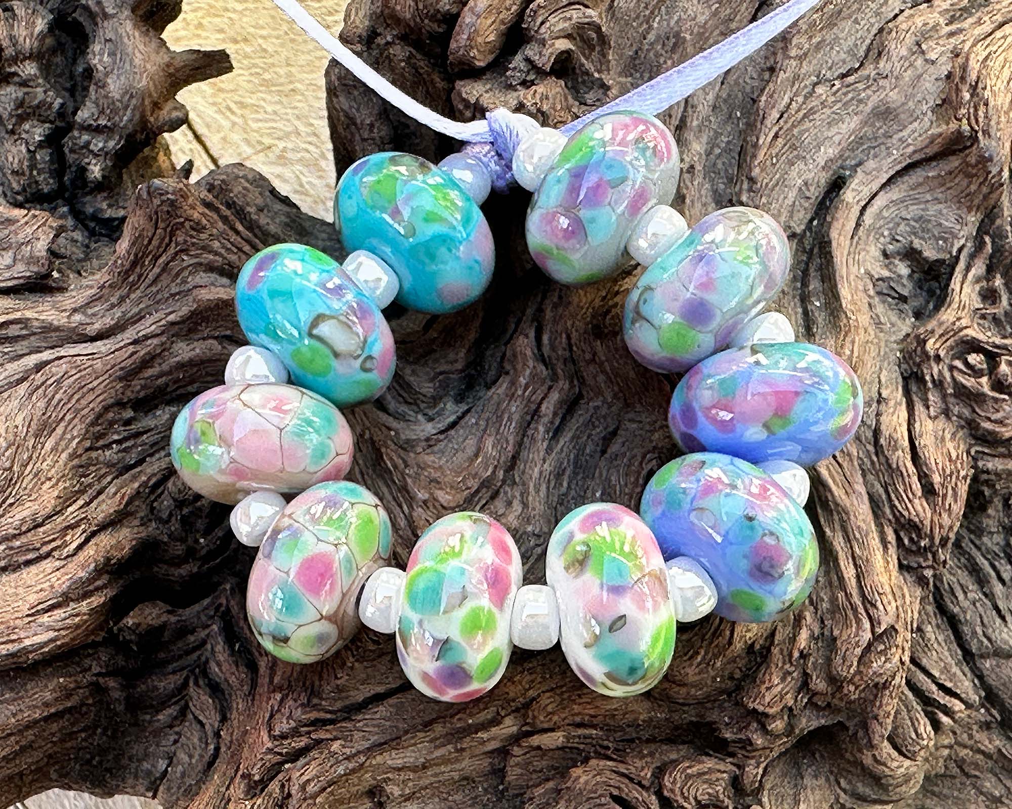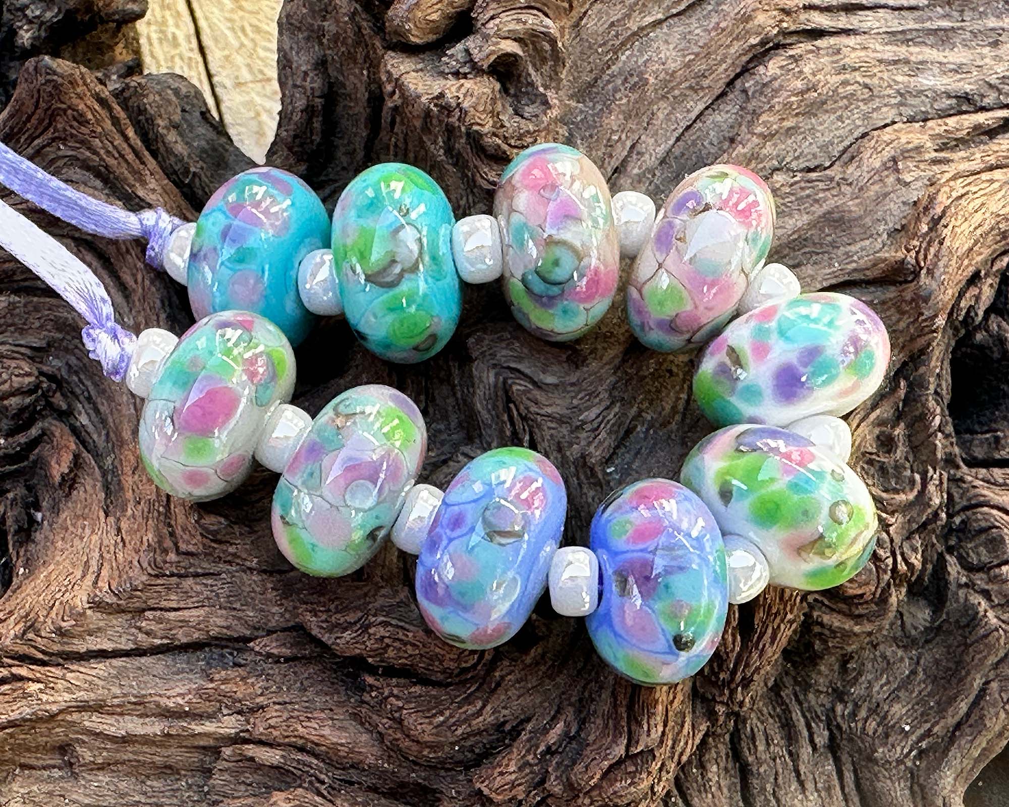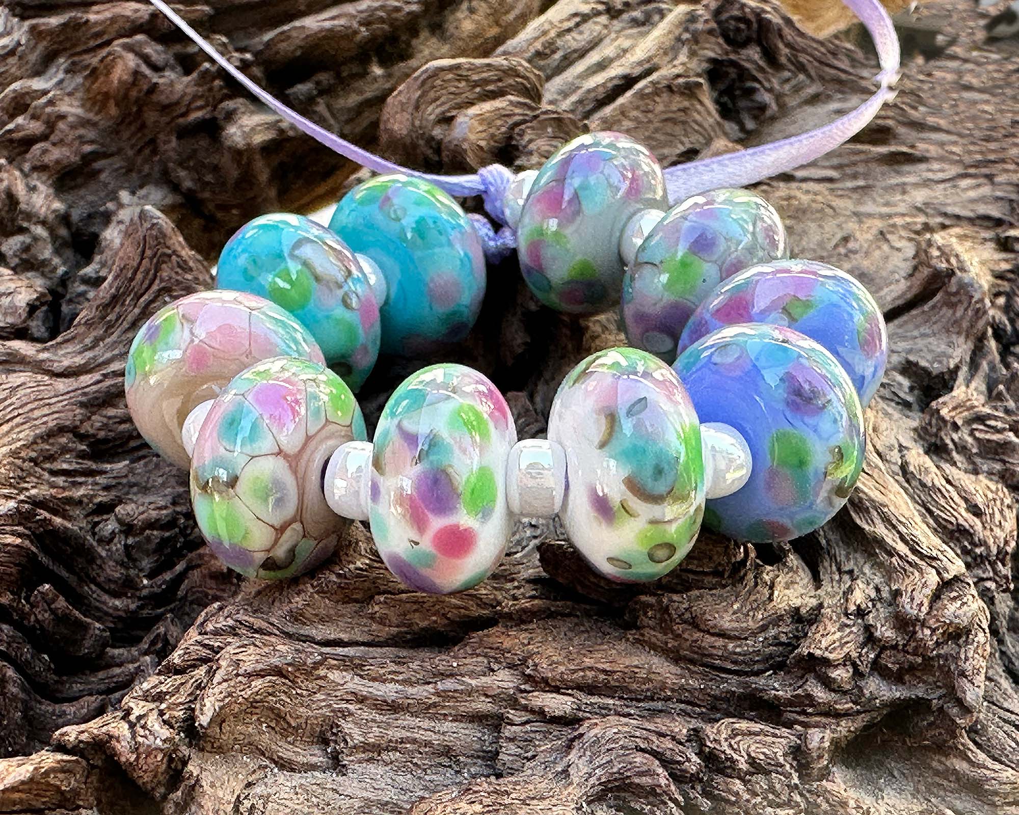 10 Hydrangea Gardens Mosaic Lampwork Beads Set SRA