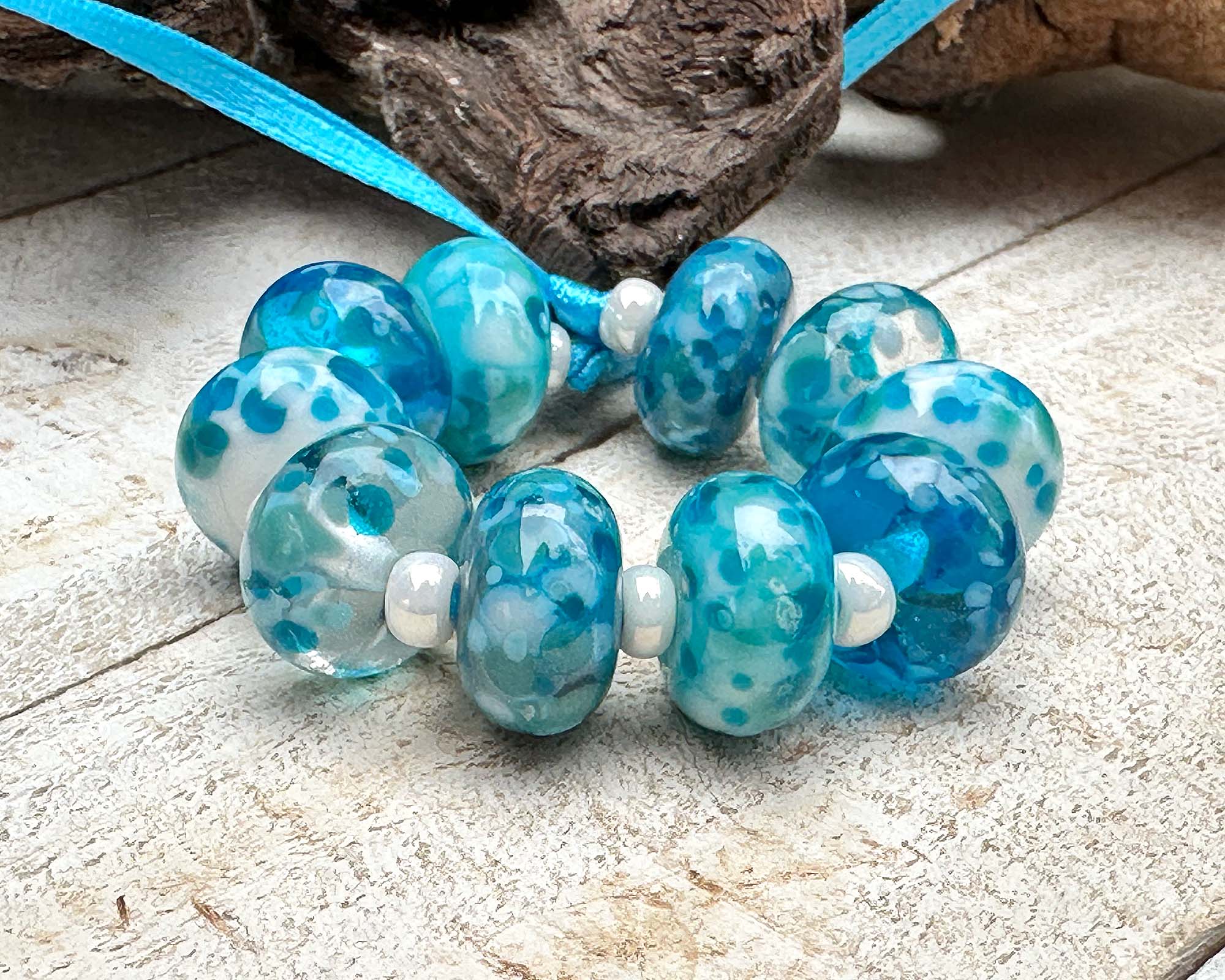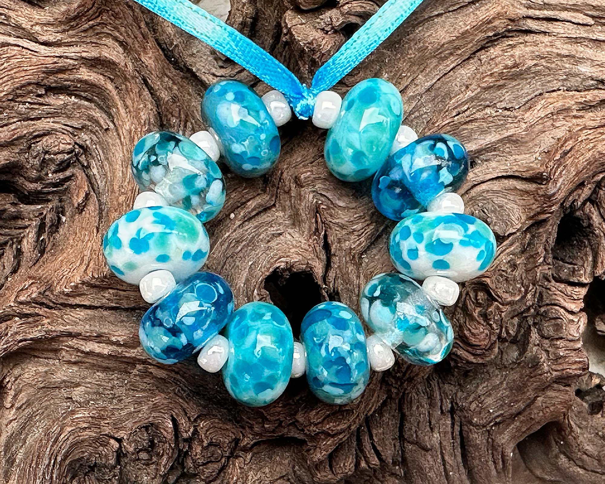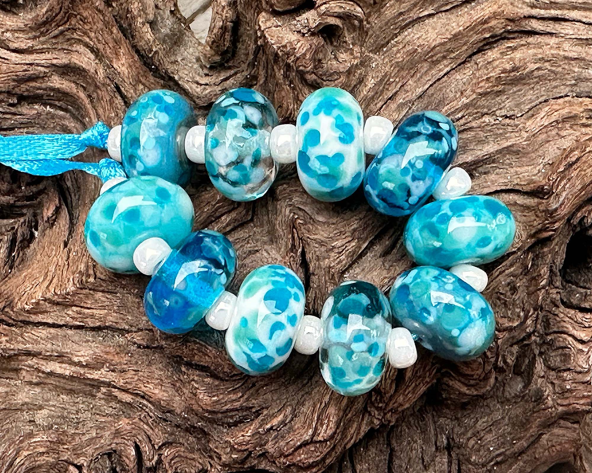 10 Ocean Blue Mosaic Lampwork Beads Set SRA