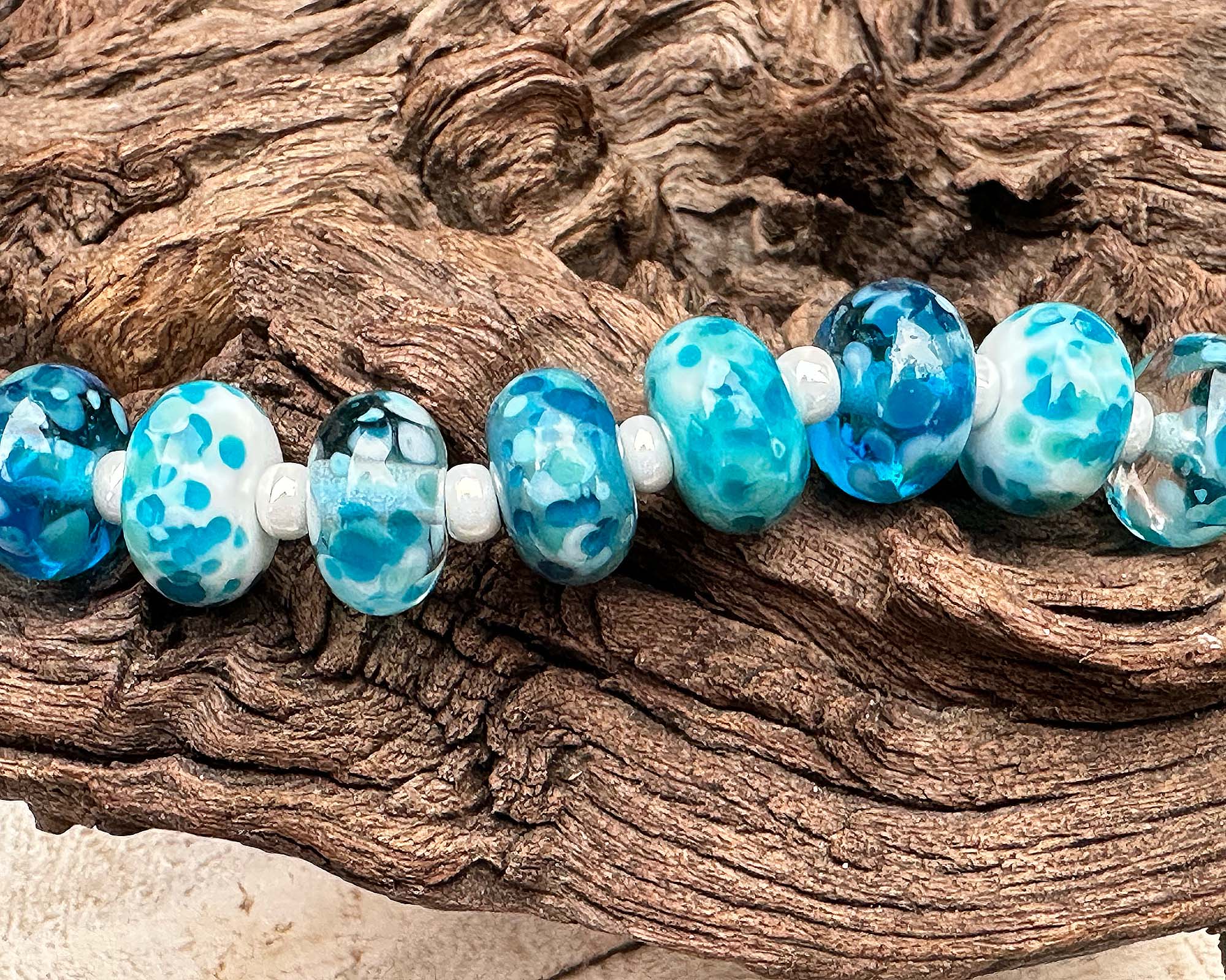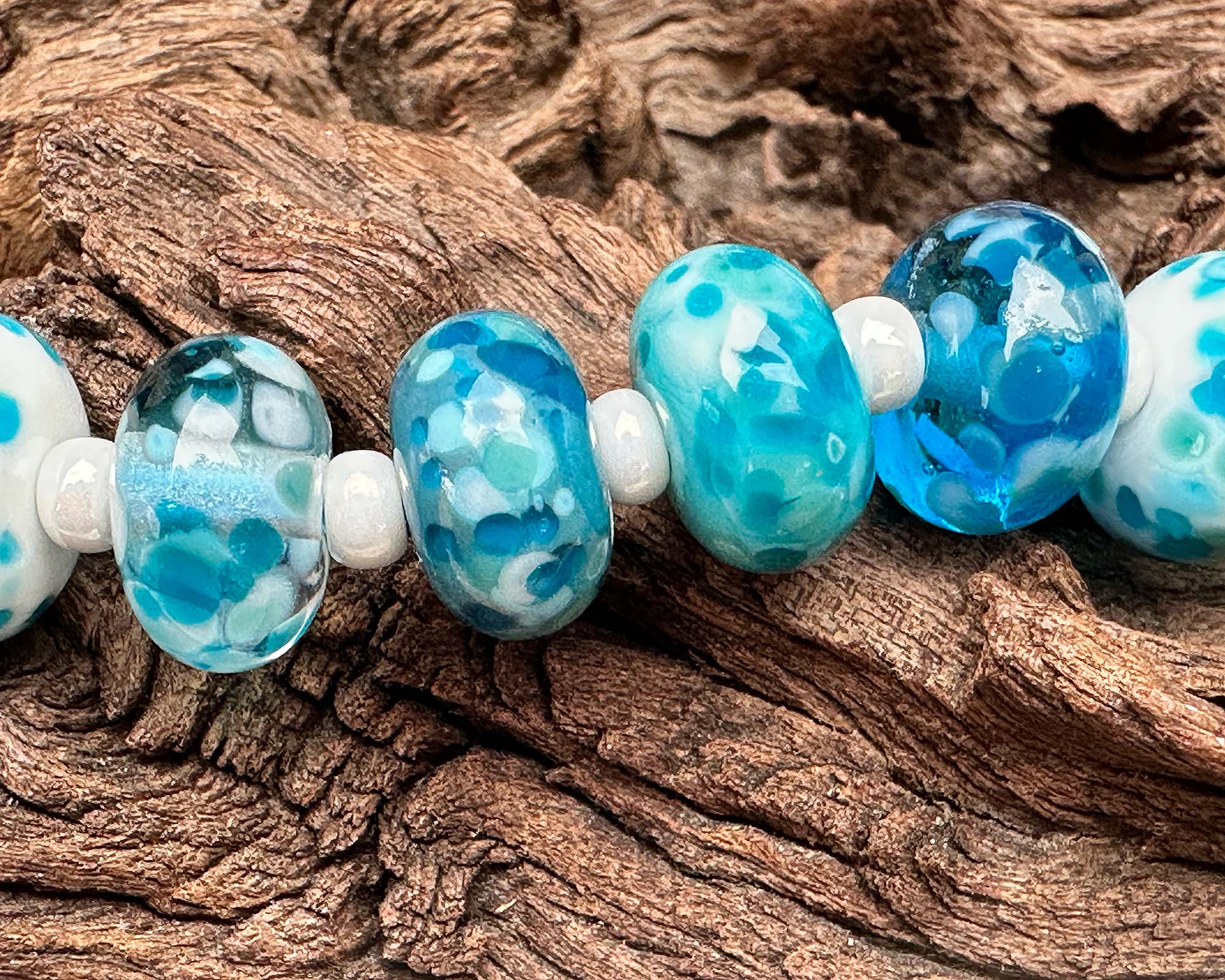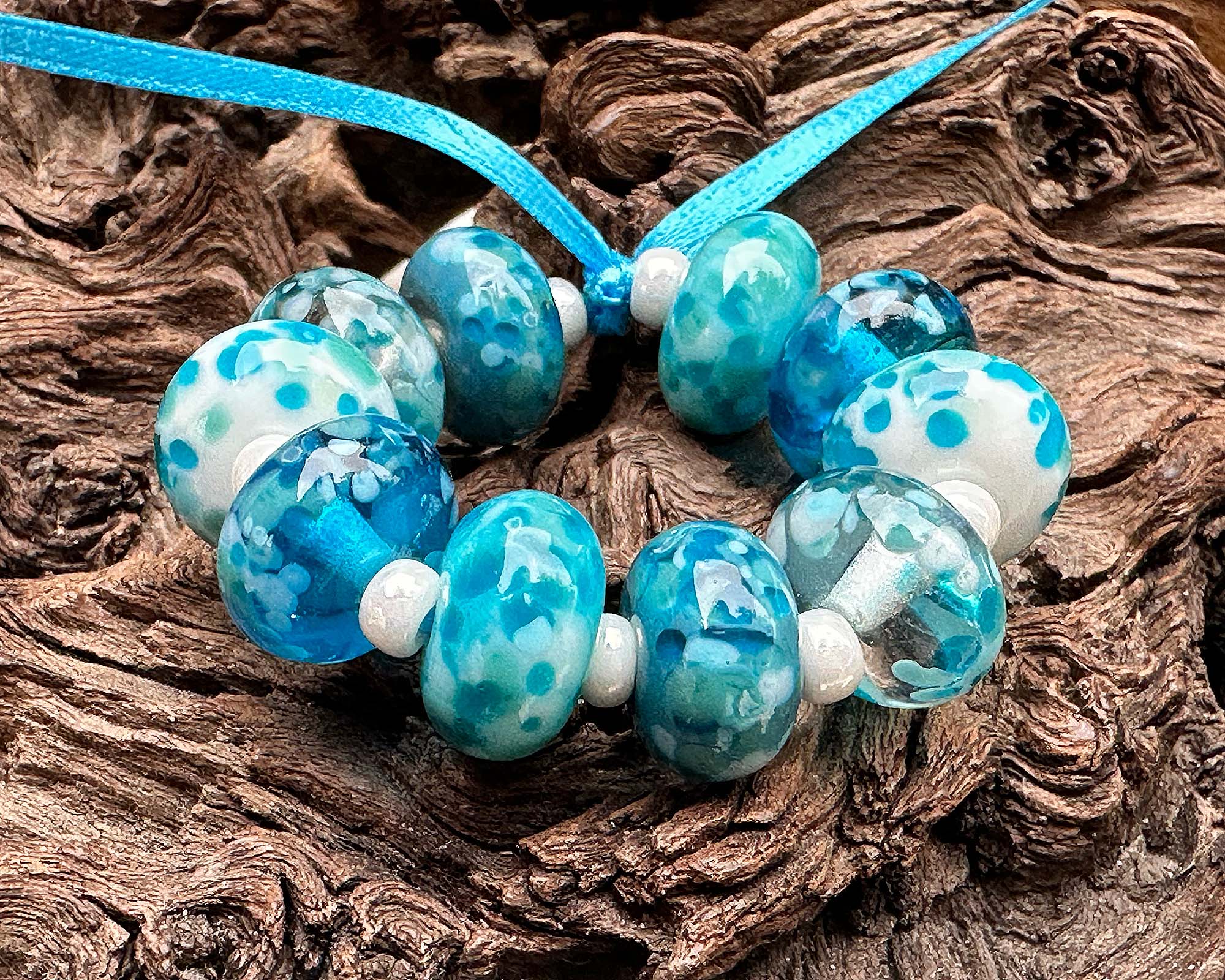 10 Ocean Blue Mosaic Lampwork Beads Set SRA