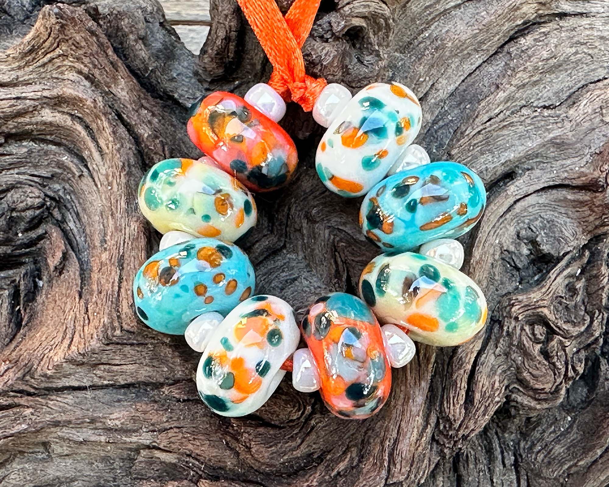 Get ready to spark some serious creativity with this vibrant set of 8 handcrafted Ophelia Mosaic lampwork beads! Each bead is a tiny work of art, bursting with personality through its mix of warm oranges, cool teals, creamy accents, and rich jewel tones. Made from premium soft glass and kiln-annealed for lasting durability, these beauties are perfect for crafting show-stopping earrings, statement necklaces, or one-of-a-kind bracelets that'll turn heads. Since they come in matching pairs, you've got endless possibilities, go bold or go subtle, the choice is yours!