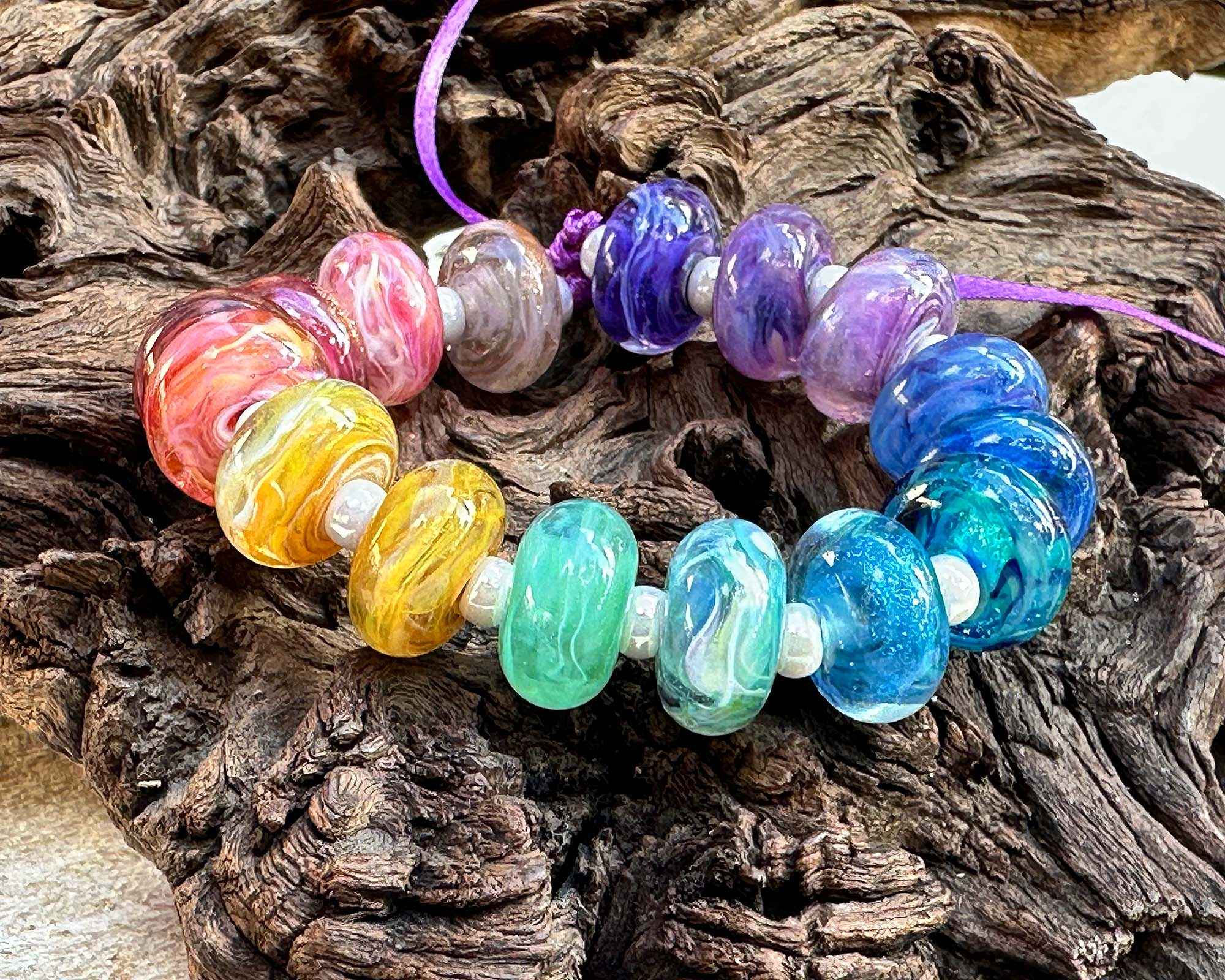 16 Pastel Rainbow Lampwork Beads Set SRA