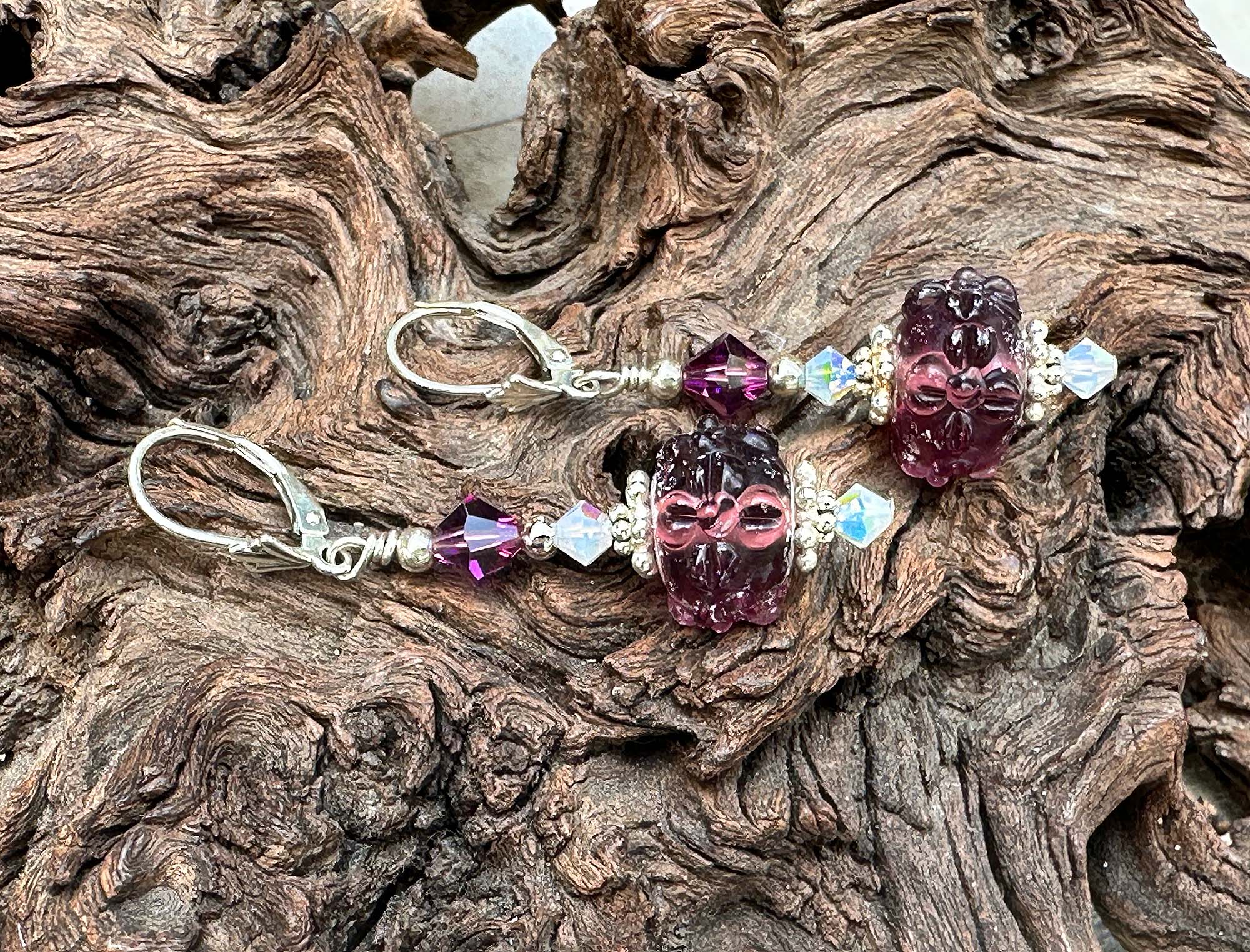 Amethyst Opal Floral Lampwork Crystal Earrings